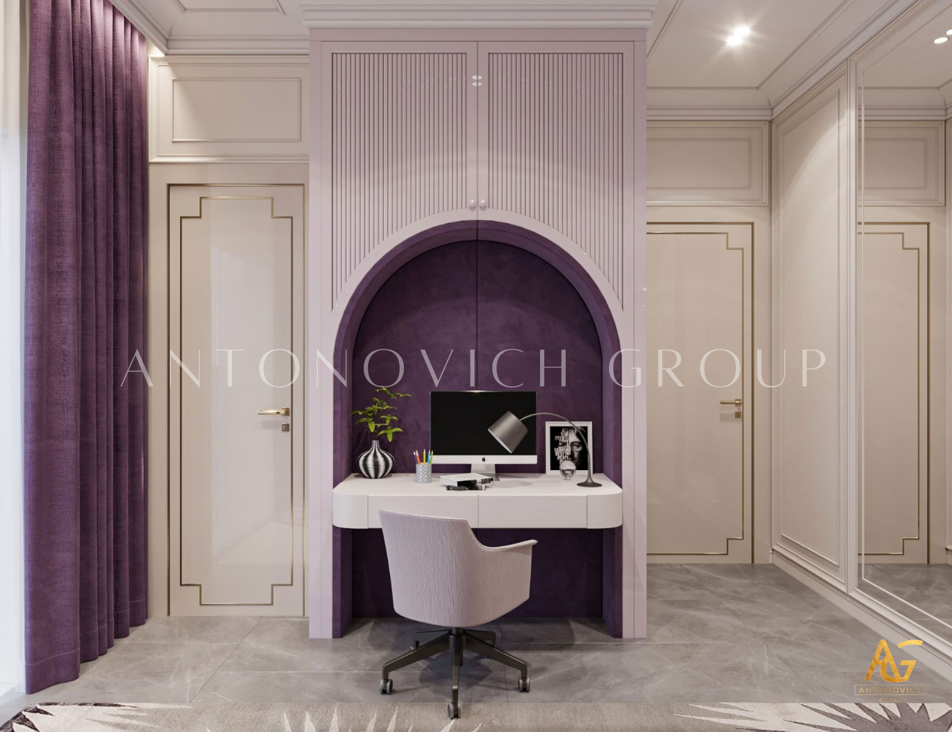 أثاث لا يصدق في دبي بتصميم منزل جميل. اعتنى به أنتونوفيتش ديزاين الفاخر. يجمع التصميم الداخلي الفاخر لغرفة النوم بين الطبيعة والأناقة. الجو الحميم يساعد على الاسترخاء. سترغب في قضاء المزيد من الوقت في هذه المنطقة الجميلة إذا كان لها نمط أرجواني مثل هذا. تم ذلك من خلال مزج الأشكال الرائعة الفاخرة التي تكمل بعضها البعض. تكمل الديكورات الجدارية البسيطة التصميم الداخلي الجذاب لغرفة النوم الفاخرة. تم بناء الغرفة الفاخرة باستخدام أثاث جميل من دبي. يبدو اللون الأرجواني والأبيض رائعين معًا ويخلقان مزاجًا مريحًا في غرفة النوم. الجدران بسيطة وجميلة ، مما يسمح للأثاث المصمم في دبي بالتألق. تم تصميم التصميم الواسع لمنحك مساحة كافية لخلق بيئة ممتعة. كل شيء في التصميم نظيف للغاية ، مع مراعاة احتياجات وديكورات الغرفة. طريقة أخرى فعالة لمنح مساحة غرفة نوم فاخرة التصميم الداخلي هي الإضاءة. المكان الرائع والهادئ لغرفة النوم المتواضعة حلو وأنيق للغاية. تهدف اللمسات الأرجواني والإضاءة الجميلة إلى إضفاء إحساس بالرقي على منزلك. يتأثر هذا التصميم الداخلي الفاخر باتجاهات الموضة الحالية التي يمكن العثور عليها في المجلات الراقية. اللون مريح والقوام رائع. الأضواء الجانبية تكمل ديكور المنزل الجميل للغرفة.