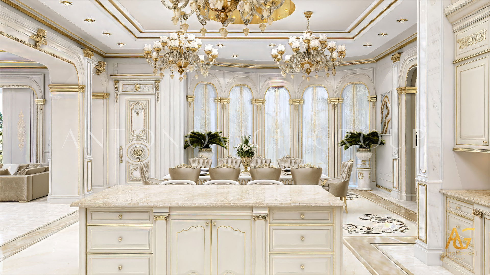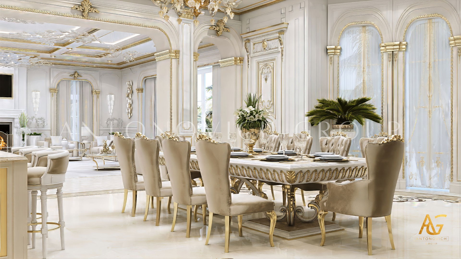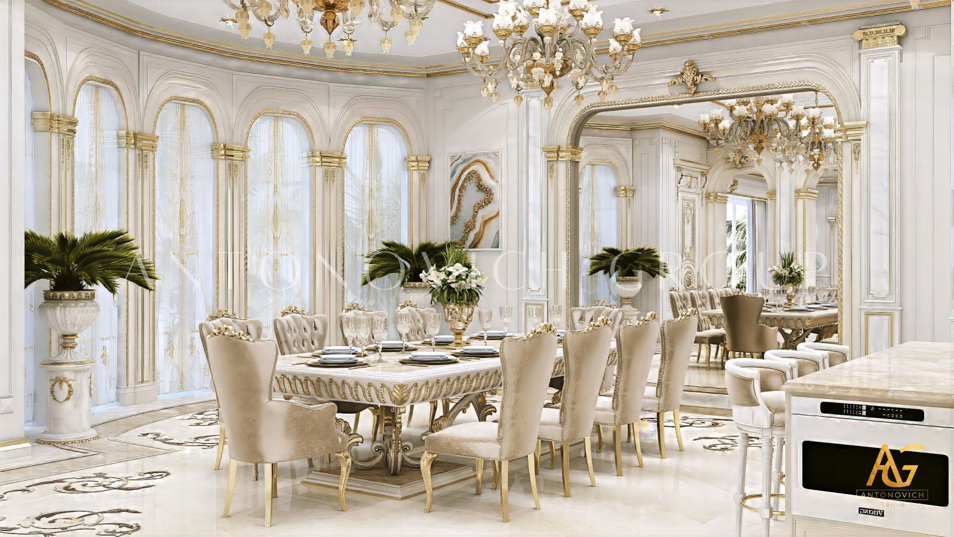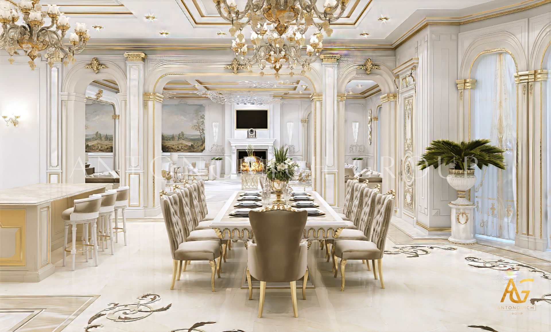 عند اختيار النمط الكلاسيكي الحديث والتقليدي ، كان من المهم لشركة لاكشري أنتونوفيتش ديزاين استخدام أحدث تقنيات التصميم وتخفيف التصميم الداخلي بعناصر من الأساليب الأخرى لملء الغرفة بالراحة والدفء. في تصميم غرفة الطعام الحديثة هذه في لندن ، استخدم فريق المصممين لدينا مزيجًا من المواد الطبيعية (الخشب والرخام والمنسوجات الطبيعية) مع بعض الزجاج والسيراميك ، لإدخال العنصر البيئي في التصميم الداخلي للمنزل الحديث.