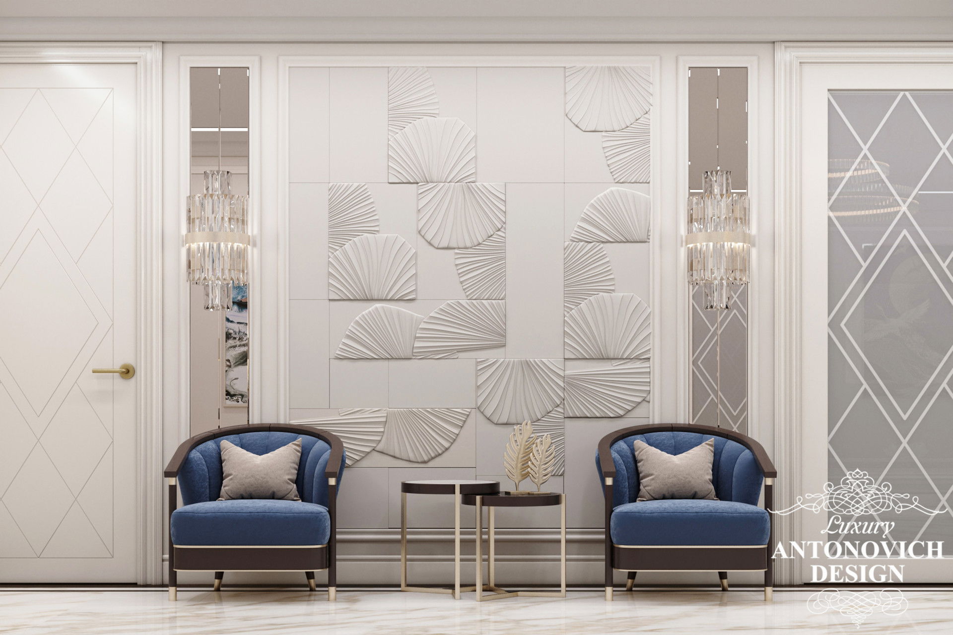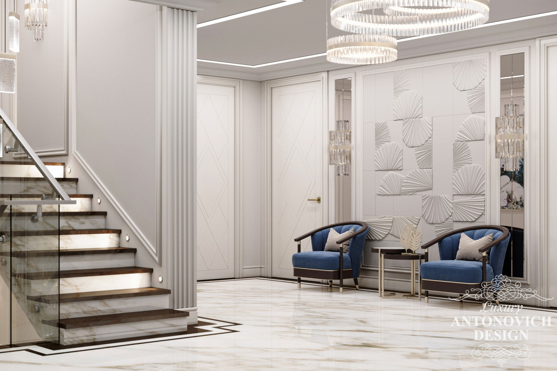 جدران جميلة ، نظام ألوان جميل ، وتصميم رائع. هذا التصميم العصري للشقة هو بلا شك شقة أحلامك. فيمكنك رؤية تفاصيلها الداخلية الفاخرة الرائعة المصنوعة من الرخام والخشب في السلم - ليصبح ذا تباين داخلي جميل. اما لضيوفك ، توجد كراسي ترحيب زرقاء رائعة على جانبها. الوان الحائط الجميلة لا يمكن إنكارها أيضًا. حيث تم تنفيذ الأنماط بشكل رائع ، مما ينضح بشعور من الفخامة. و تلعب الأضواء أيضًا دورًا مهمًا في إنشاء تصميم شقة عصري جميل. ليصبح التصميم أنيق ومتطور.