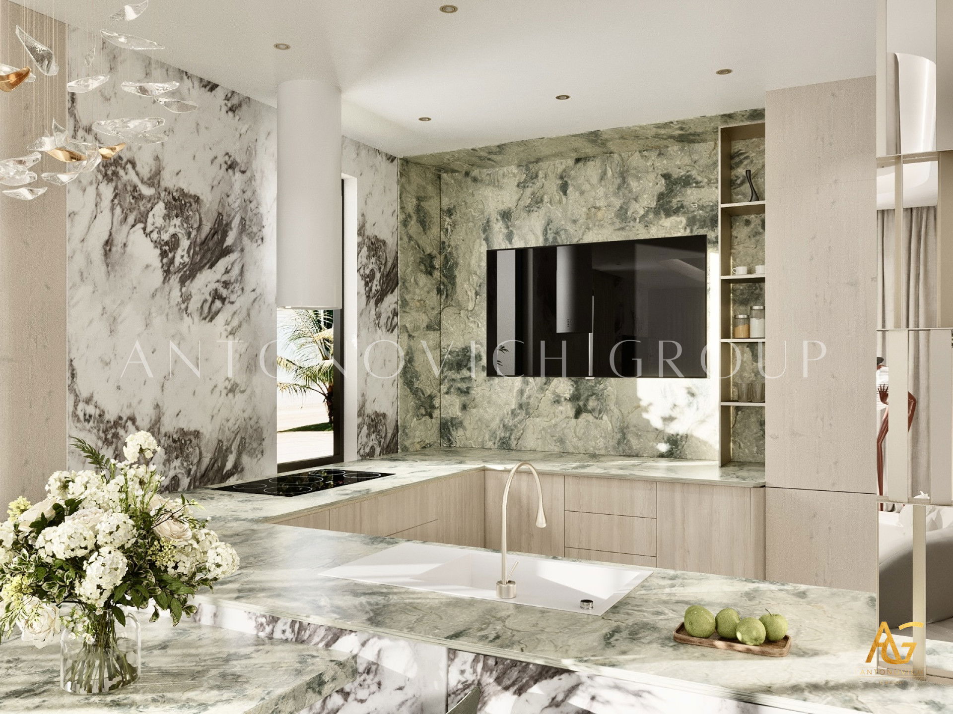 تتميز مناطق المعيشة بتخطيطات واسعة تبرز الانفتاح والضوء الطبيعي، معززة بأثاث مصمم حسب الطلب، وأقمشة فاخرة، وتركيبات إضاءة مخصصة. تم تصميم غرف النوم كملاذات هادئة، مع دمج خزائن مصممة خصيصًا، ولوحات ناعمة، وتفاصيل فنية لخلق شعور بالهدوء والرقي. في حين تجمع مناطق الطعام والمطبخ بين الأناقة والعملية، مما يوفر مساحات مناسبة للحظات عائلية حميمة والترفيه الرسمي.
