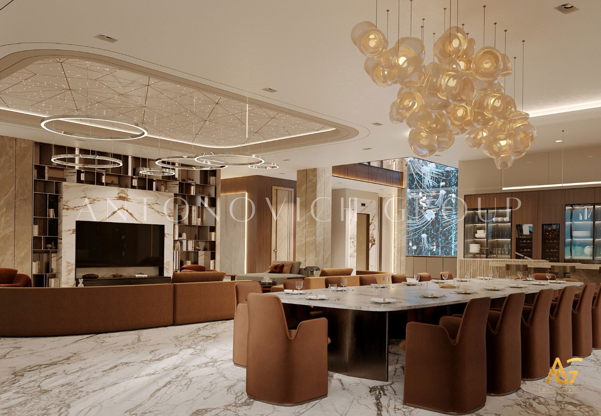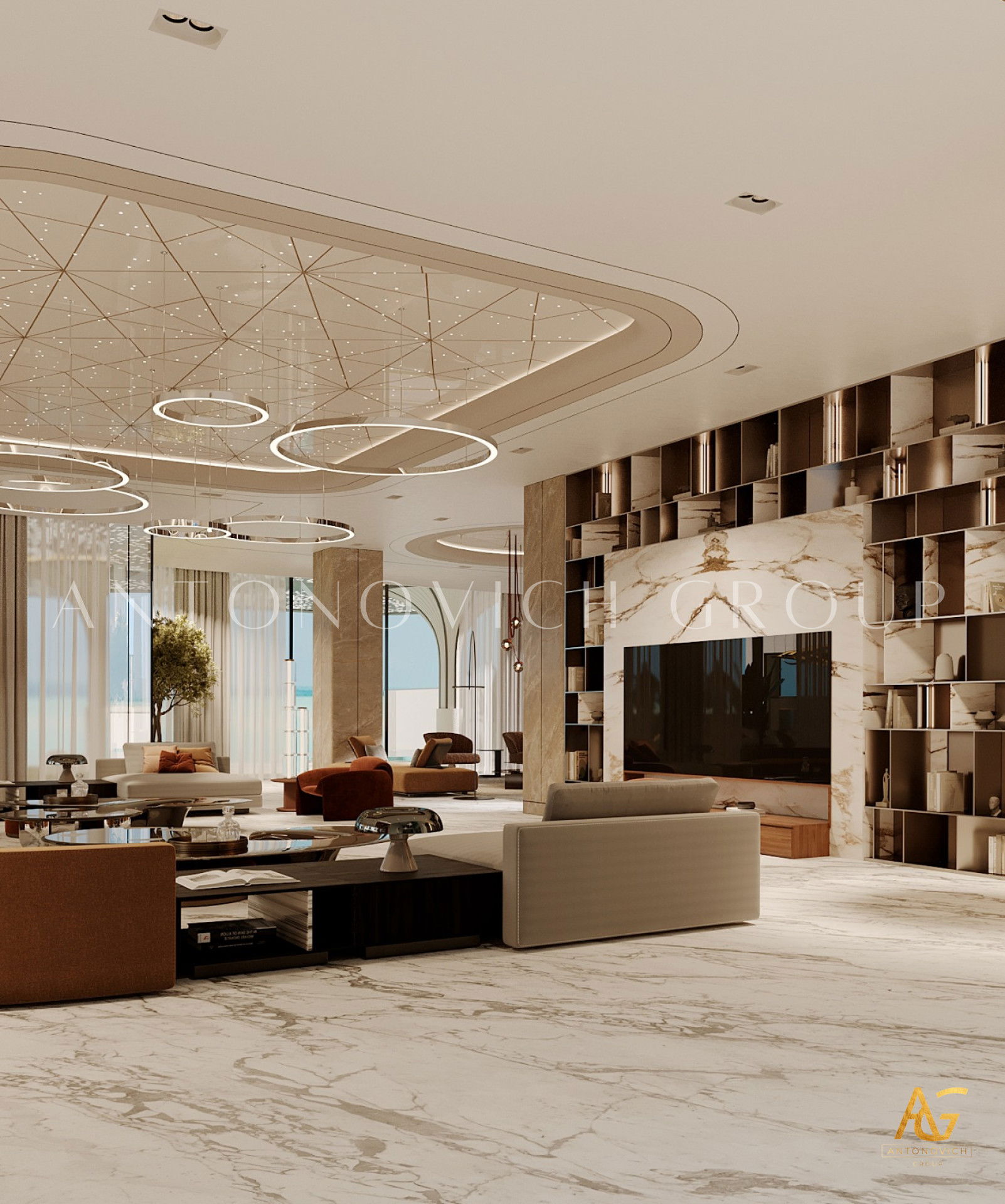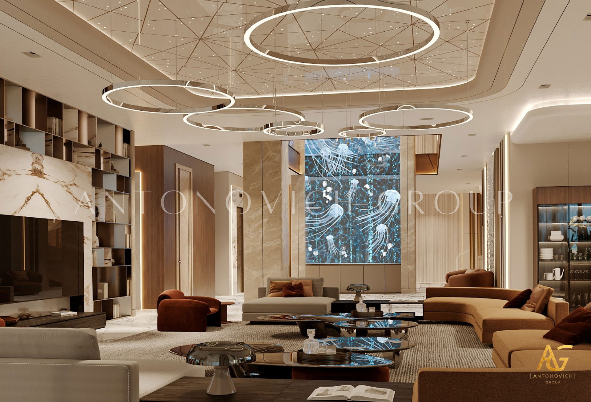 تشتهر مجموعة أنتونوفيتش بخبرتها في صياغة ديكور داخلي مخصص لمنازل التصميم الفاخر. يجلب فريق المصممين والمهندسين الموسمين ثروة من الخبرة لكل مشروع، مما يضمن أن تكون كل غرفة معيشة عملاً فنيًا من الرفاهية الحديثة.