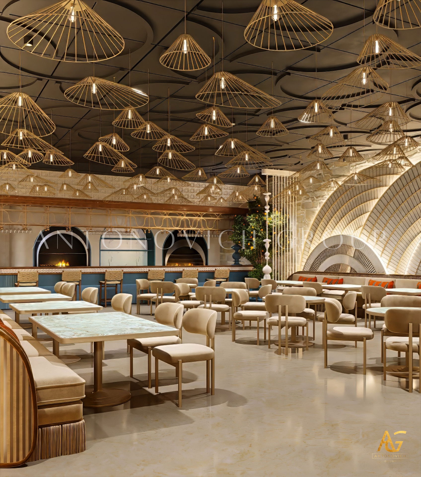 Antonovich Group also incorporates smart architectural design solutions, such as acoustic optimization, advanced kitchen ventilation systems, and ergonomic space planning — ensuring that every aspect of the restaurant’s architecture contributes to its functionality and success.