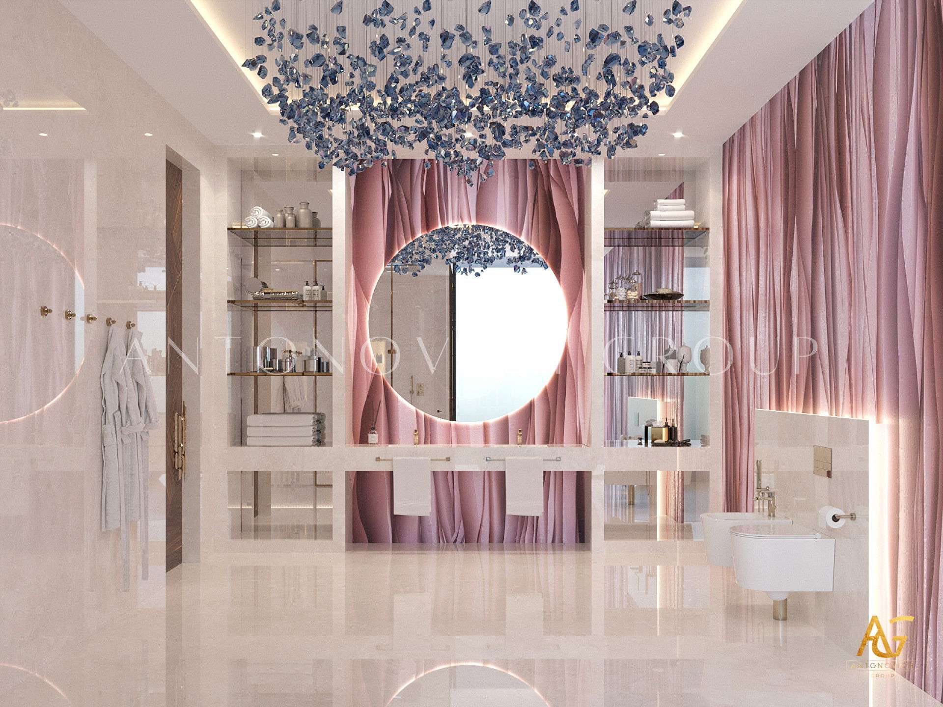 The Antonovich Group's spacious bathroom interior design and fit-out, we unveil a narrative of expansive elegance. From the radiant embrace of customized chandeliers to the canvas of sophistication presented by stylish walls, Antonovich Group redefines the concept of luxury. Welcome to a world where spaciousness meets opulence — welcome to Antonovich Group's vision of bathroom design excellence.