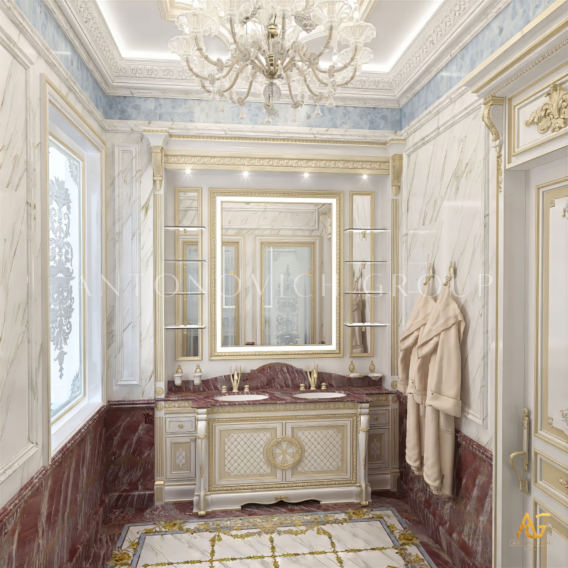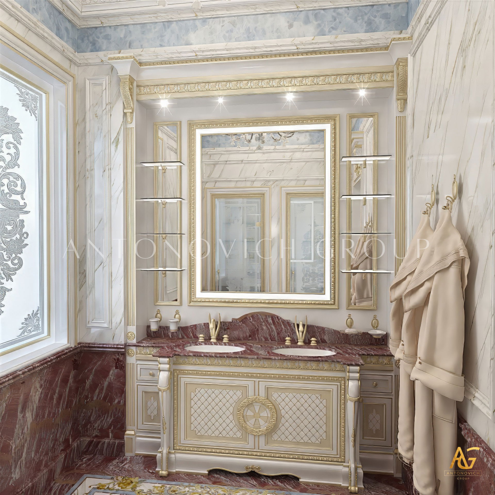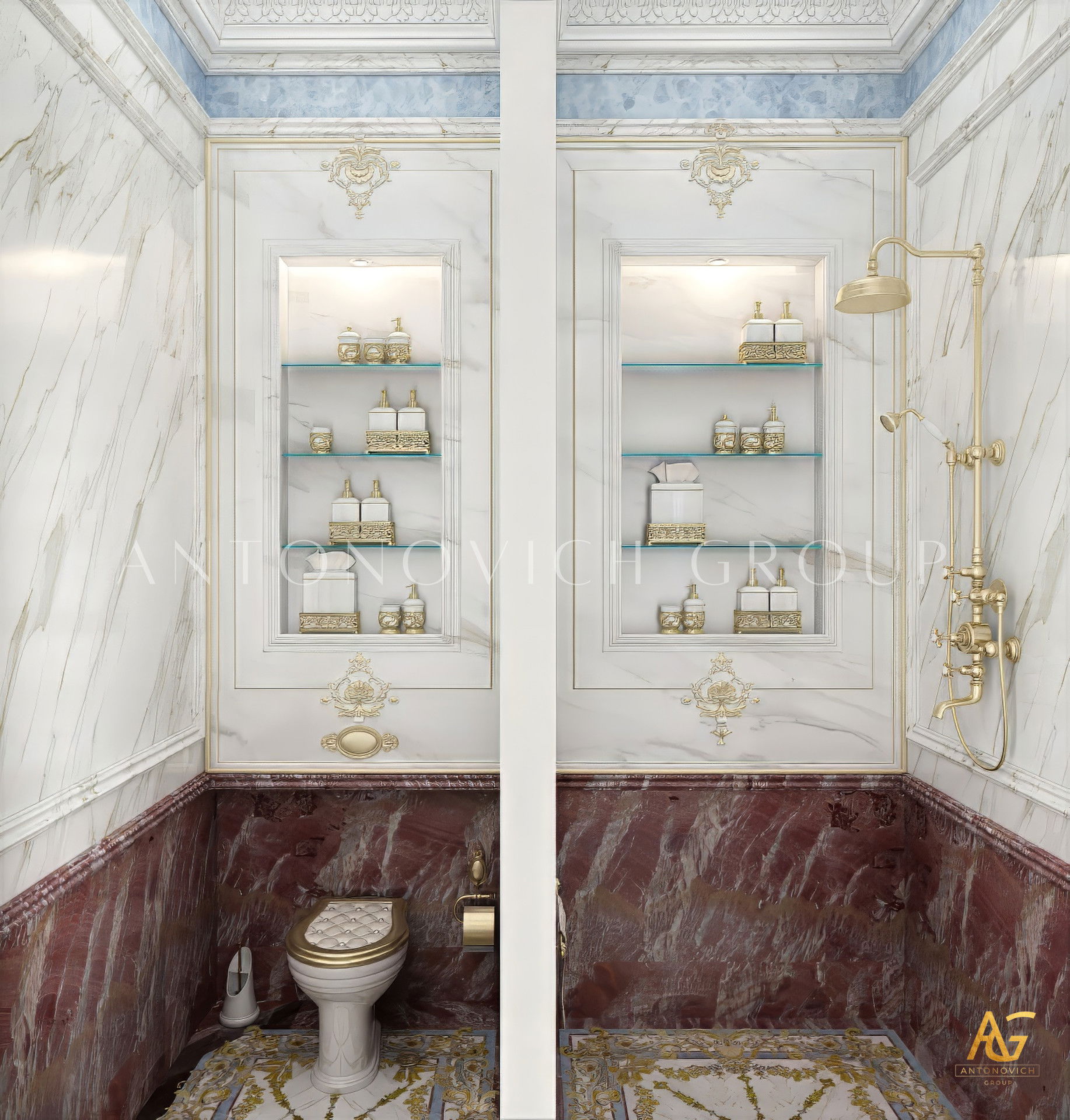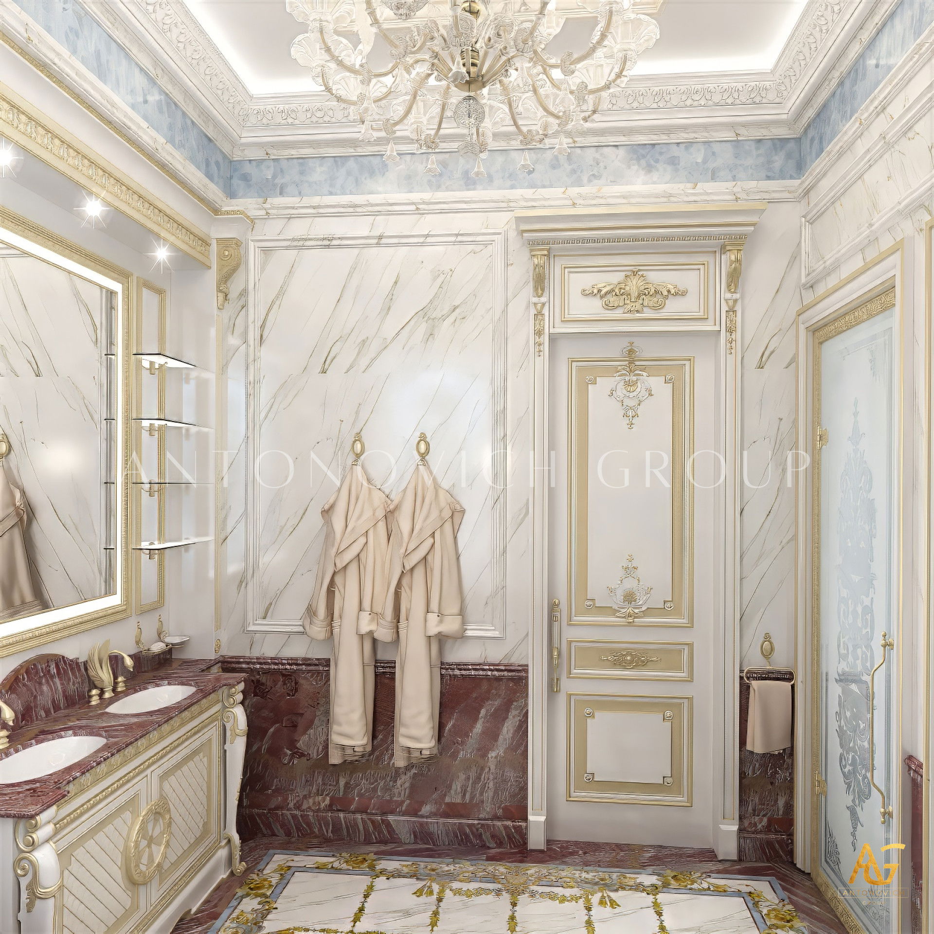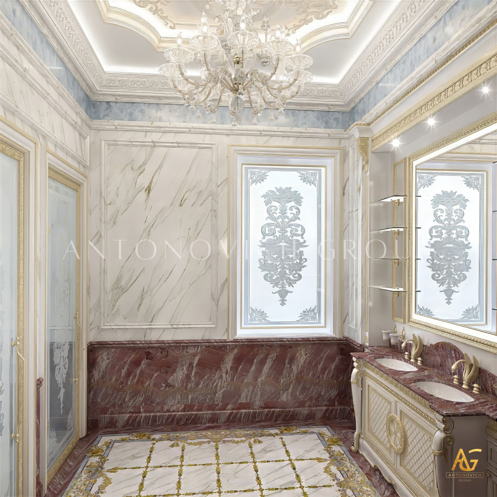 Each project begins with a bespoke design concept that reflects the client’s vision. Antonovich Group uses high-end materials such as Italian marble, onyx, and brushed gold finishes to create a lavish yet balanced atmosphere. From spacious master bathrooms to sleek apartment suites, every detail—tiles, fixtures, lighting, and accessories—is curated to achieve a sense of harmony and luxury.