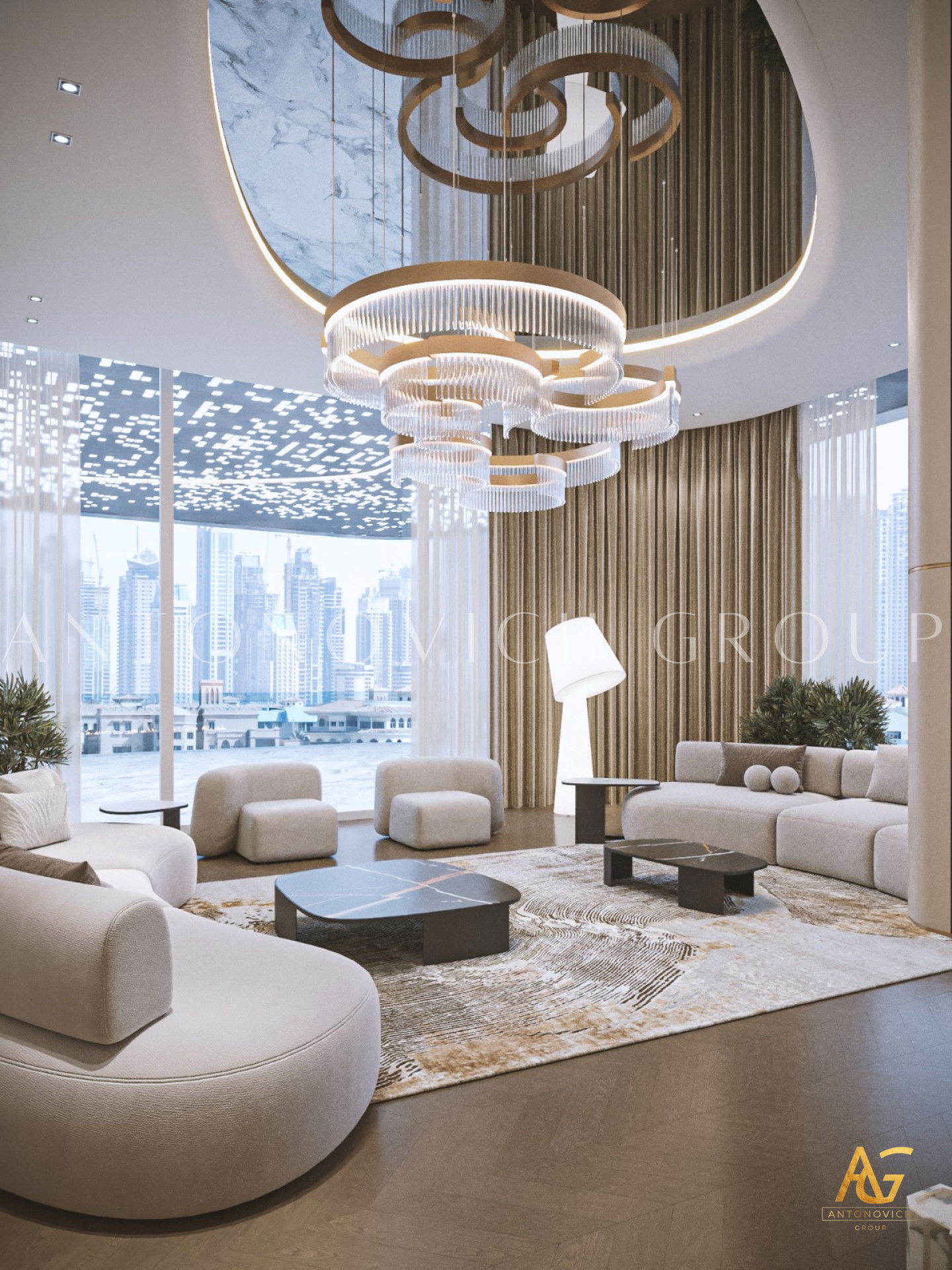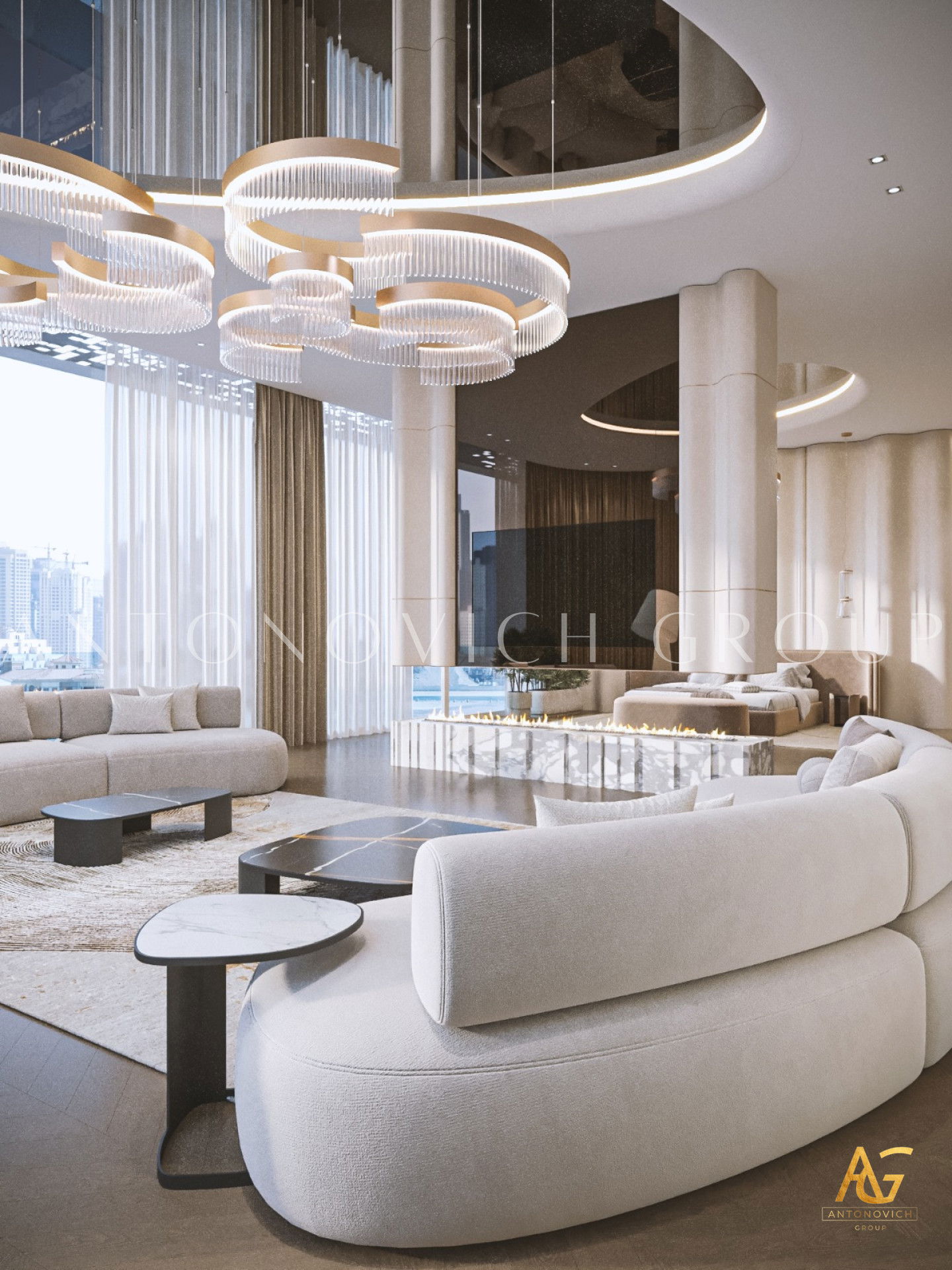 Material selection plays a pivotal role in achieving a luxury interior. Antonovich Group sources premium-quality materials, ensuring every texture and finish speaks of sophistication. Plush upholstery, rich wood veneers, marble accents, and gilded details are harmoniously combined to create a tactile and visual masterpiece.
