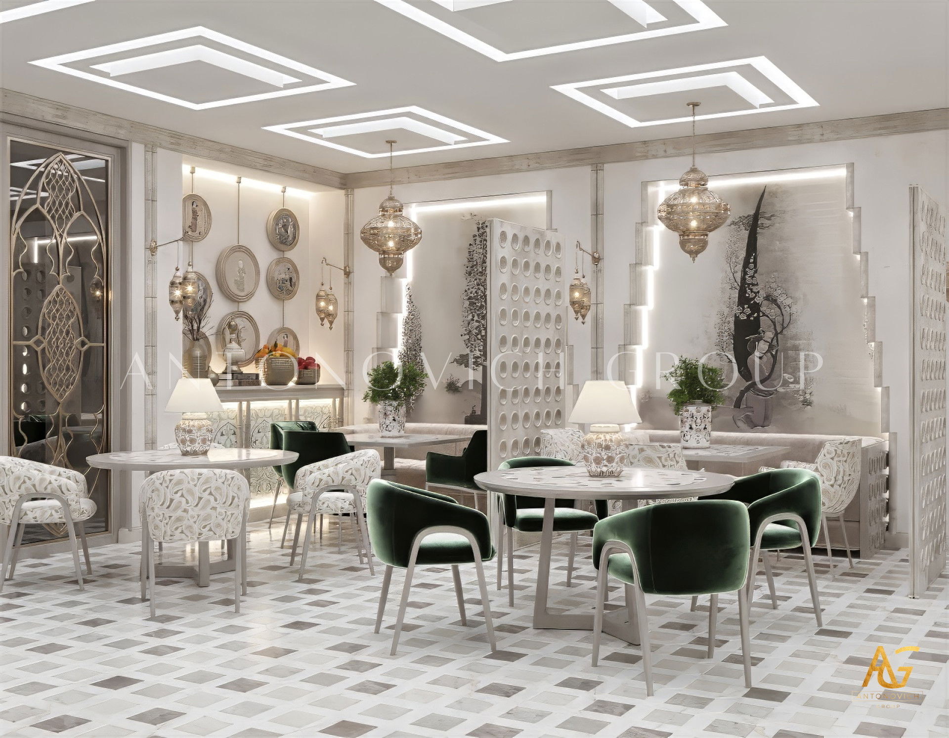 Each project begins with a detailed conceptual design that reflects the restaurant’s brand identity and target market. Whether designing a luxury fine dining venue, a chic modern café, or a resort-style beachfront restaurant, Antonovich Group customizes every project to align with the client’s goals and operational requirements.