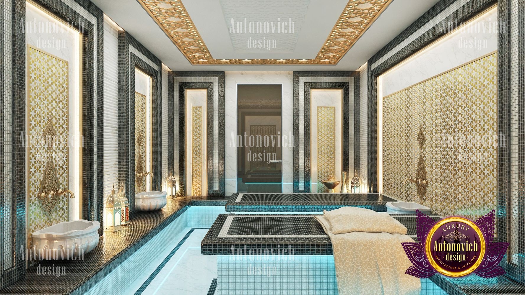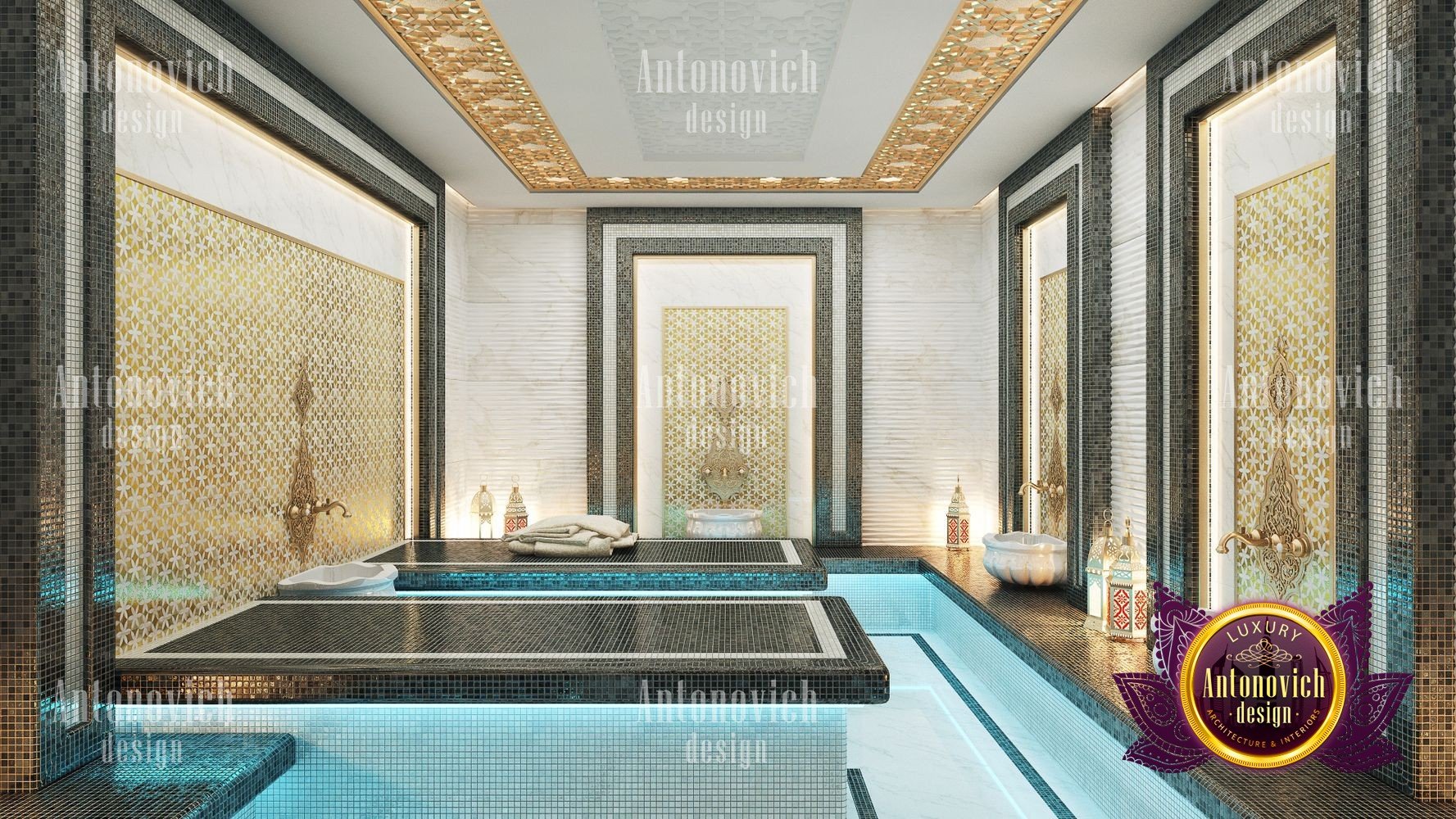 Hamam interior fit-out plays an enormous role during the construction and formation of the atmosphere of the place. Design of Turkish hamam from Luxury Antonovich Design is not only elegant, expressive and luxurious, but also consists of high-quality materials that have sustainable properties. Finishing hamam with marble and other noble material is a way to add a more presentable look to it. The reasons for this are the unique properties of natural stone.