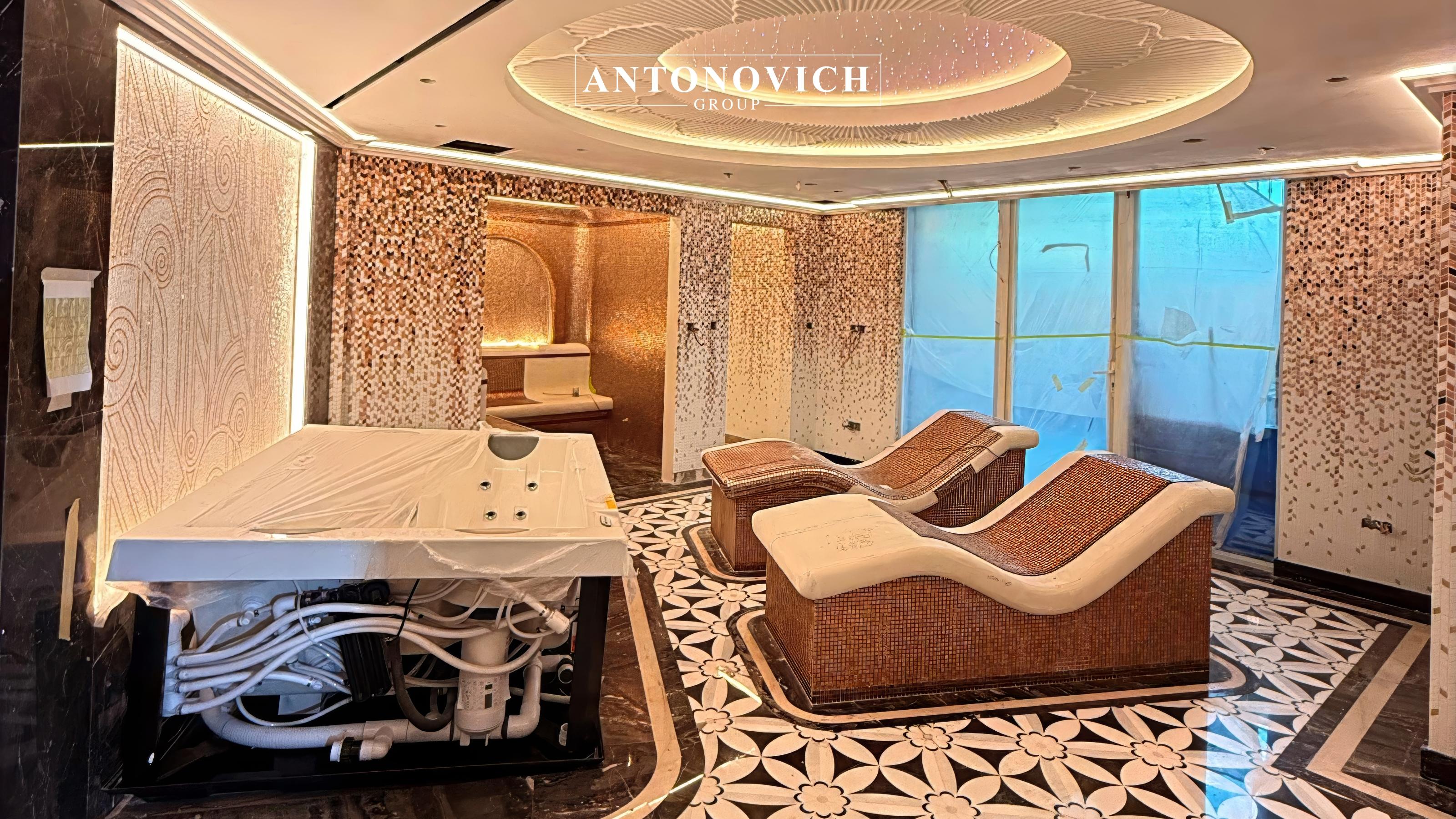 Modern luxury living places strong emphasis on wellness and relaxation. As part of their comprehensive luxury villa renovation dubai services, Antonovich Group frequently incorporates exclusive spa and jacuzzi areas into villa designs.