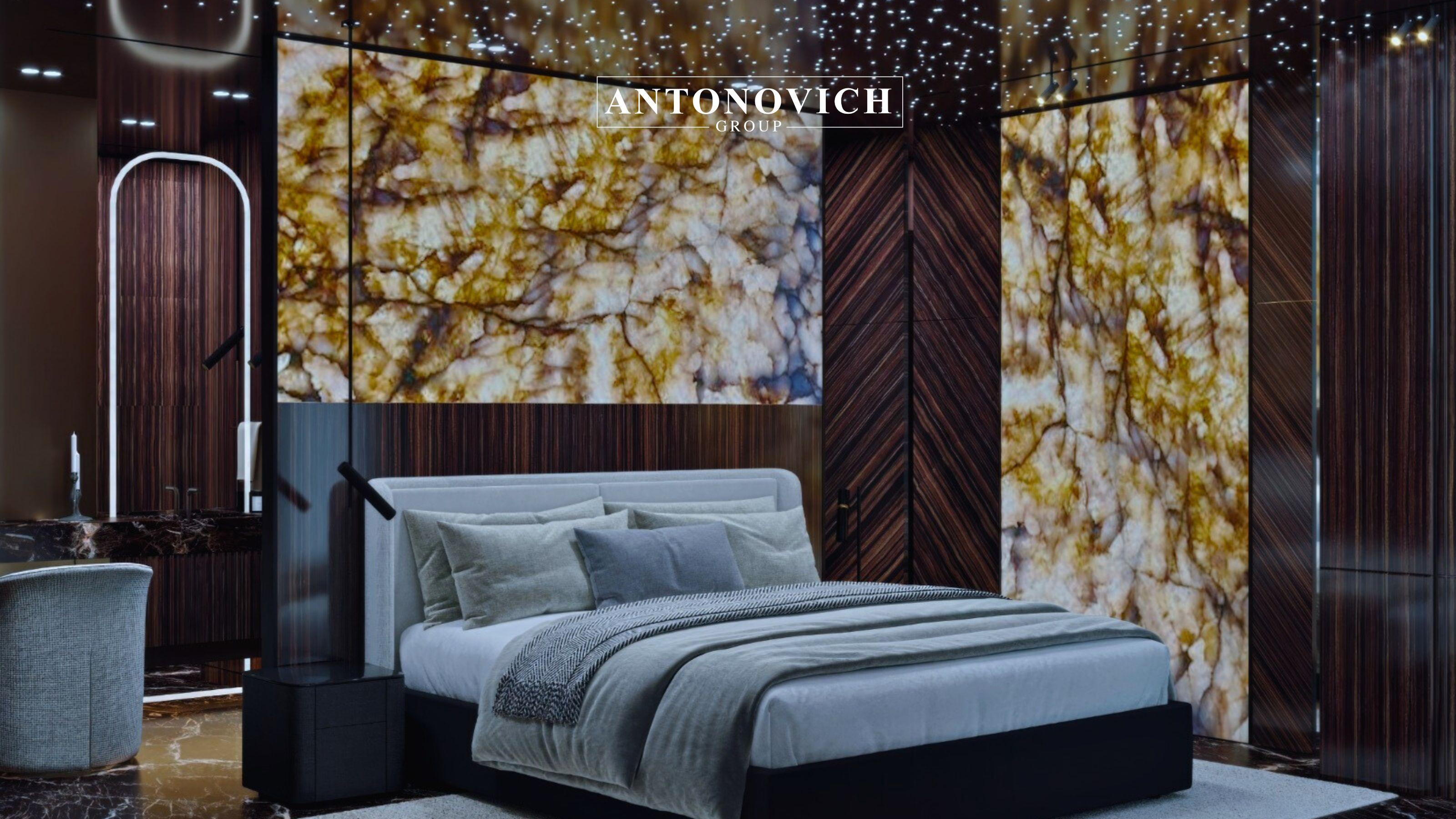 A signature strength of Antonovich Group is its bespoke furniture production. Custom-designed beds, headboards, wardrobes, and bedside units are crafted using premium materials such as fine wood veneers, leather, velvet, and metal accents. Every detail is designed to complement the overall interior concept, ensuring exclusivity and longevity.