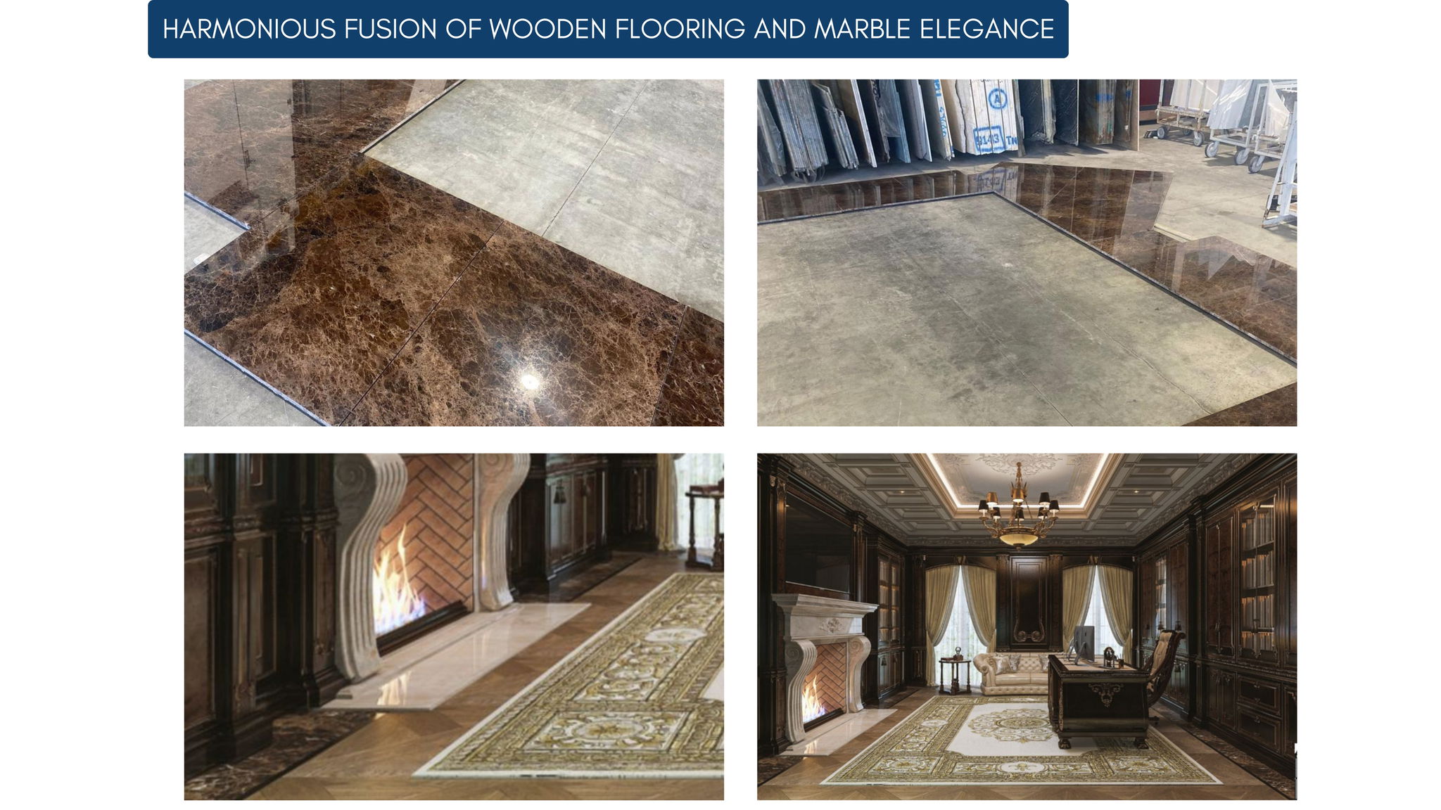 We also specialize in creating a harmonious fusion of wooden flooring and marble elegance, offering clients the best of both worlds. The natural warmth of wood paired with the sophistication of marble creates a balanced, inviting atmosphere that is both luxurious and timeless.