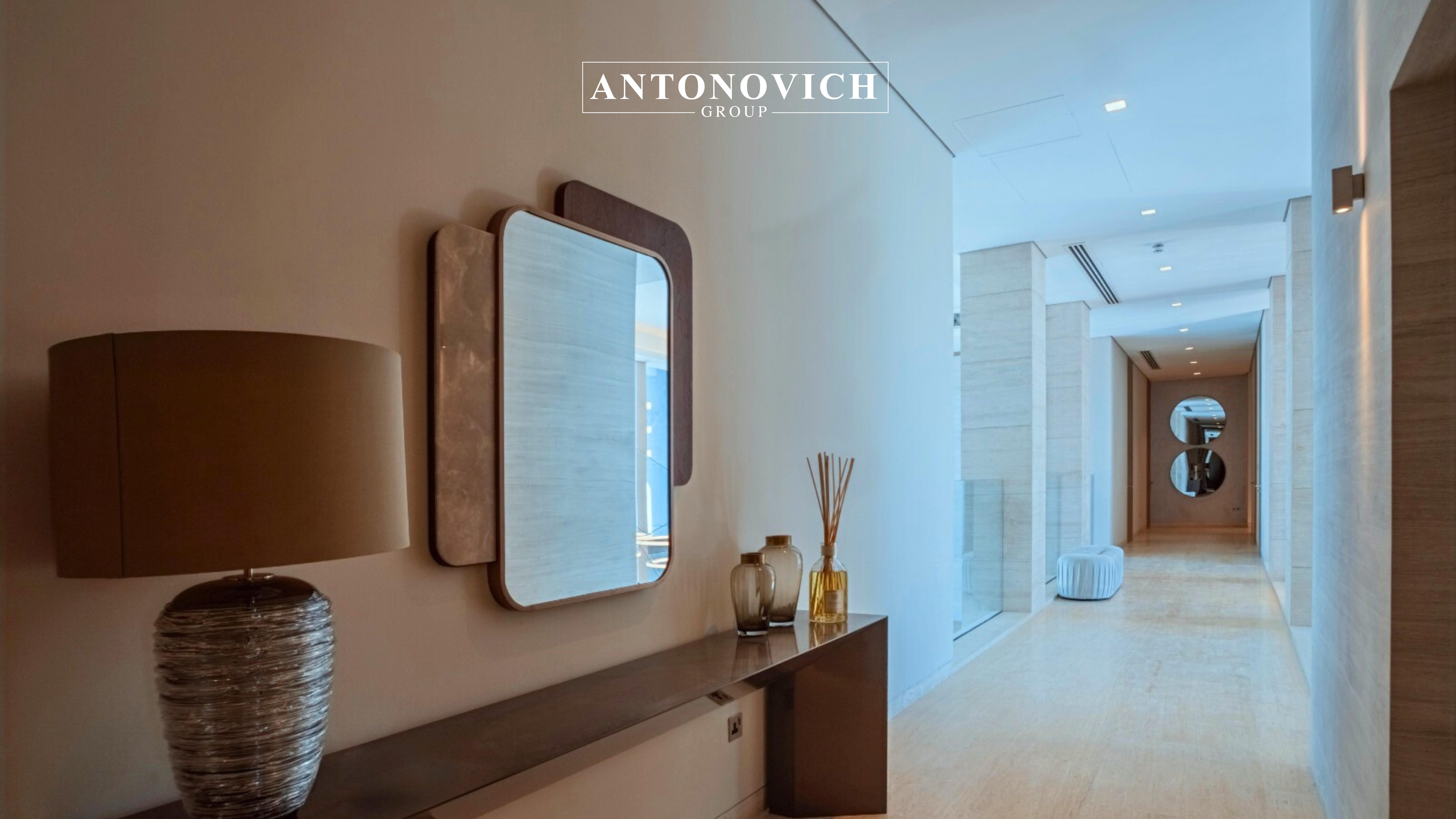 From the grand double-height living room and panoramic Palm Jumeirah views to the private beachfront access and custom-crafted interiors, this villa is a true reflection of Antonovich Group’s vision of luxury living at its finest.