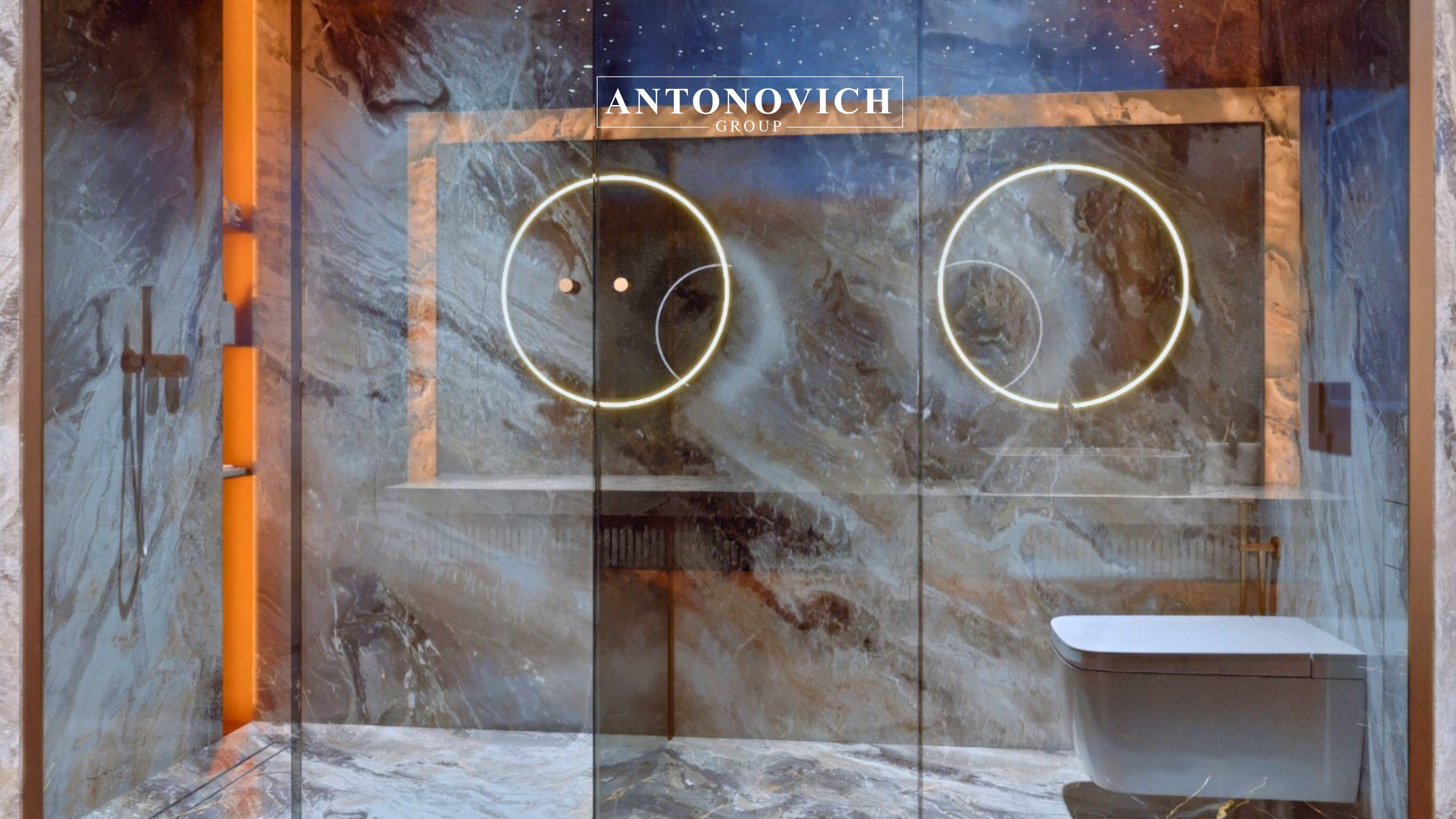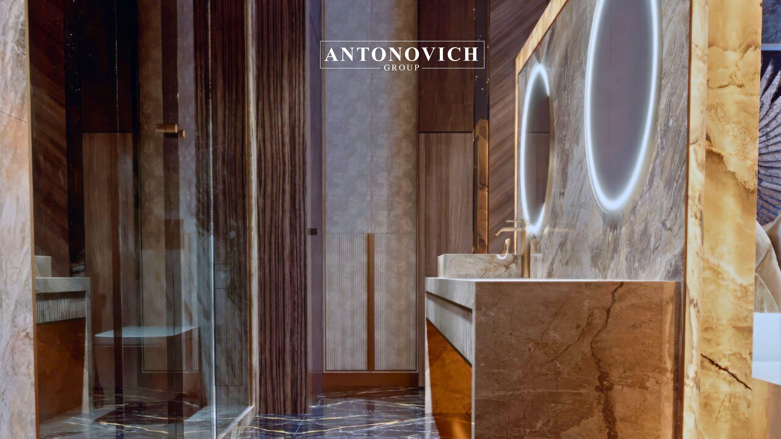 Material quality defines luxury bathrooms. Antonovich Group uses high-end marble, natural stone, porcelain slabs, and bespoke finishes to achieve a timeless aesthetic. Custom vanity units, stone countertops, and refined metallic accents add layers of elegance.