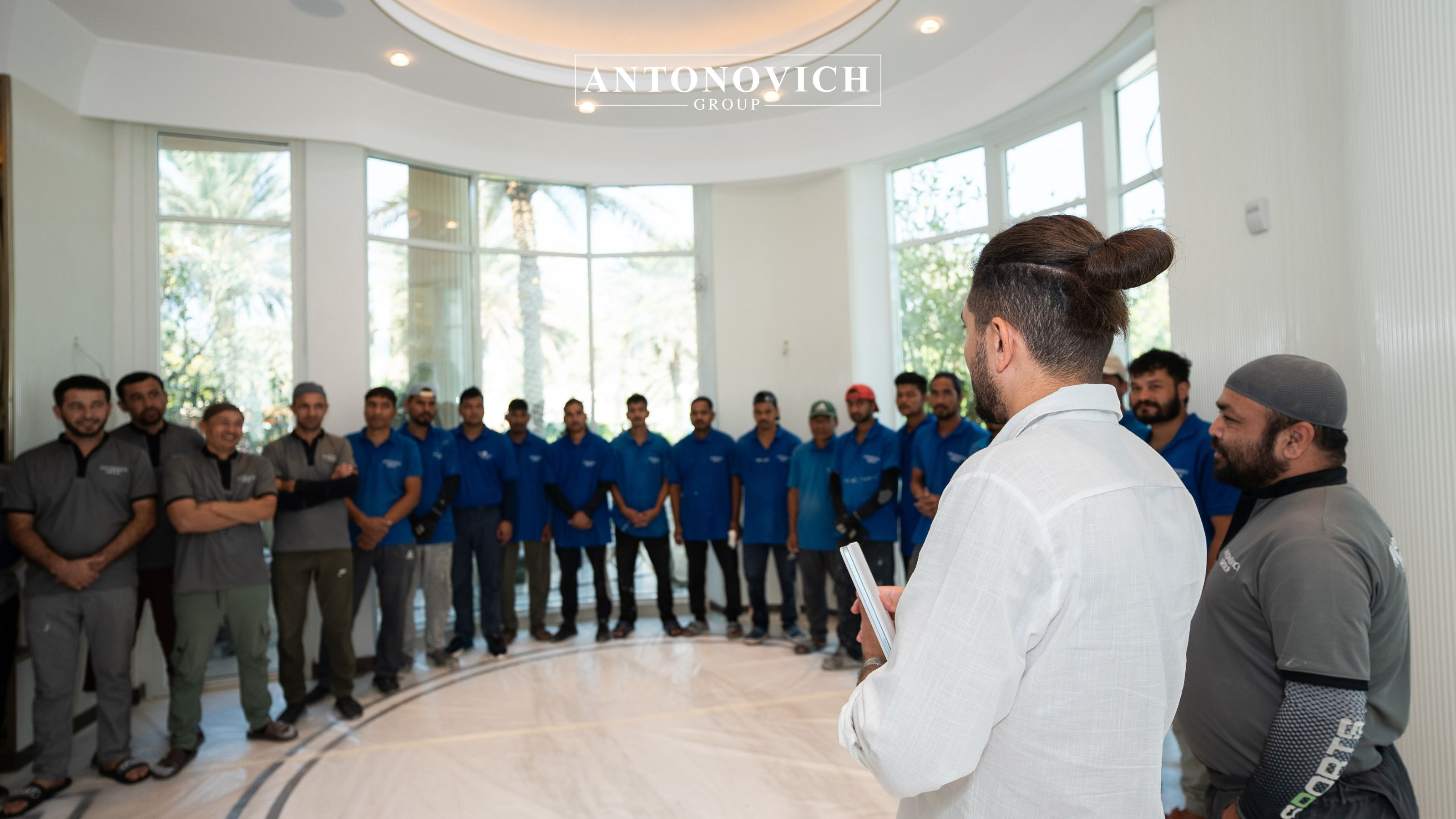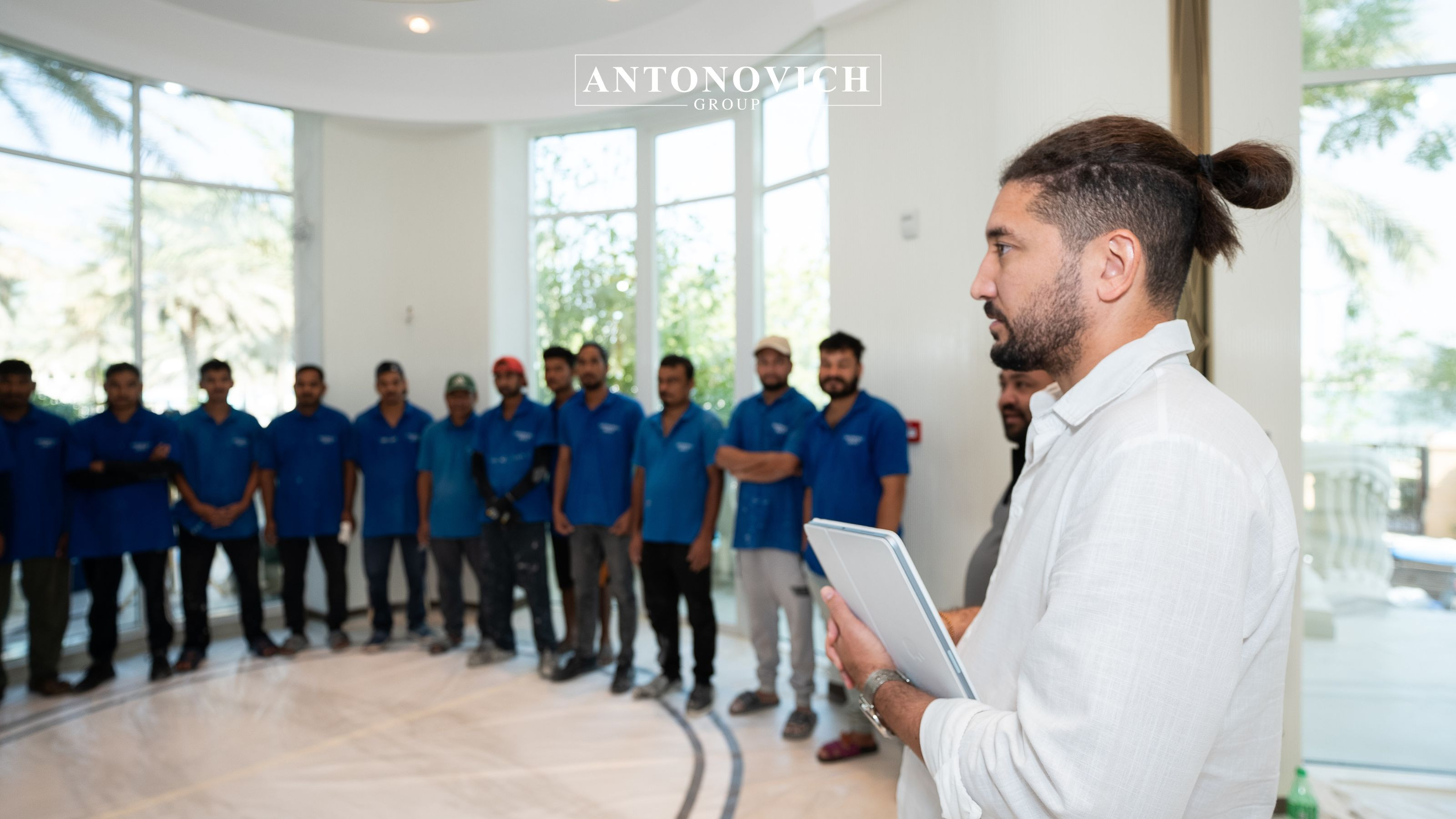At the heart of Antonovich Group’s success lies the perfect synergy between its expert in-house teams—architects, interior designers, engineers, craftsmen, artisans, and its highly skilled project management department. Together, they ensure that every luxury villa interior design and fit-out execution is delivered with accuracy, efficiency, and exceptional attention to detail. This is especially evident in one of the company’s recent prestigious villa projects, where the project manager played a crucial role in orchestrating daily site visits, issuing meticulous instructions, overseeing technical coordination, and leading the design implementation to perfection.