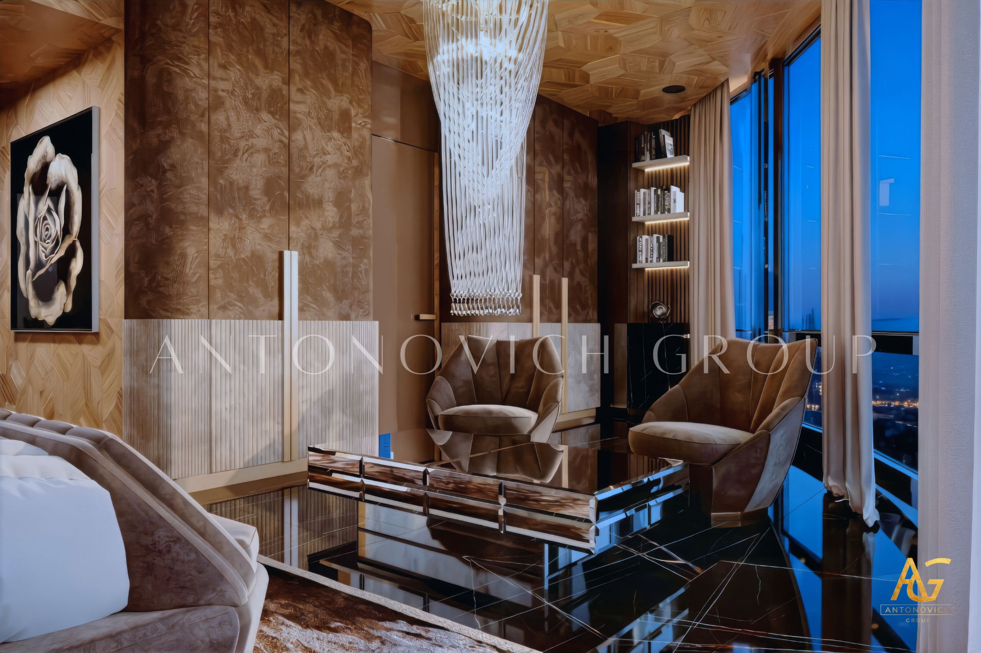 Antonovich Group provides complete turnkey bedroom fit-out services, managing the entire process from design to execution. Custom furniture and bespoke joinery solutions are tailored to maximize space, improve organization, and maintain a clean, uncluttered look.