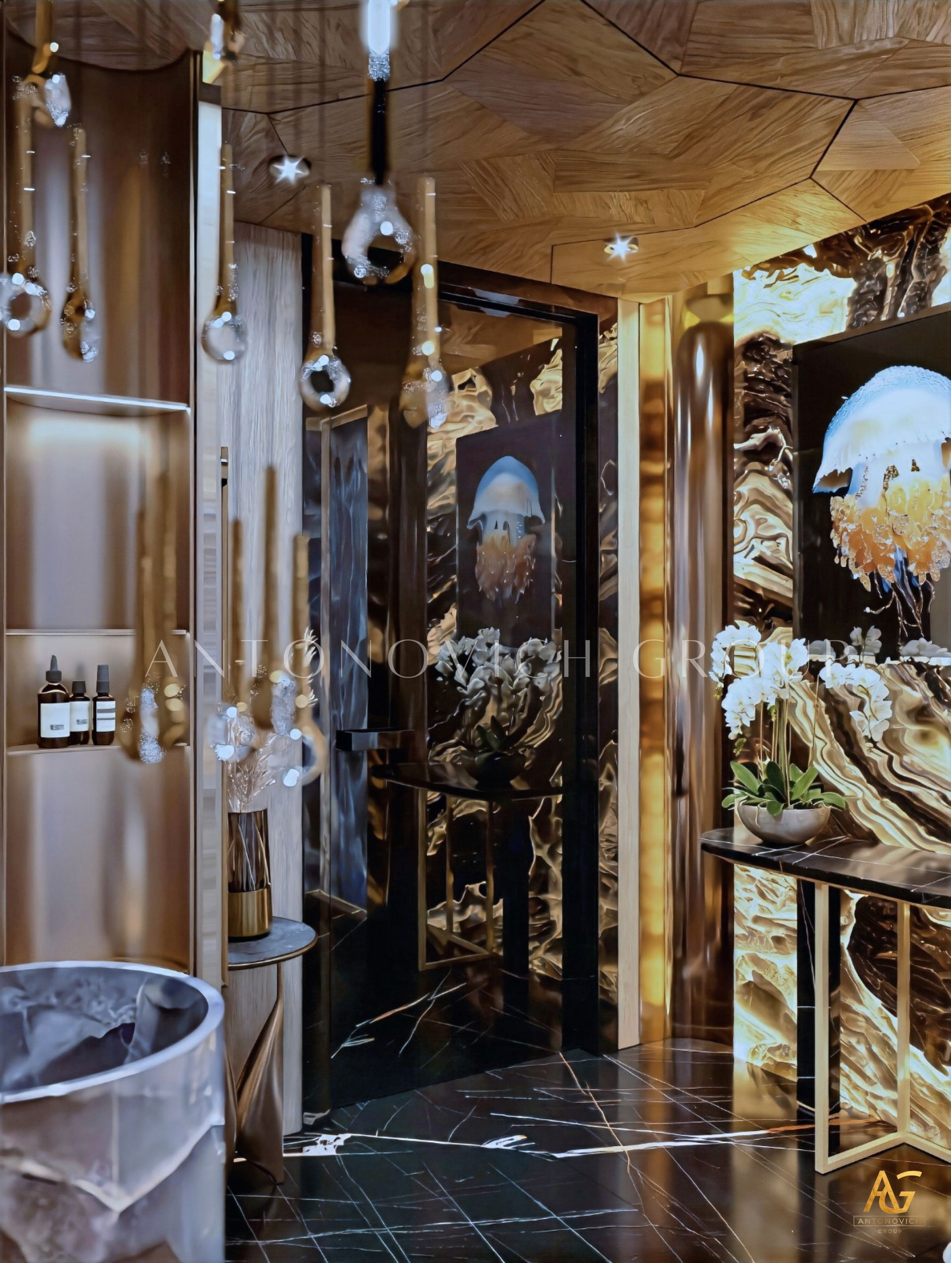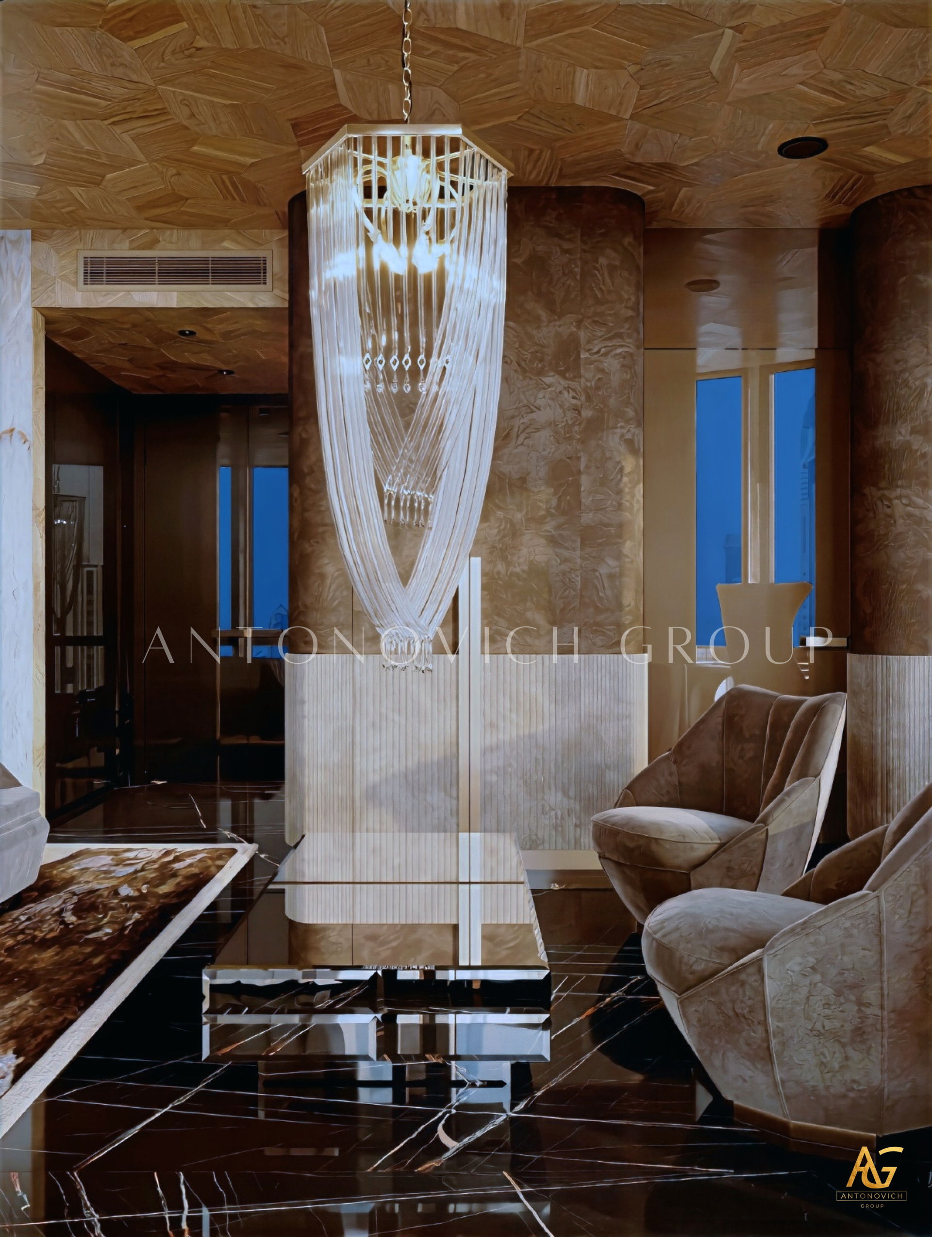 Every detail—from custom headboards to ceiling designs and lighting fixtures—is executed with precision, reflecting Antonovich Group’s commitment to excellence in luxury bedroom interior fit-out.