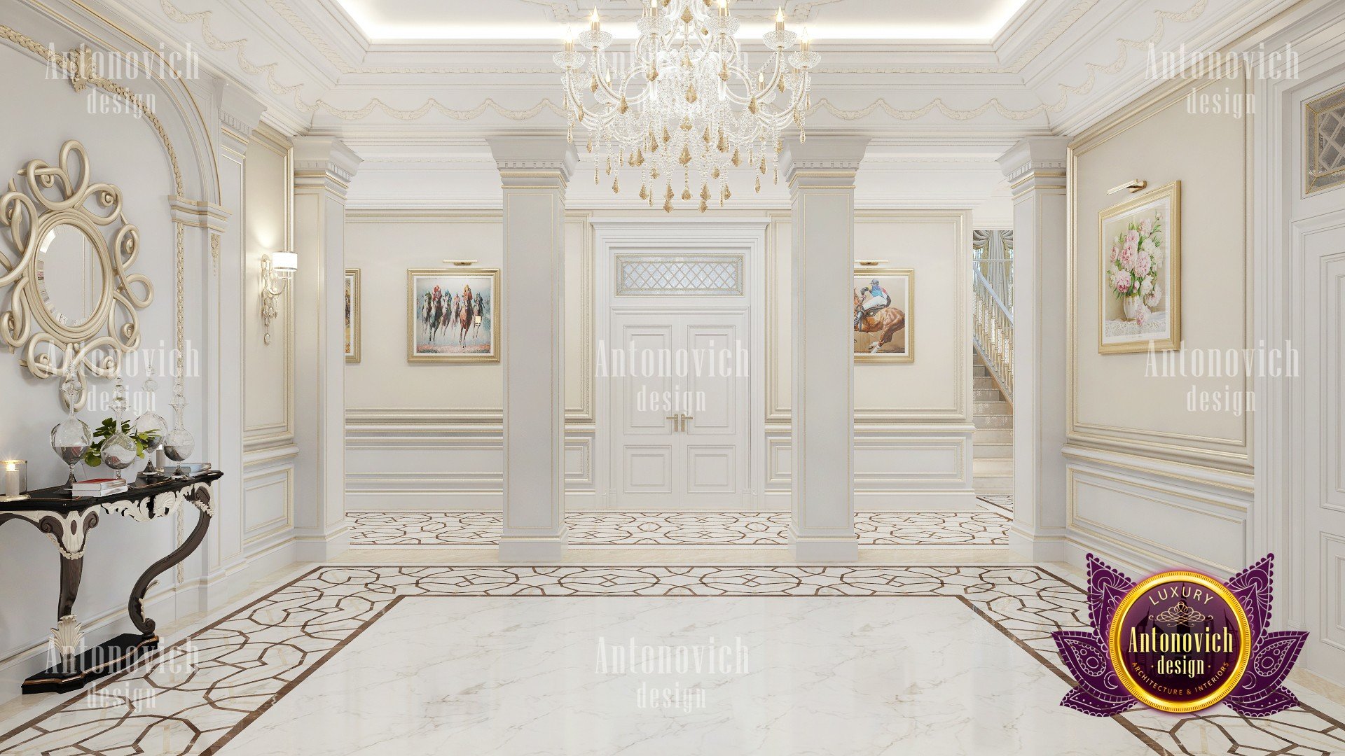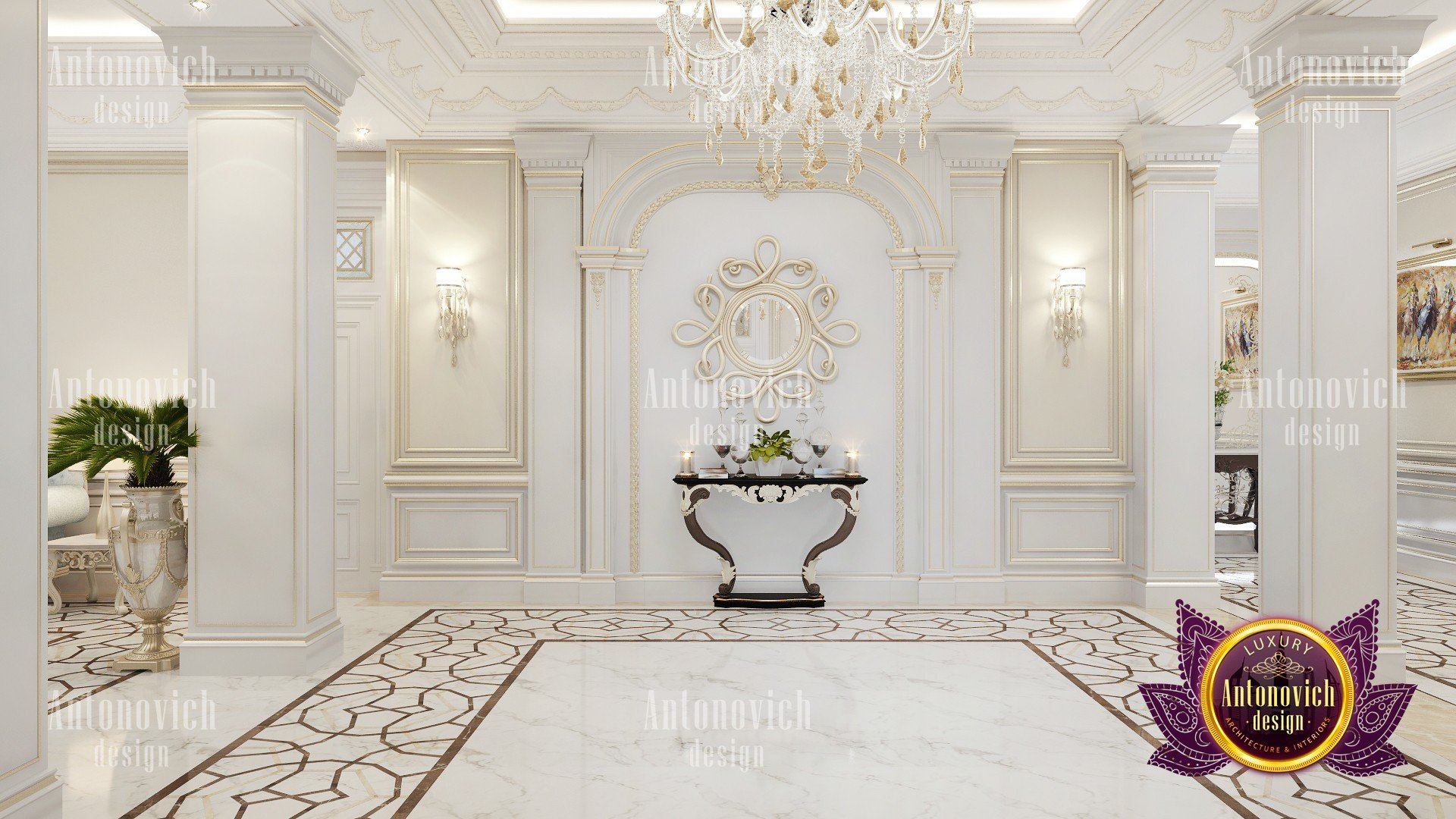 One of the best interior designers, Katrina Antonovich, who has been designing luxurious interiors for more than 10 years, and her professional team specializes in the production and installation of turn-key marble floors, art panels, and details of exclusive interiors made of natural stone (marble, granite, onyx), providing services of natural stone cladding of various elements of home and office interiors: fireplaces, stairs, facades, floors, walls and windows. We perform the laying, grinding, polishing and crystallization of marble floors, walls and columns.