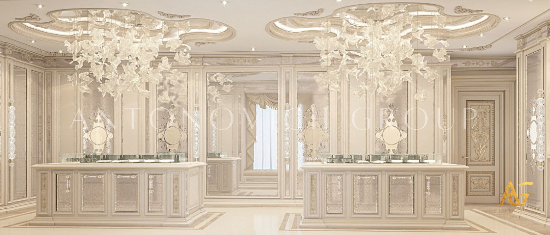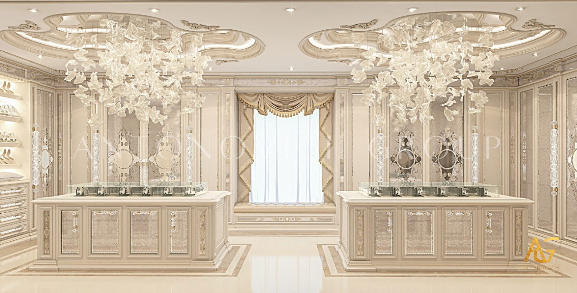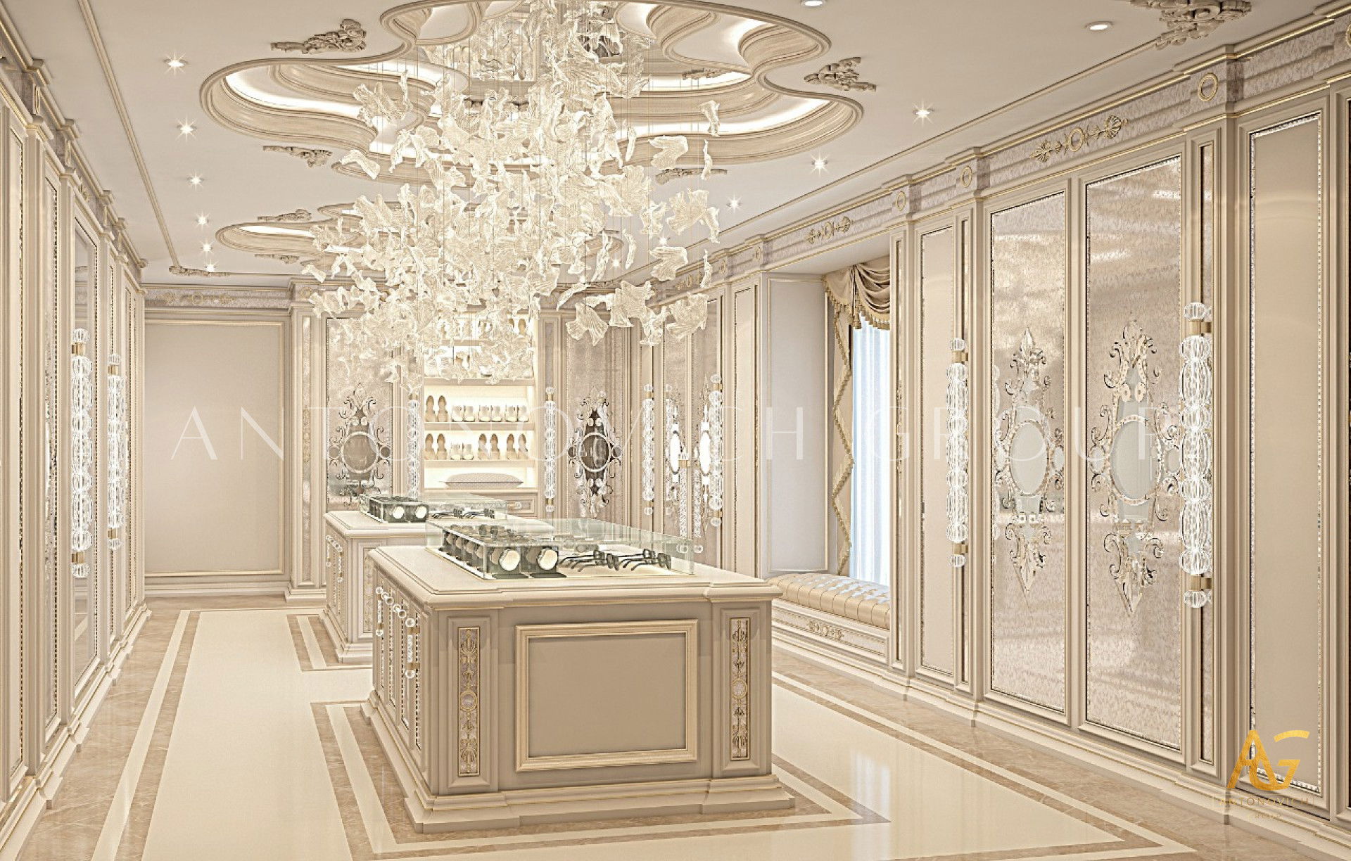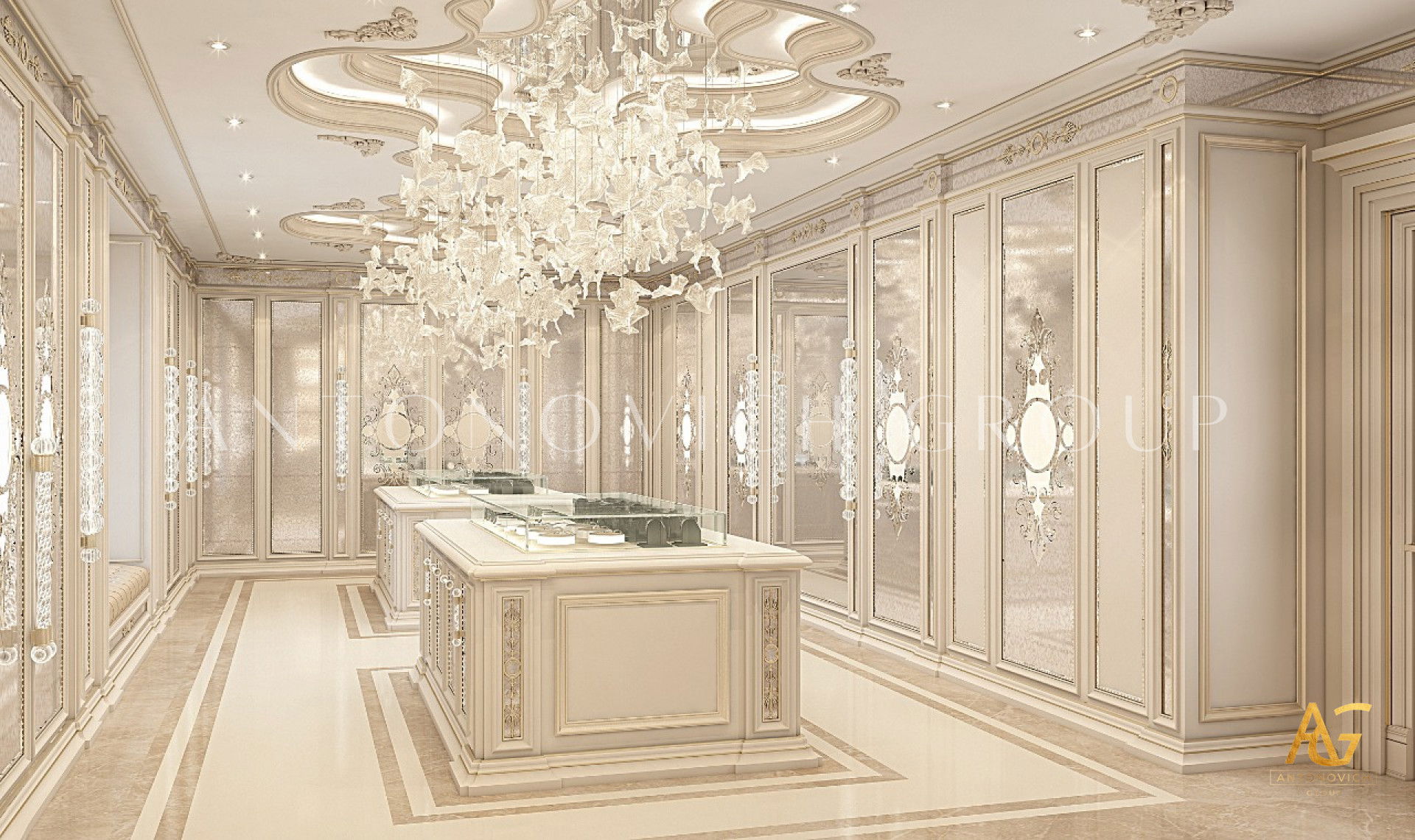 If youre a fan of luxury details, this elegant modern interior design has enough style for you! Interesting design can be seen in the luxury modern interior design. It has an elegant style that coordinates with the entire luxury closet. From floor to ceiling, everything is curated with so much luxury feel. The colors are beautifully mixed. The neat and light color adds to the luxury ambiance of the luxury closet interior design made by Luxury Antonovich Design.
