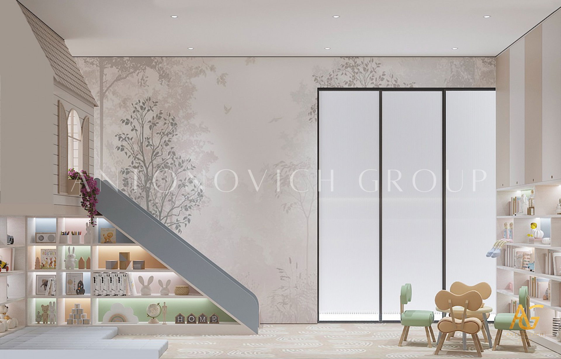 Antonovich Group understands that a kid's bedroom is more than just a sleeping space; it's a canvas for creativity and playfulness. Introducing a colorful pastel palette becomes the first stroke in creating an atmosphere that sparks joy. Soft pinks, serene blues, and gentle yellows form a symphony of colors that not only visually expand the space but also evoke a sense of tranquility and happiness.