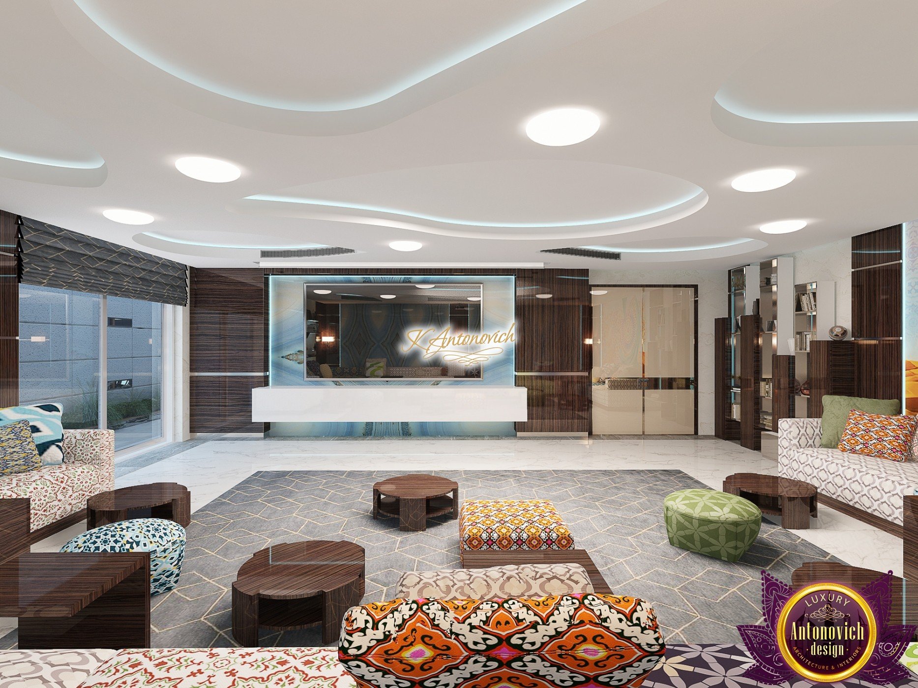 We invite you to plunge into the world of absolute harmony. Interior Designers of studio Luxury Antonovich Design created the interior, which literally froze on the thin line between the modern style and minimalist style. This new direction in the creation of elite projects sitting room ideas. Despite the outward simplicity and restraint, the interior paint ideas of the living room looks incredibly respectable. So what gives to the interior so noble and elite look. First simple sitting room design, to all of this contributes the luxury wall decor. Luxury motives, natural ornaments, natural materials warmth of nature brought to the interior.Decor panel made of natural agate perfectly combined with the decor of solid wood panels, which is covered with varnish. Futuristic and volumetric look have the ceiling.Interior designers have proposed several different-sized niches with streamlined contours.Lines of LED backlighting, modern ceiling lights and beautiful lamps provide excellent interior lighting and the necessary emphasis on those or other decor items. The most striking and enchanting moment in the interior of the living room was the furniture. Almost the entire perimeter of the walls are placed sofas upholstered of noble textiles with bright geometric patterns. Large plasma panel quite harmoniously fits into the modern interior. The basis of the floor decor is light marble.And to compensate for the coolness of stone in the interior design for sitting room provided a great natural carpet with geometric pattern. For books and souvenirs, designers offered open showcases with glass shelves latest sitting room design.