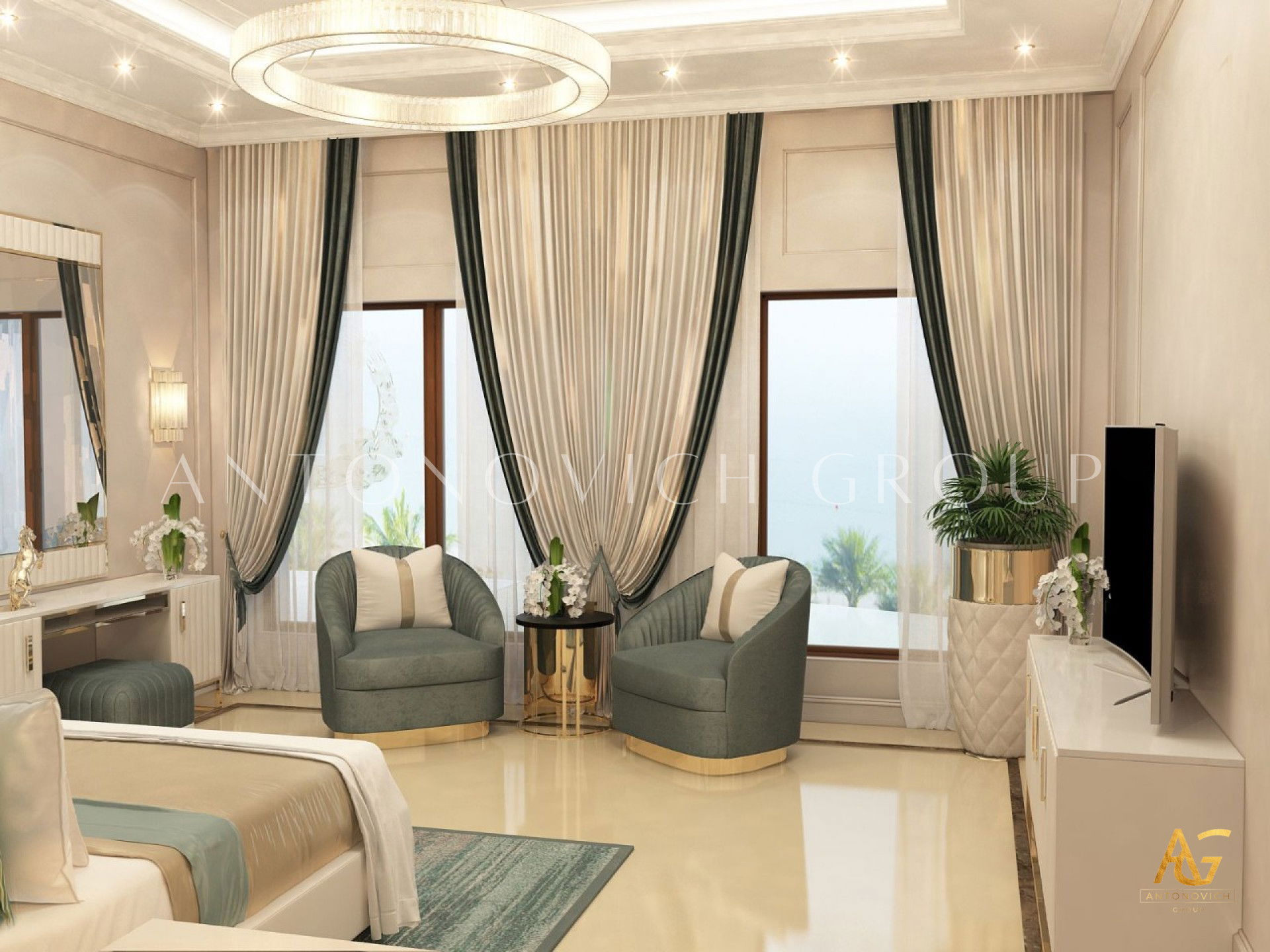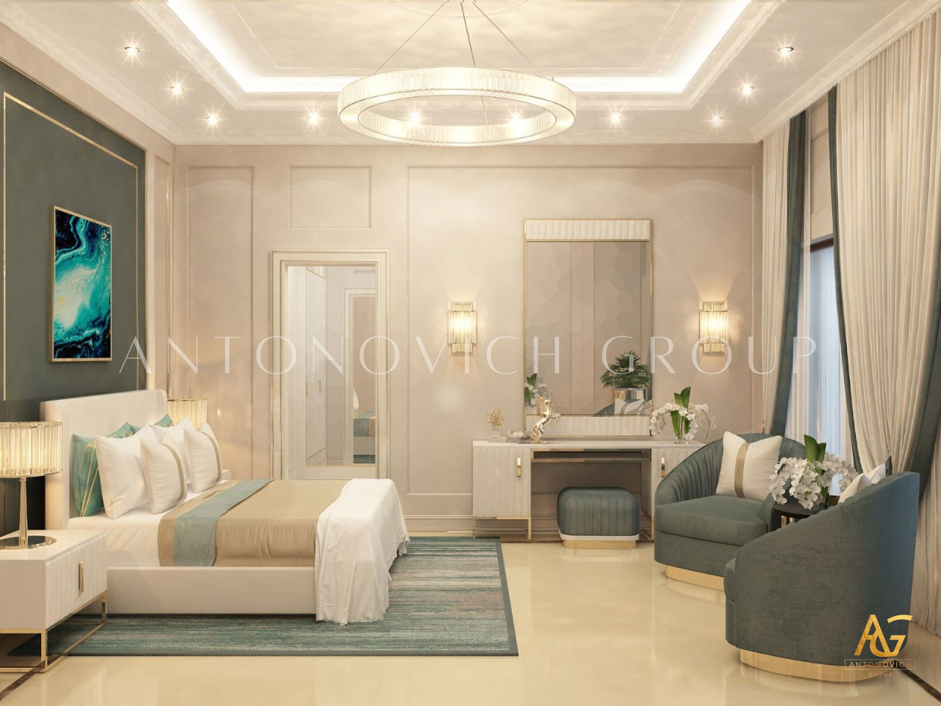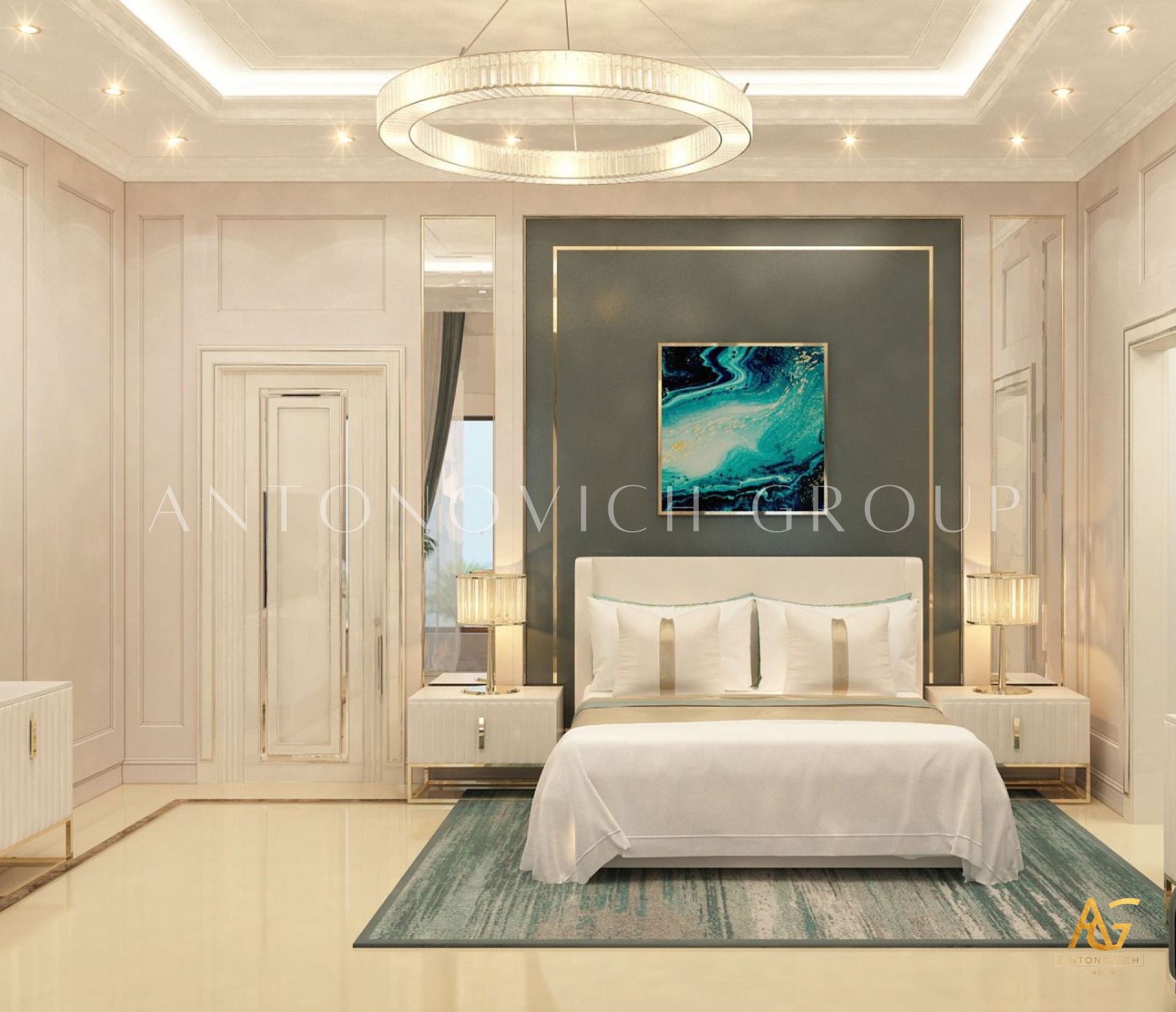 Its time to think about color now that youve measured your furniture sizes and have enough walking area in your bedroom creative interior design. Choose a color palette that complements each other rather than conflict. Finding a striking undertone that makes you feel calm—like this stunning sage green bedding—and choosing décor that matches it can be just as relaxing as neutral tones. Its crucial to have a variety of light sources by the best interior designers in the world in your bedroom creative interior design because you dont always sleep there. This allows you to alter the ambiance based on your needs: softer lighting can help you relax after a hard day when reading in bed at night. On the other side, having a bright overhead light source by the best interior designers in the world that puts your everyday outfits in full view is helpful while getting dressed in the morning. To keep the area quiet and ageless, we like to utilize soothing, natural hues. A natural grass fabric adds a subtle gloss to the area. Warm, light neutrals work nicely in the bedrooms creative interior design, and a variety of textures makes the space feel softer and more inviting.