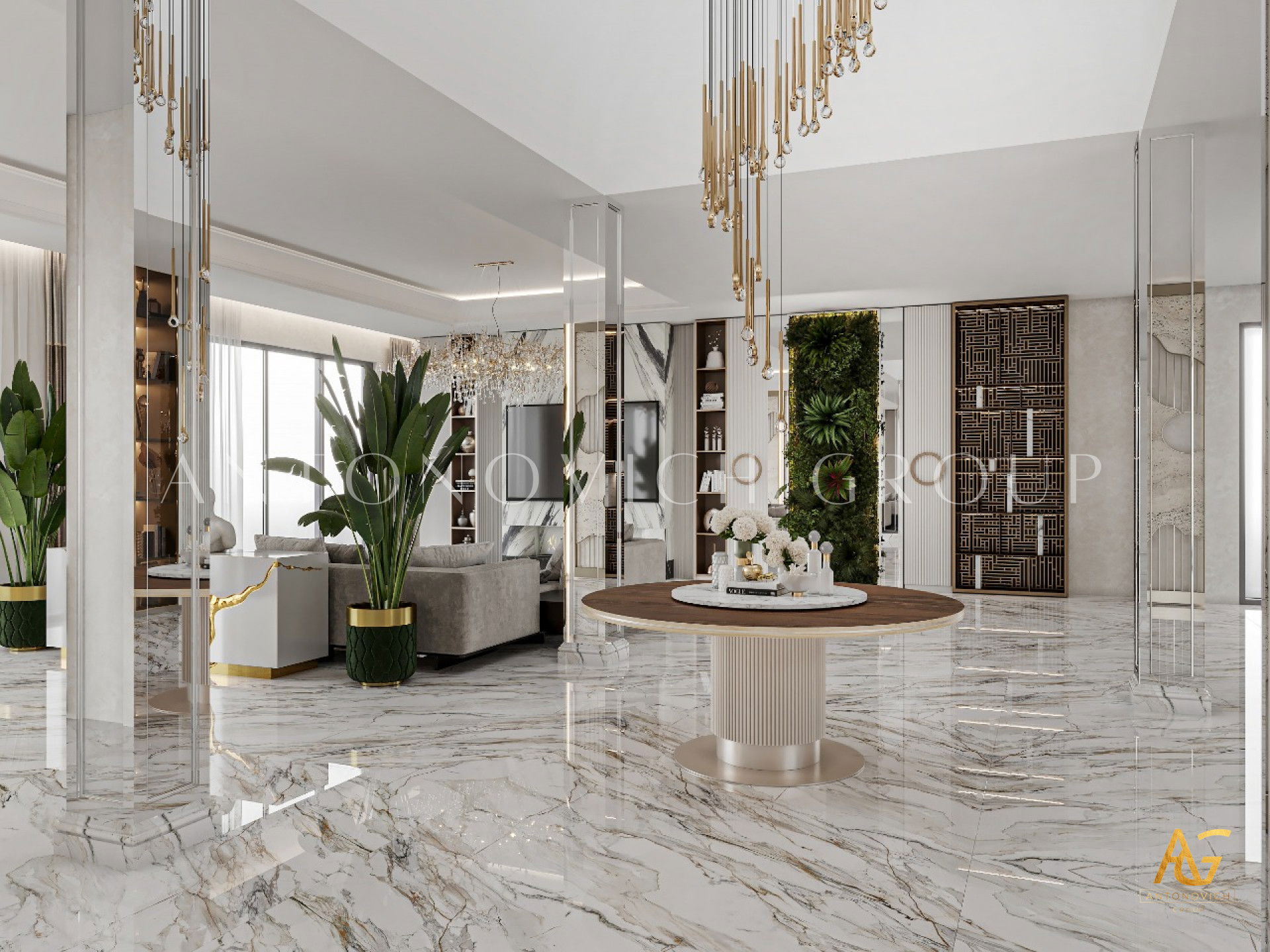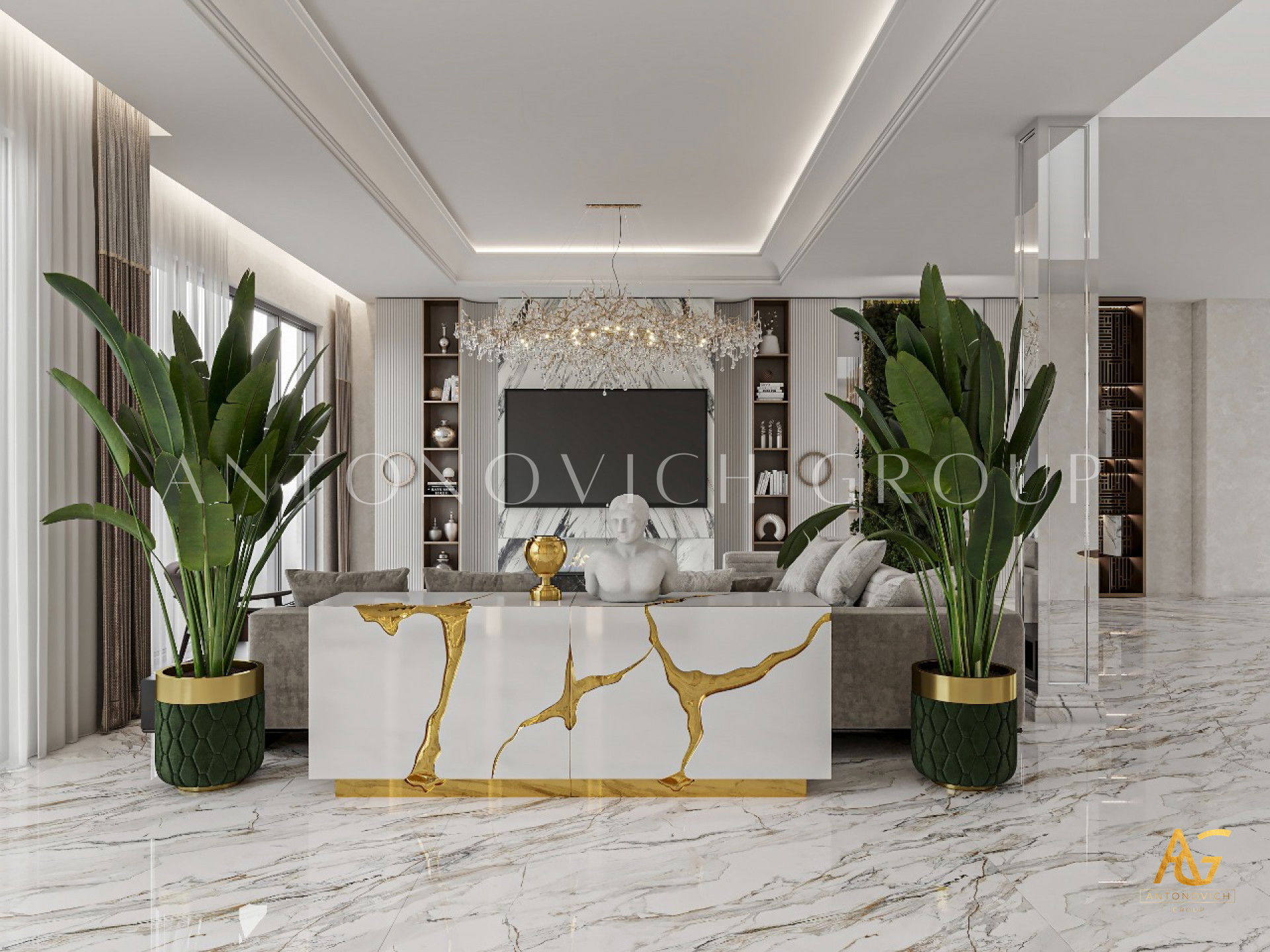 As a leading design firm in Dubai, Luxury Antonovich Design is here to bring your dream luxury living room to life with a creative interior design tailored to your personality and interests. We craft each living room to exude a regal, gorgeous feel that elevates your space. Our skilled designers work closely with you to shape the perfect creative interior design for you and your family, enhancing your home’s richness with a majestic layout. This beautiful and creative interior design will make your living room feel inspiring and timeless.