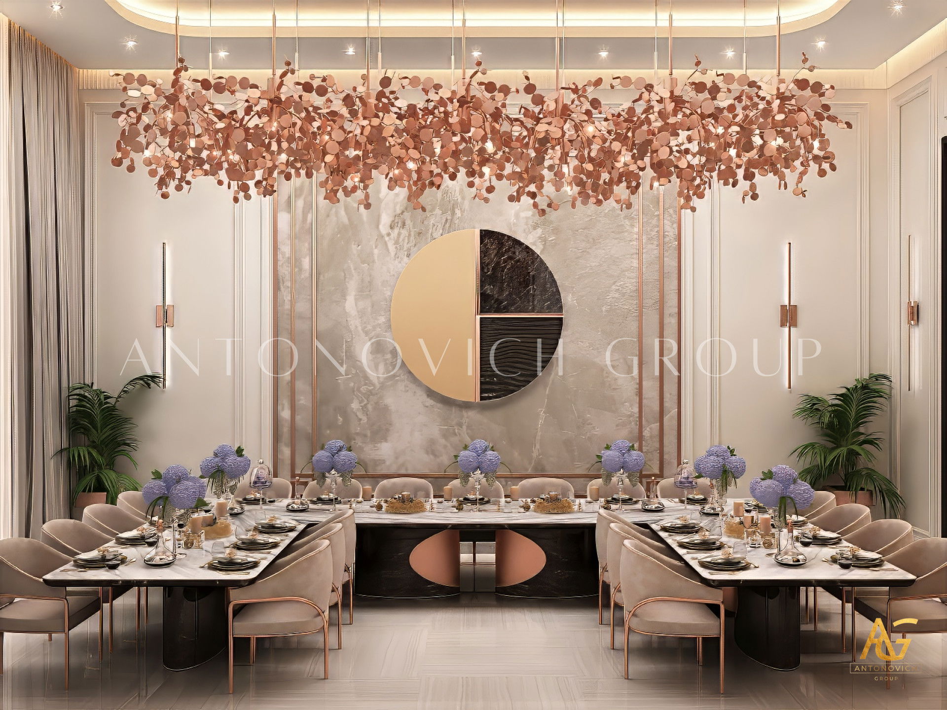 By combining thoughtful design with technical precision, Antonovich Group ensures that each dining room exudes warmth and tranquility — a space where beauty and comfort meet.