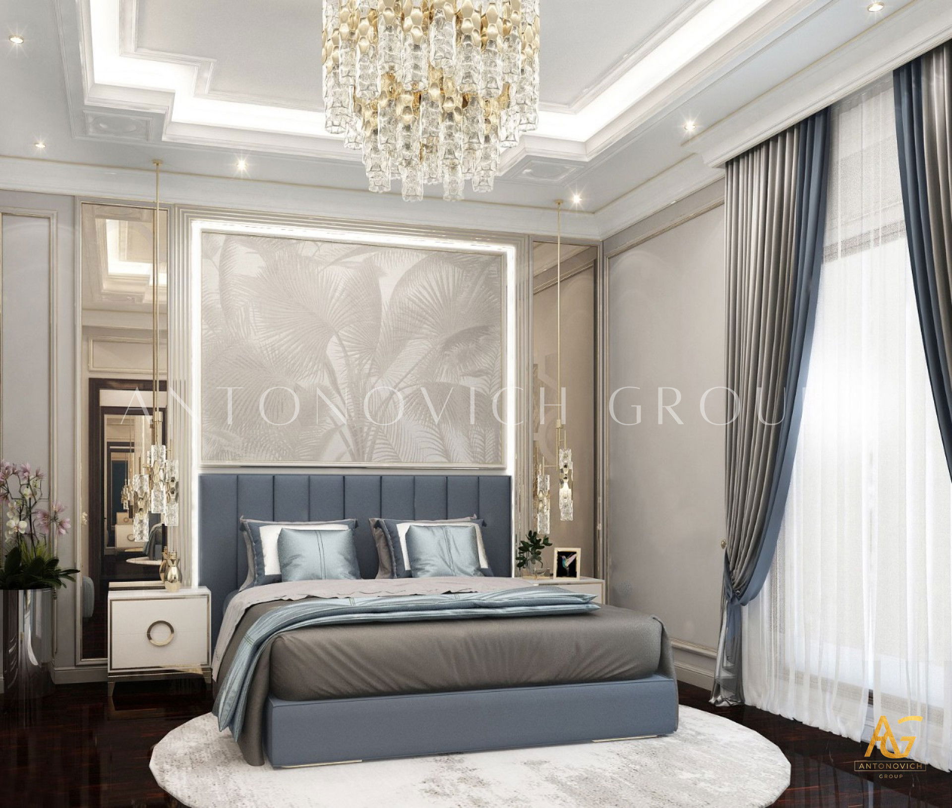 Dont just use a dark color on the walls; extend it to the ceiling for a truly snug, cocooning effect thats perfect for small bedroom luxury villa designs. Choose a dark but soft blue for a style that has depth but isnt too dramatic, and add some statement pieces in brighter colours to brighten up the space. A statement beaded chandelier takes center stage in this master bedroom luxury villa design, providing a mild, bright contrast to the dark walls and ceiling, as well as adding drama due to the large dimensions. Bold colors for your luxury design house appear even more against dark walls than they do against white, so match deep hues for your house luxury design with bright shades to give a gloomy bedroom luxury villa design a vibrant makeover. The inky teal walls in this loft bedroom luxury villa design provide the perfect backdrop for the bed linens vibrant oranges, reds, and yellows. It strikes the perfect balance between a playful and classy color choice for a bedroom luxury villa design. Darker hues for your house luxury design can be achieved in a bedroom luxury villa design without using paint. A dramatic bold wallpaper may add just as much depth to a color scheme and serve as the perfect focal point. With its rich textures and colors for your luxury design house, this area has a certain sumptuousness about it.
