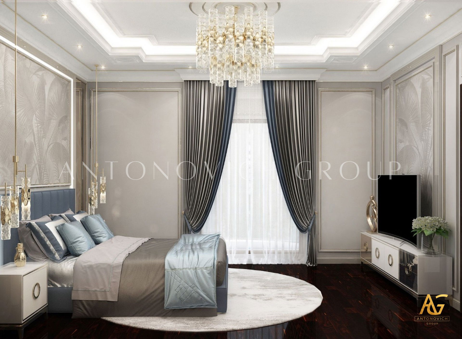 Do you like a bedroom luxury villa design with a neutral color scheme? As this space demonstrates, dark bedroom luxury villa designs dont have to be overly dramatic. To soften the black main wall in this bedroom luxury villa design, its coupled with lots of nice soft, neutral tones and crisp white bedding to give the area a lift and a much more livable aspect. You dont want to break up those swaths of gorgeous dark walls with furniture in dark bedroom luxury villa designs, so decrease visual clutter by painting (or sourcing) furniture that matches the walls. The cream headboard creates enough contrast with the deep denim blue walls in this little bedroom luxury villa design, so the side table merges in with the walls behind it, producing a smart monochrome scheme thats simple and chic. The rich color palette and colorful materials give this space a cozy, cocooning atmosphere. The white-painted flooring provide harmony, while the upholstered headboard perched atop the bed frame adds drama. Layer plenty of soft textures to soften the severity of a dark bedroom luxury villa design and give it a more comfortable atmosphere. As you can see in this area, wood pops against a dark backdrop and lends a slightly rustic look, which is only enhanced by the slubby linen bedding and textured matelassé type throw. Against the somber backdrop, theres a very welcome vibe.