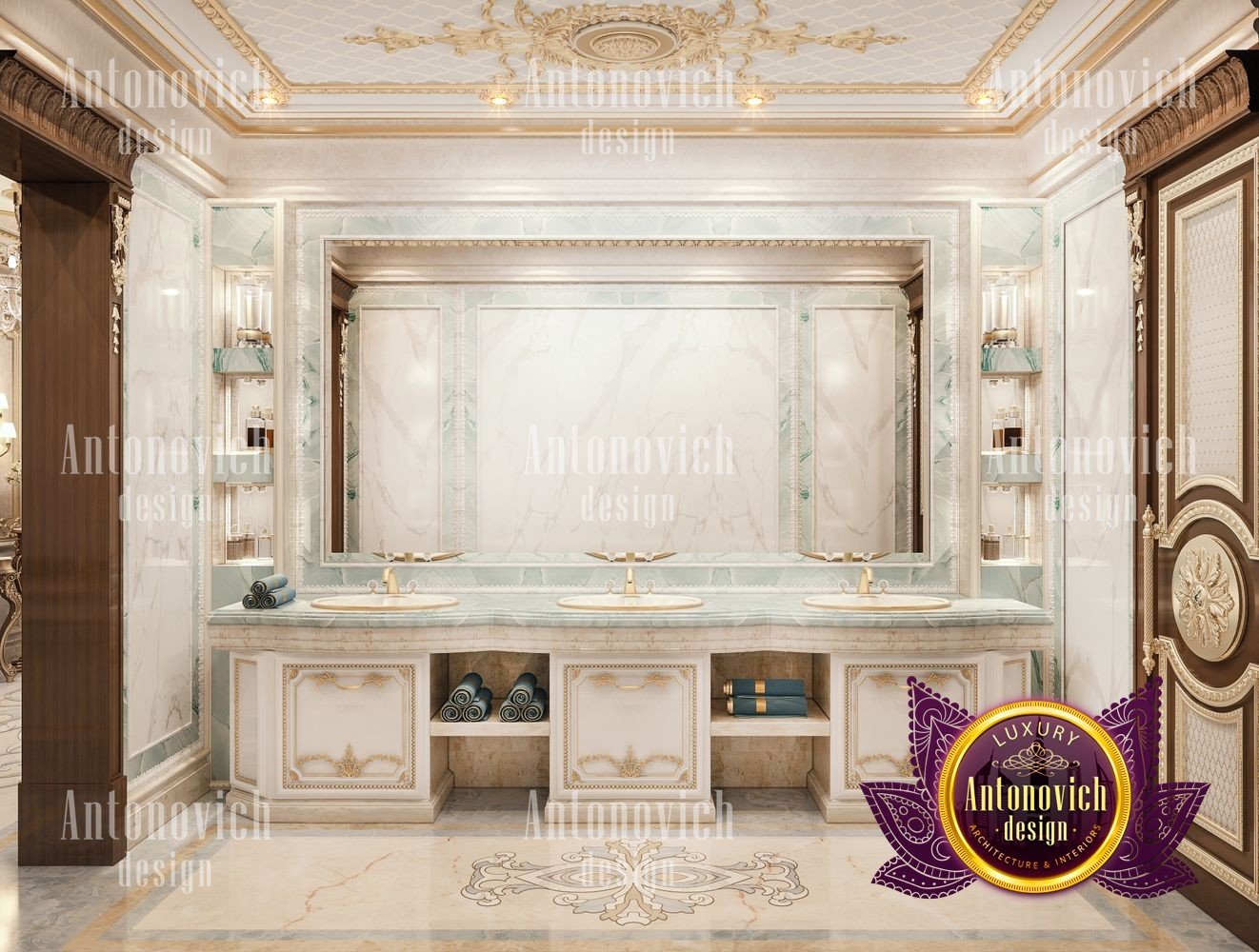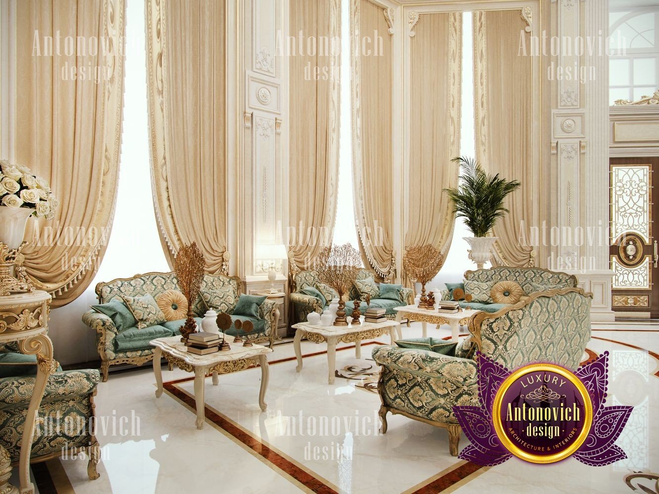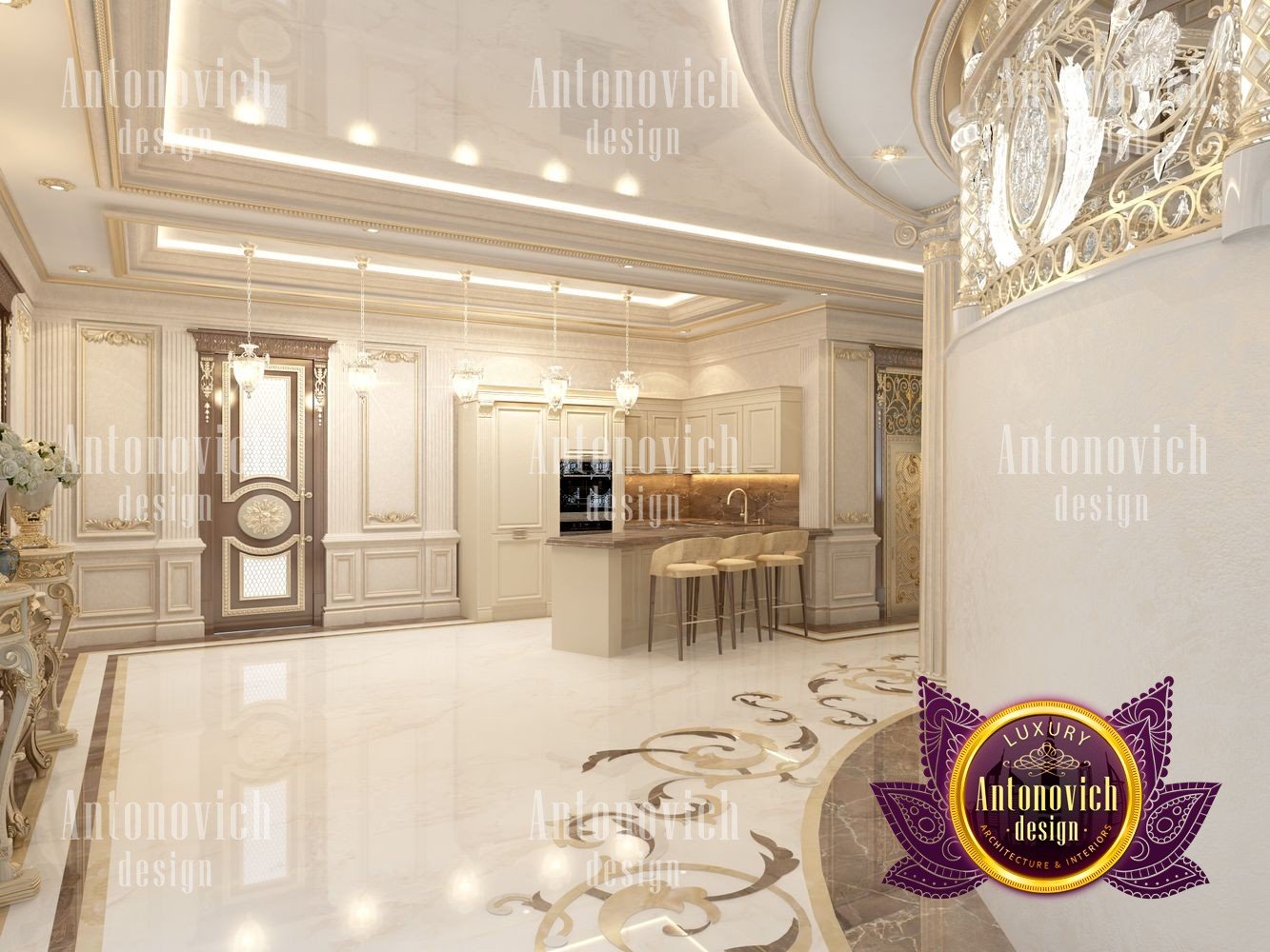 The most exciting part of the dream house construction is having the chance to create it yourselves. It gives you the opportunity to lay out all the details that you want and discuss it with the architects and designers. fulfilling your requests and turning your dreams to reality. An interesting idea was the use of three lamps in Arabic style, which decorated the kitchen area. This is a fine and subtle hint at the cultural traditions of the country, which the owner of the apartment esteems and respects. The lush and rich decor of the walls adds a luxury mood to the interior of the studio apartment. The top of the wall is a broad molding with curls of stucco decoration, which are covered with gilding. Below, there is a strip of the snow-white wave of stucco, which plays a wonderful chiaroscuro under the light of a chandelier. Paneling framed by decorative plaster in pearly white tones, and inside they are filled with beautiful silk wallpaper with large ornaments. The floor design continues the magnificent and elegant mood of the interior. Beautiful Italian marble is decorated with authors carved patterns of marble several kinds.