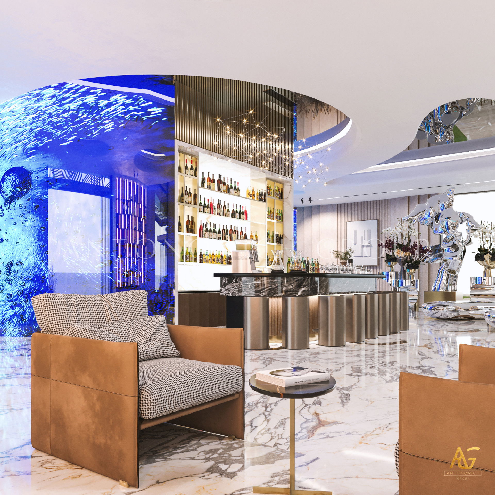 Antonovich Group's expertise in Dubai interior design shines through in the engineering brilliance that supports the underwater structure. Robust materials and innovative design ensure a secure and awe-inspiring living space.
