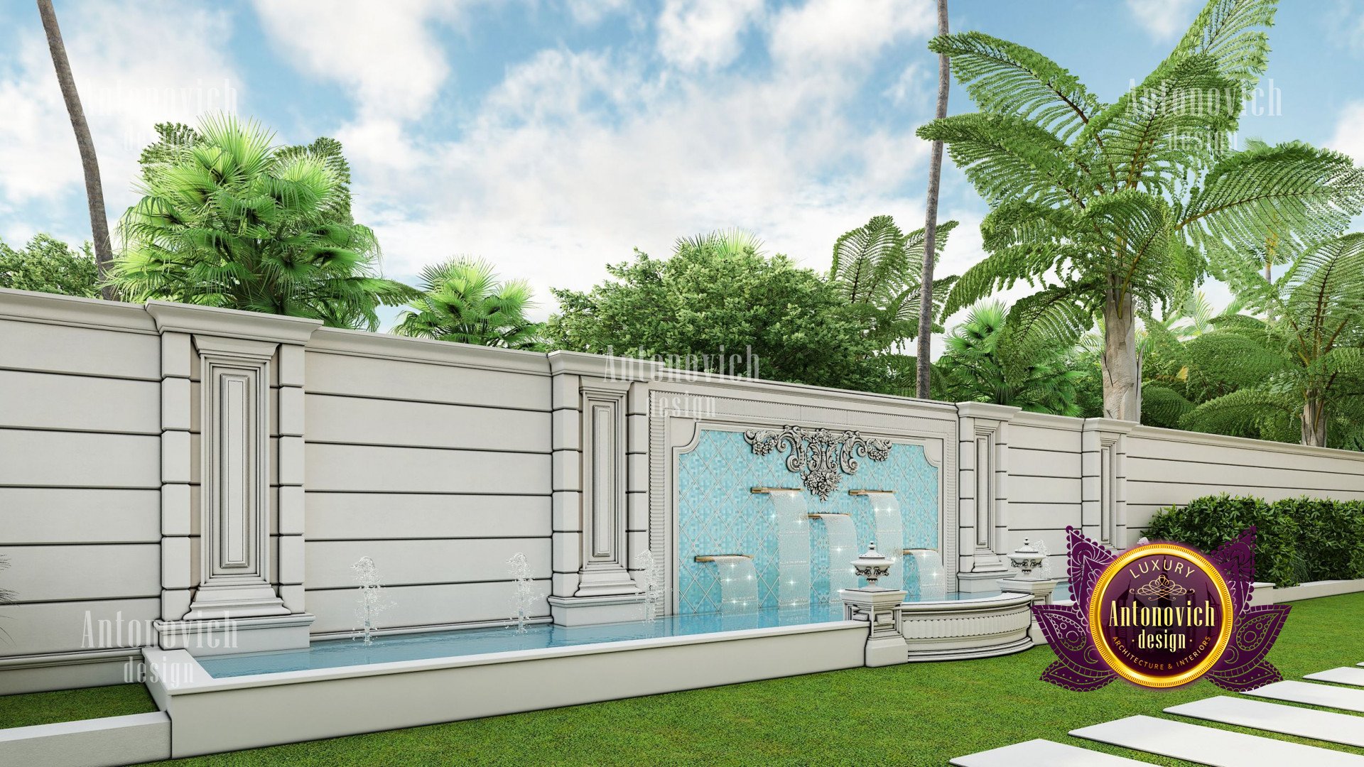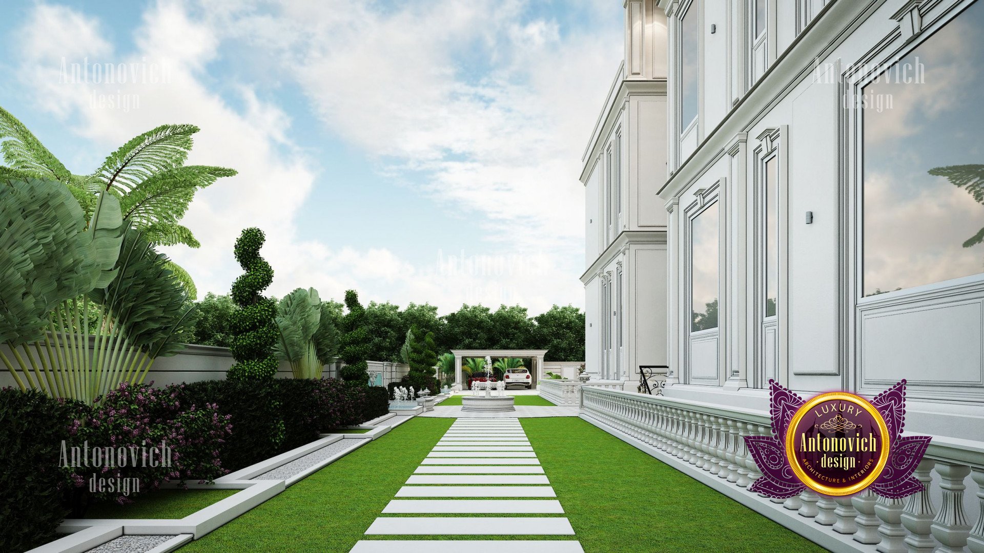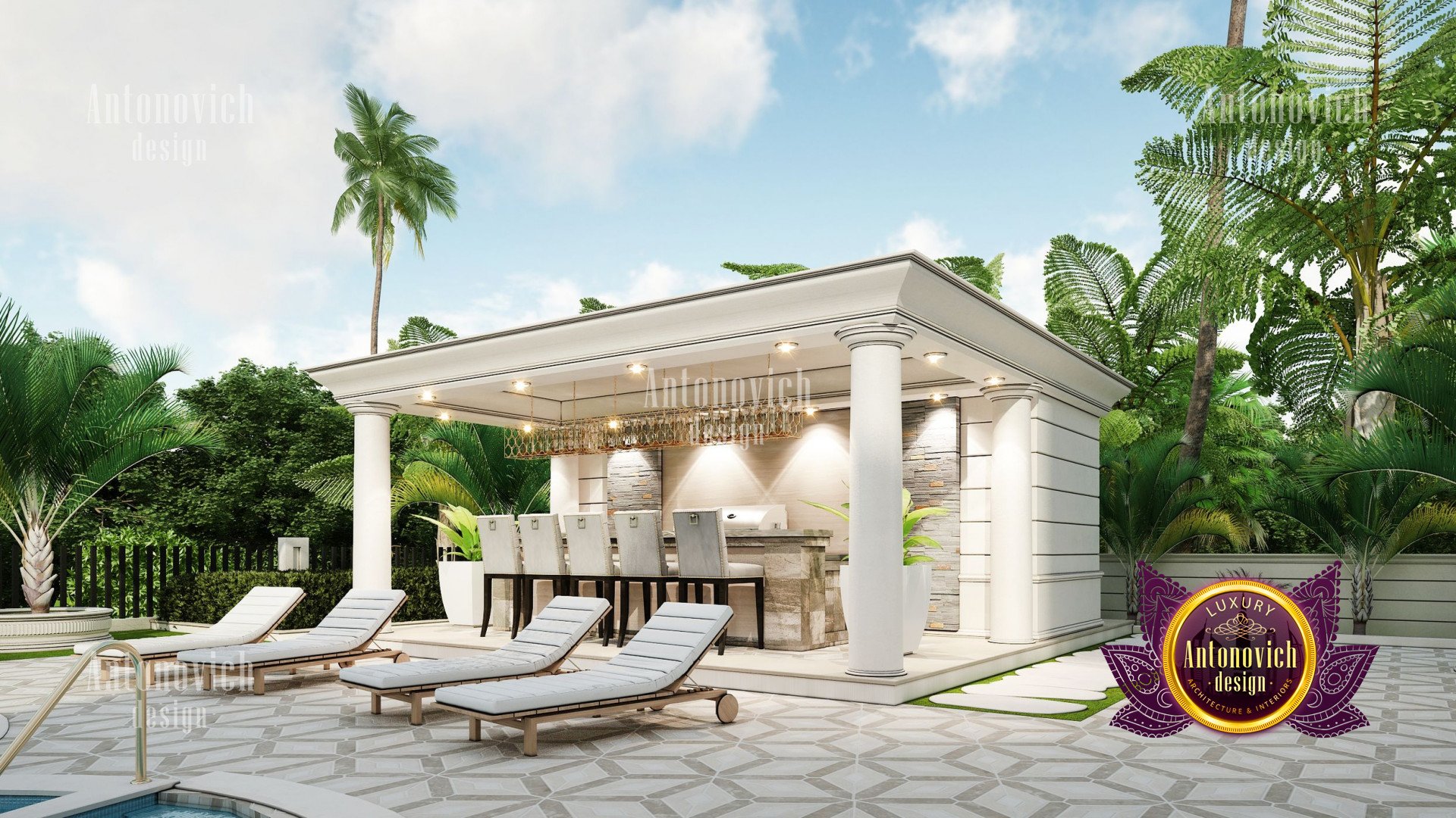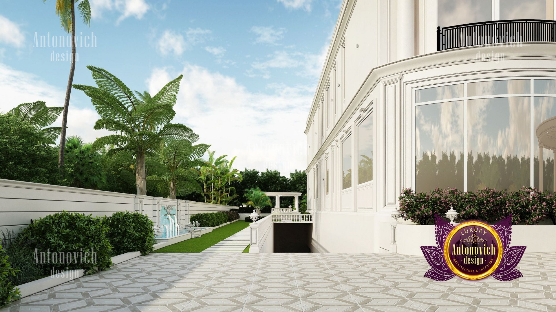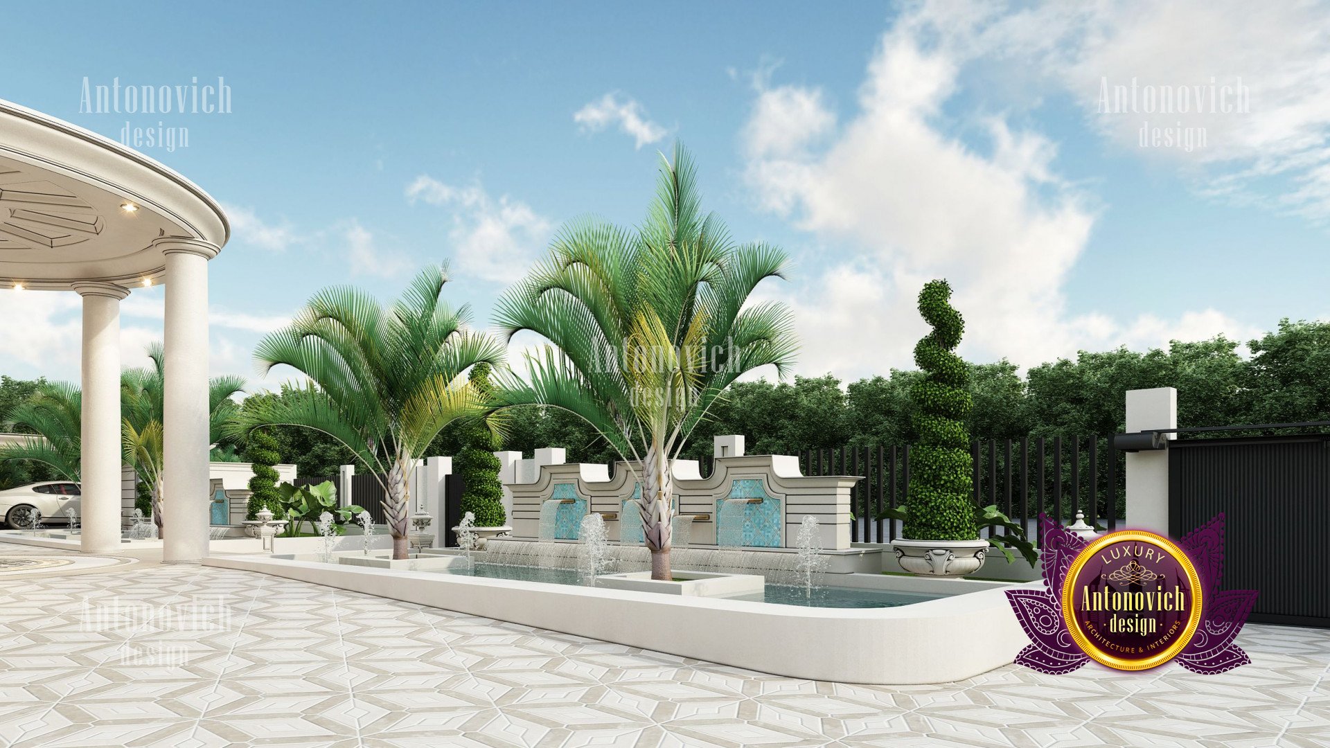 Refinement makes it possible to integrate the architectural design of the building in any landscape or building of any kind. The original Luxury Antonovich Design country house was modeled on eclectic style country villas. Important features of the house and surrounding design are borrowed from the concept of classics. In addition, individual touches of the house are the expression of the aesthetics and values of ancient eras. All this interweaving of styles allowed to achieve a very interesting result.
