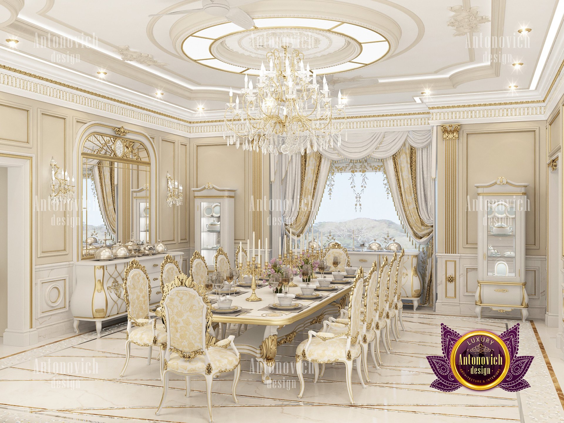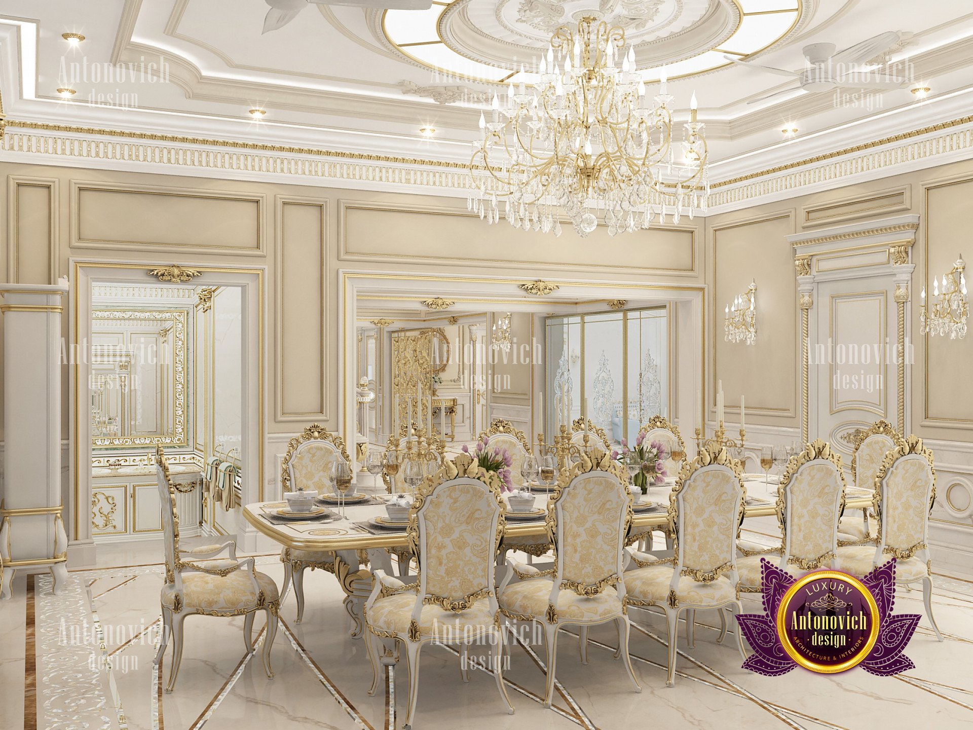 INTERIOR ELEMENTS OF A LUXURY DINING ROOM