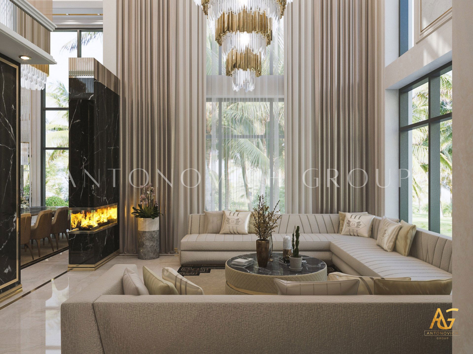 STYLING LIVING ROOM INTERIOR DESIGN FOR A LUXURY VILLA BY LUXURY ANTONOVICH DESIGN