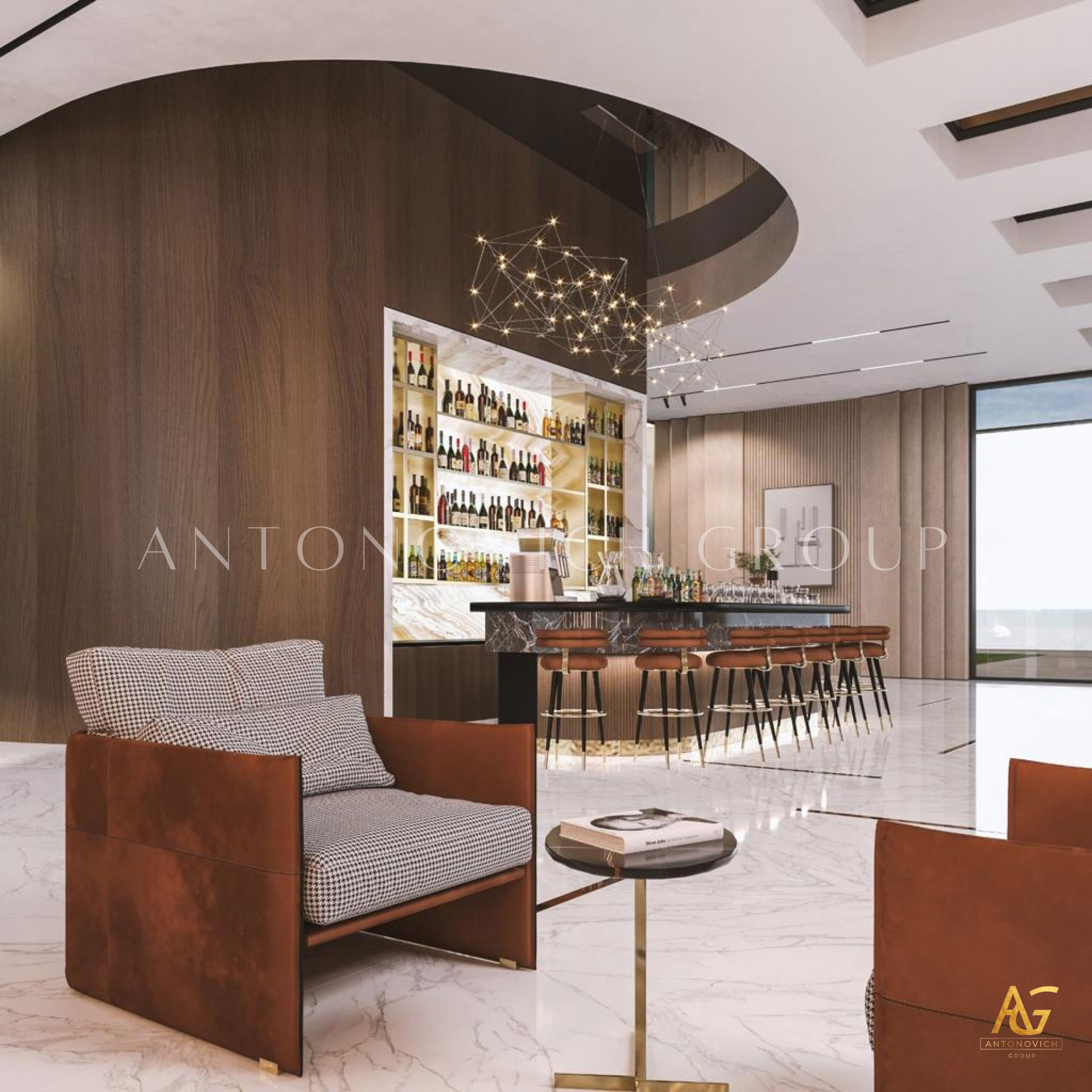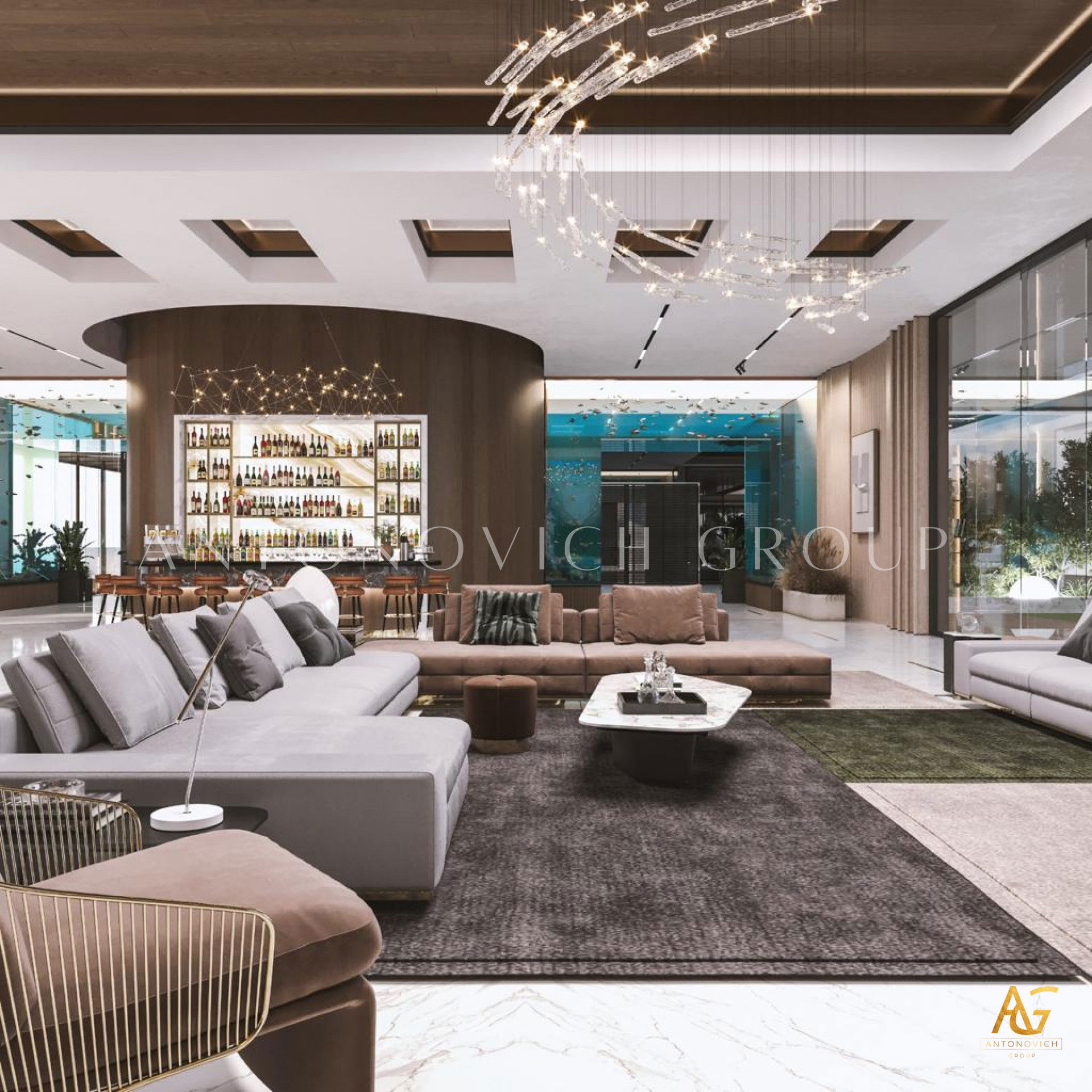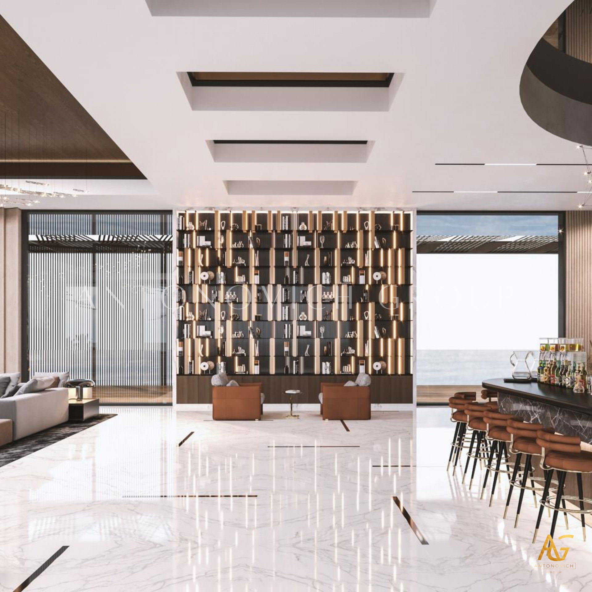 In the realm of spacious living room interior design with a bar counter, Antonovich Group stands as an unrivaled authority. Their holistic approach, encompassing construction, fit-out finesse, interior design, and bespoke furniture services, results in living spaces that redefine opulence. For those seeking a living experience that transcends the ordinary, Antonovich Group is the beacon guiding you towards a realm of timeless sophistication and unmatched luxury.