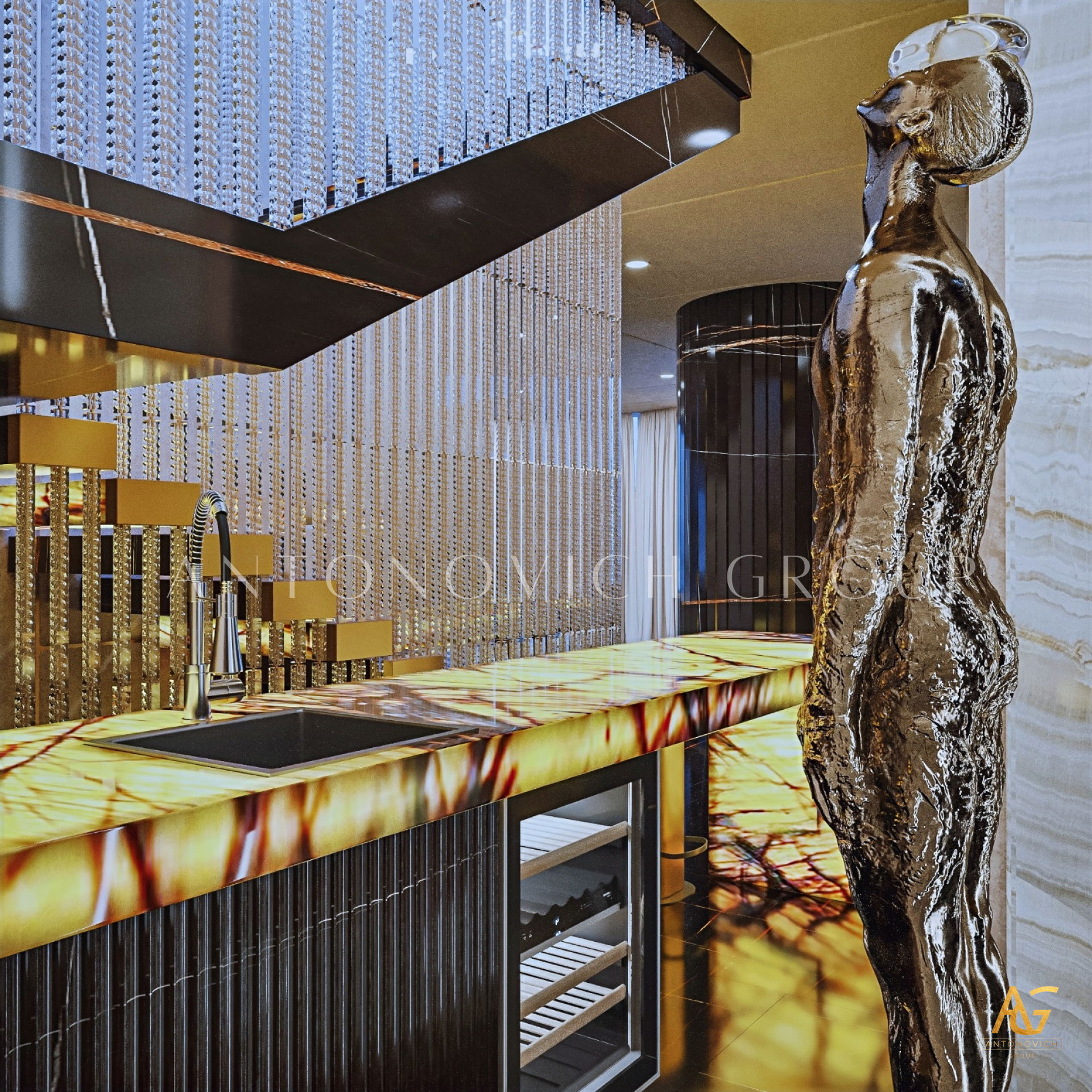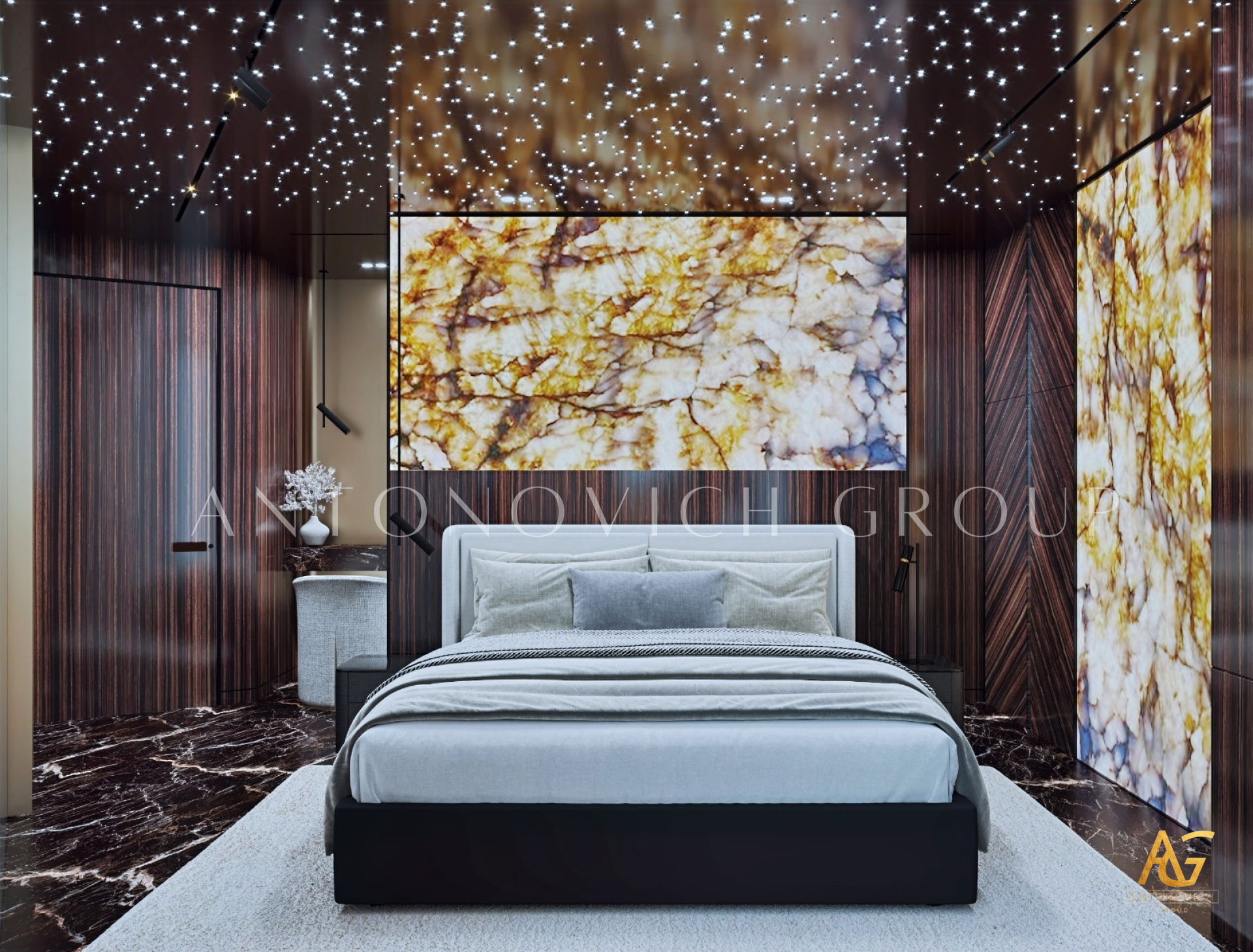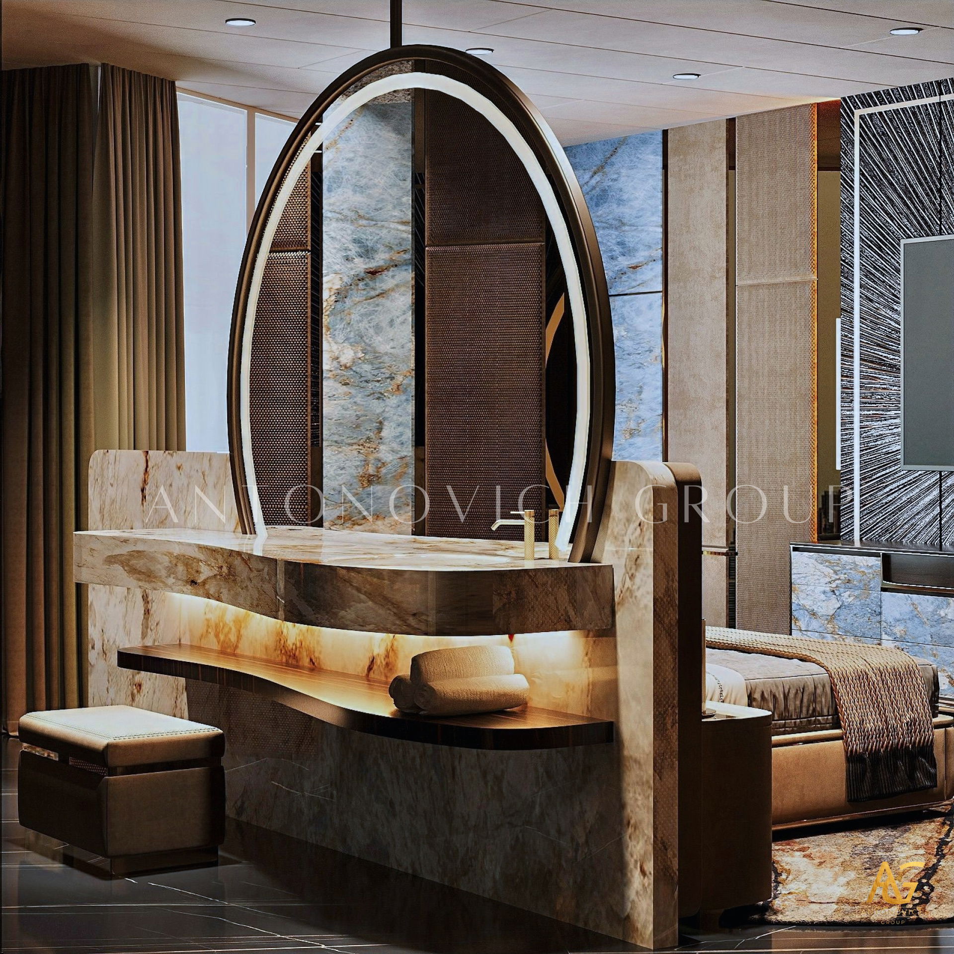 Premium materials, refined finishes, and carefully curated color palettes define Antonovich Group’s apartment interiors. Natural stone, wood veneers, luxury fabrics, and custom wall treatments are used to create interiors that are both visually striking and enduring.