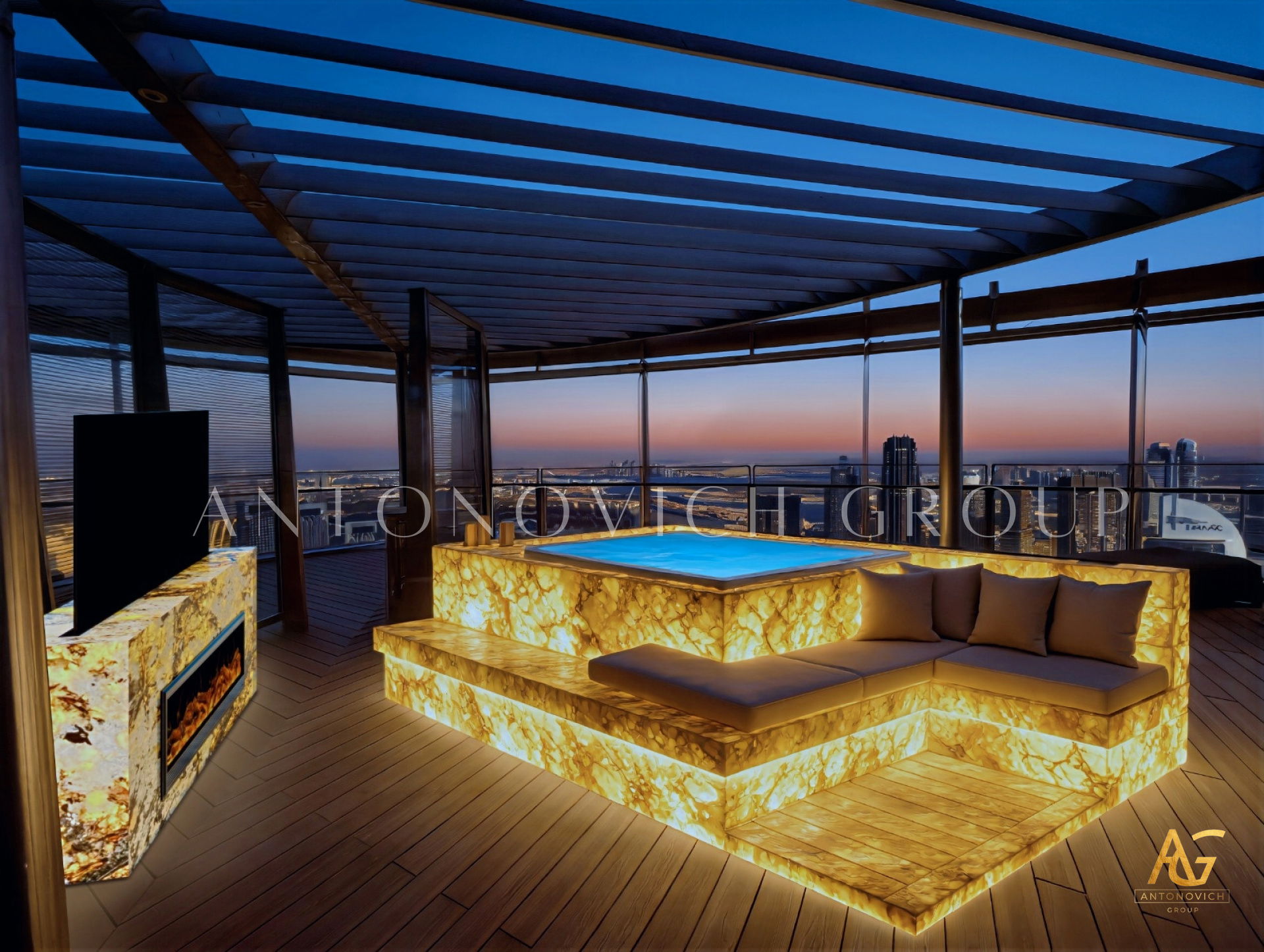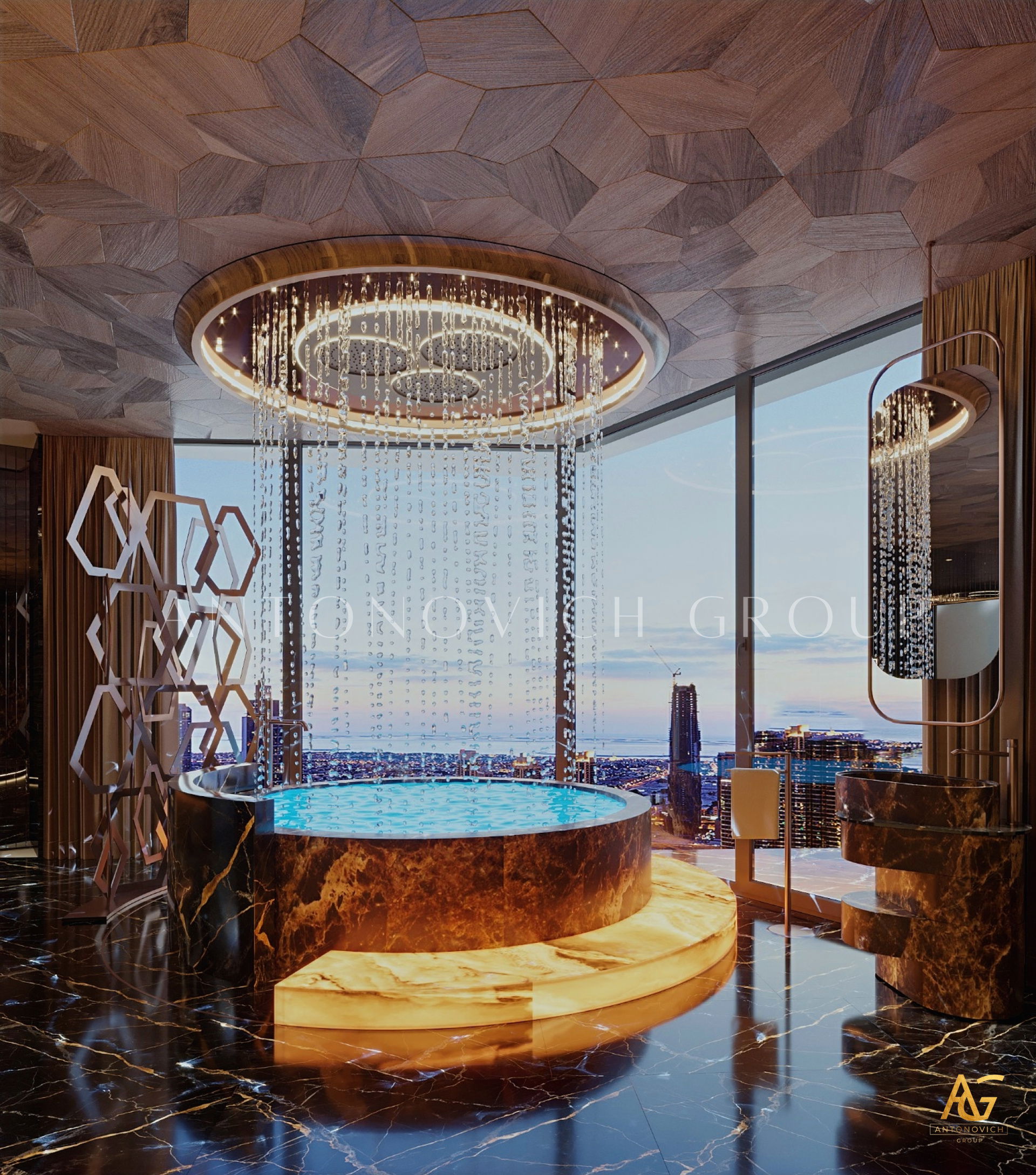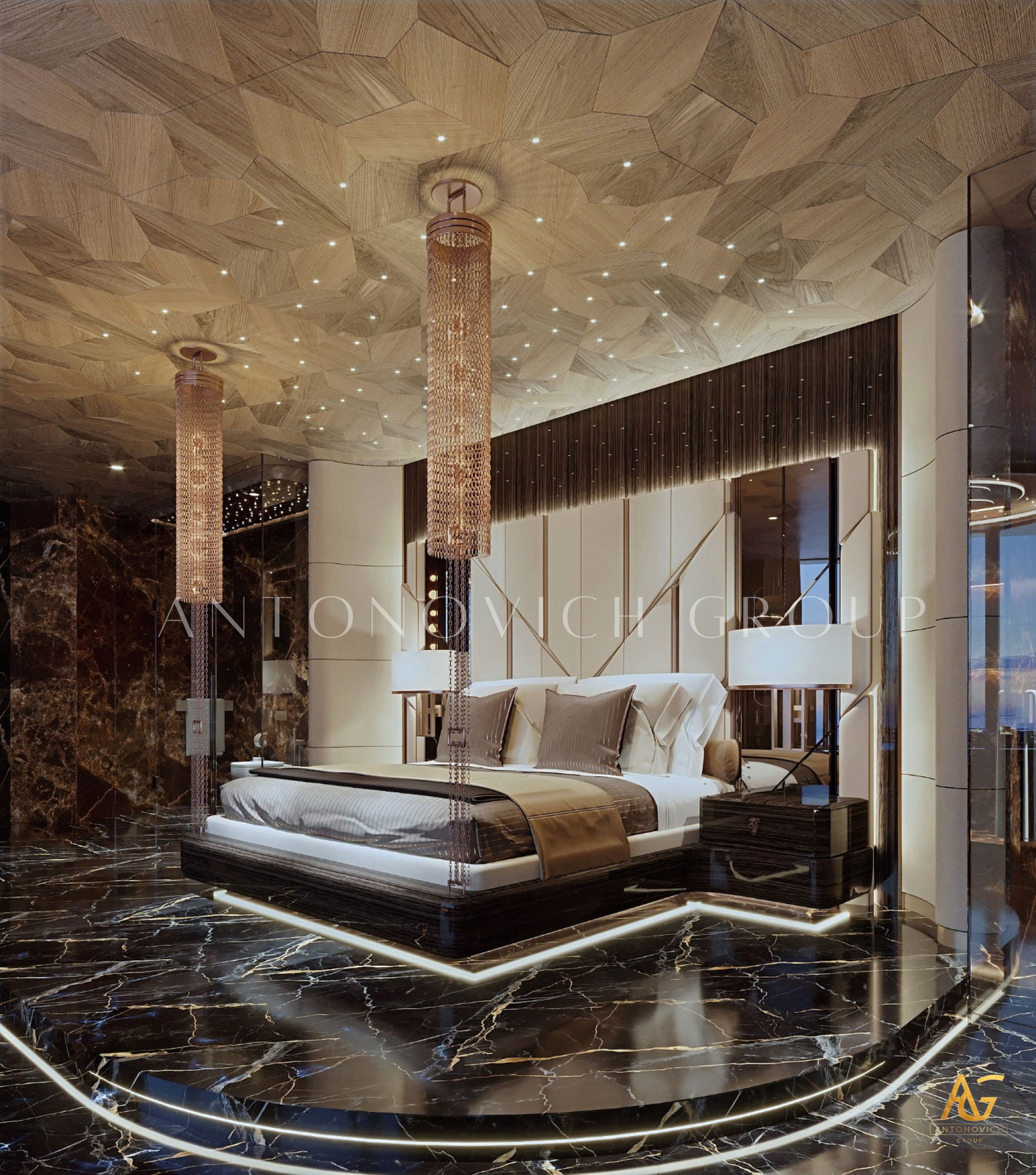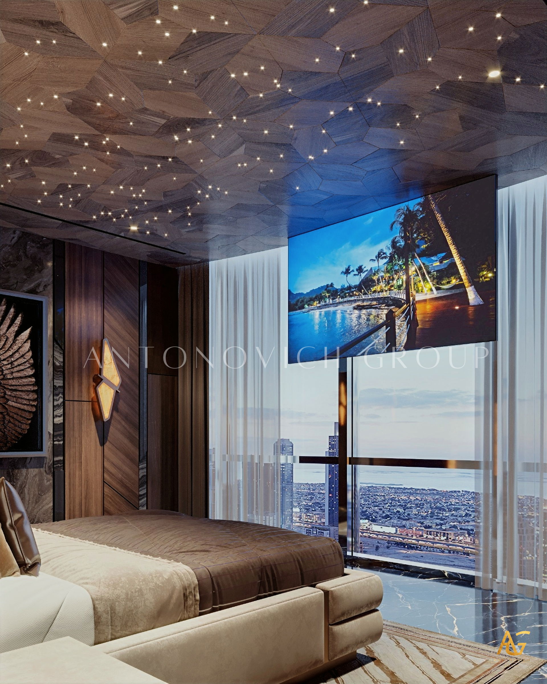 Penthouse designs by Antonovich Group often feature double-height spaces, bespoke staircases, statement lighting, and custom-designed furniture. Each element is carefully curated to enhance the sense of grandeur while maintaining comfort and functionality.