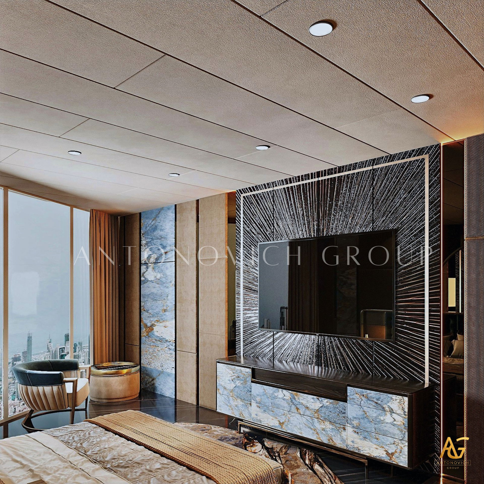 Antonovich Group’s apartment interiors are defined by cohesive design across all spaces. Living rooms are designed to be welcoming and refined, with balanced layouts and luxurious finishes. Bedrooms are transformed into private sanctuaries through soft palettes, premium materials, and intelligent lighting.