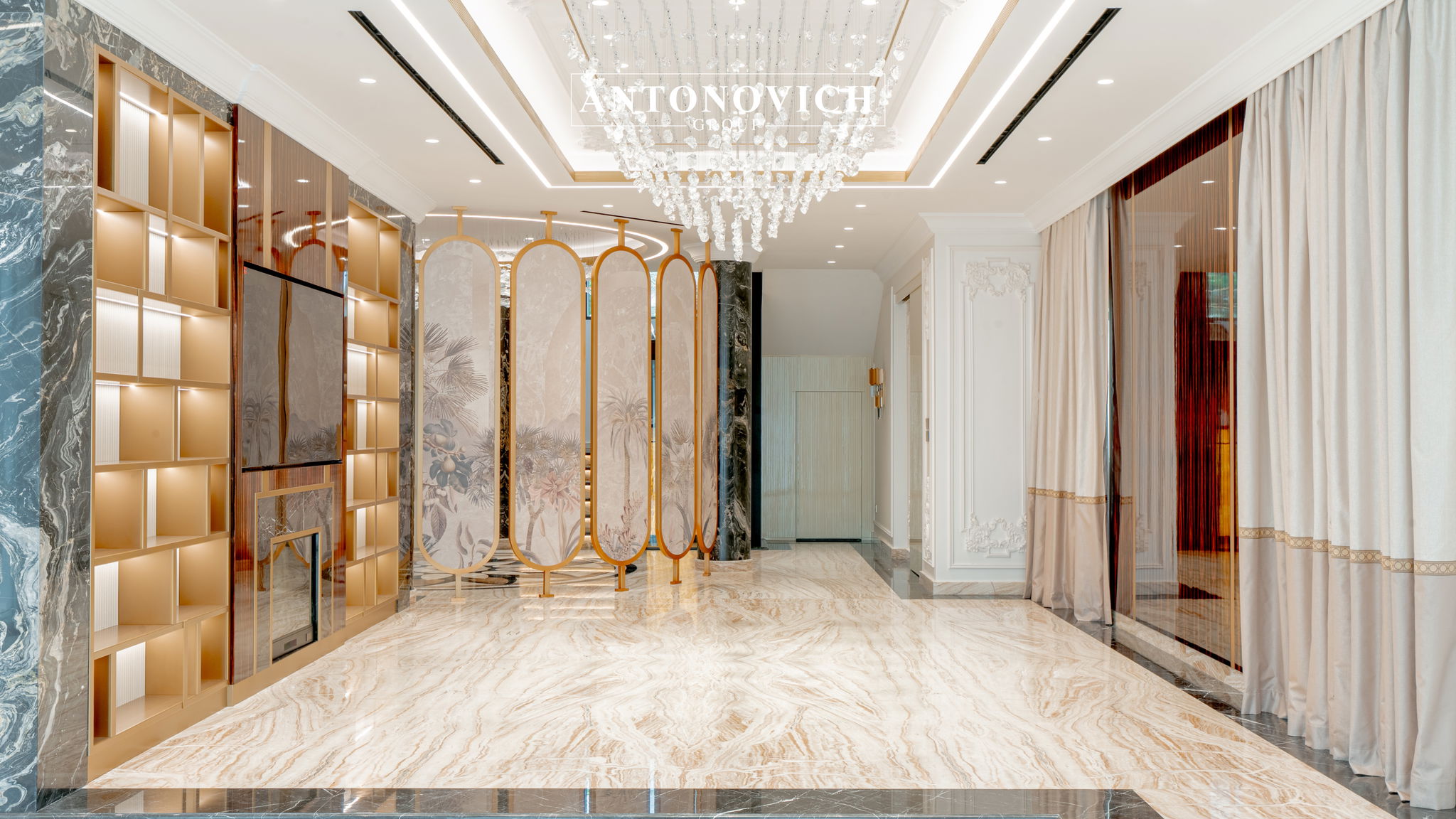 One of the standout elements of this renovation is the premium marble flooring installation. Antonovich Group is known for its exceptional marble works, which combine artistry and technical precision. For this project, the team carefully selected the finest marble slabs, ensuring that each piece harmonized with the overall color scheme and interior style of the villa.