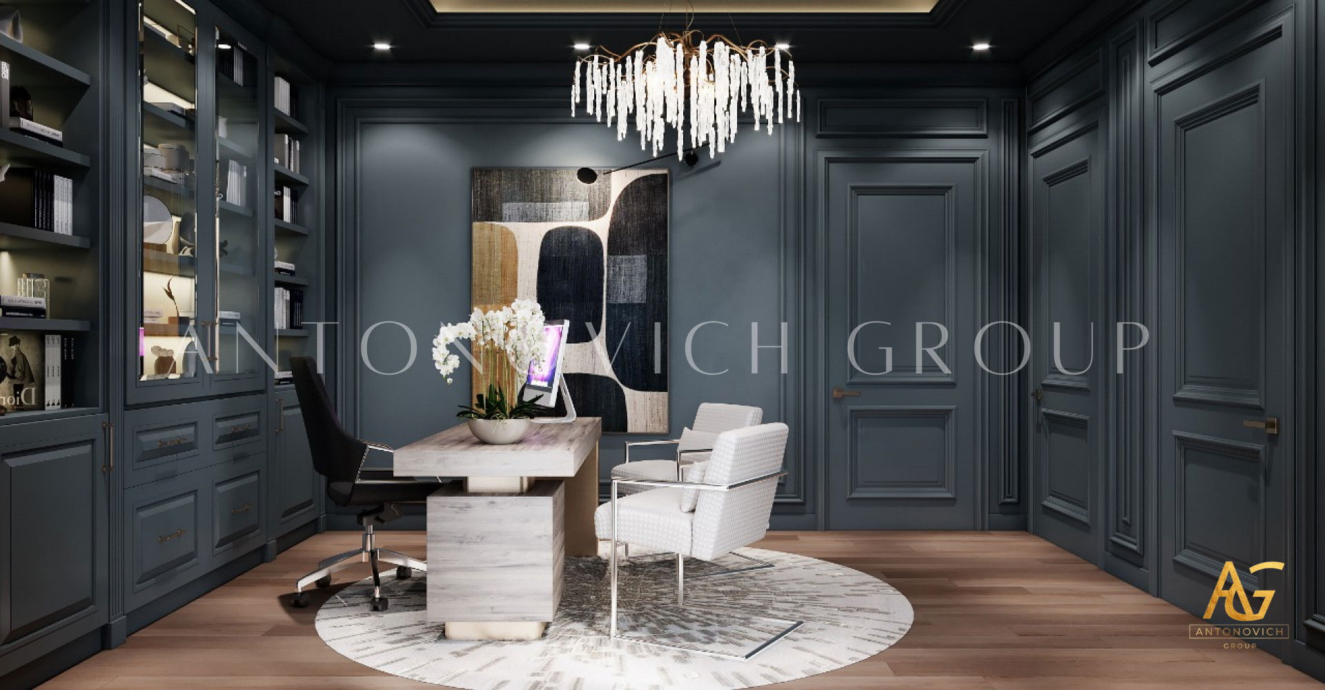 Antonovich Group is absolutely every client’s partner to achieve the finest interior design arrangement for every home office interior design. Aside from providing the perfect mood of elegance and style. The team always assures to bring out exquisitely in every interior set up by selecting the best furniture, materials, and texture that will be completing the entire home office set up.