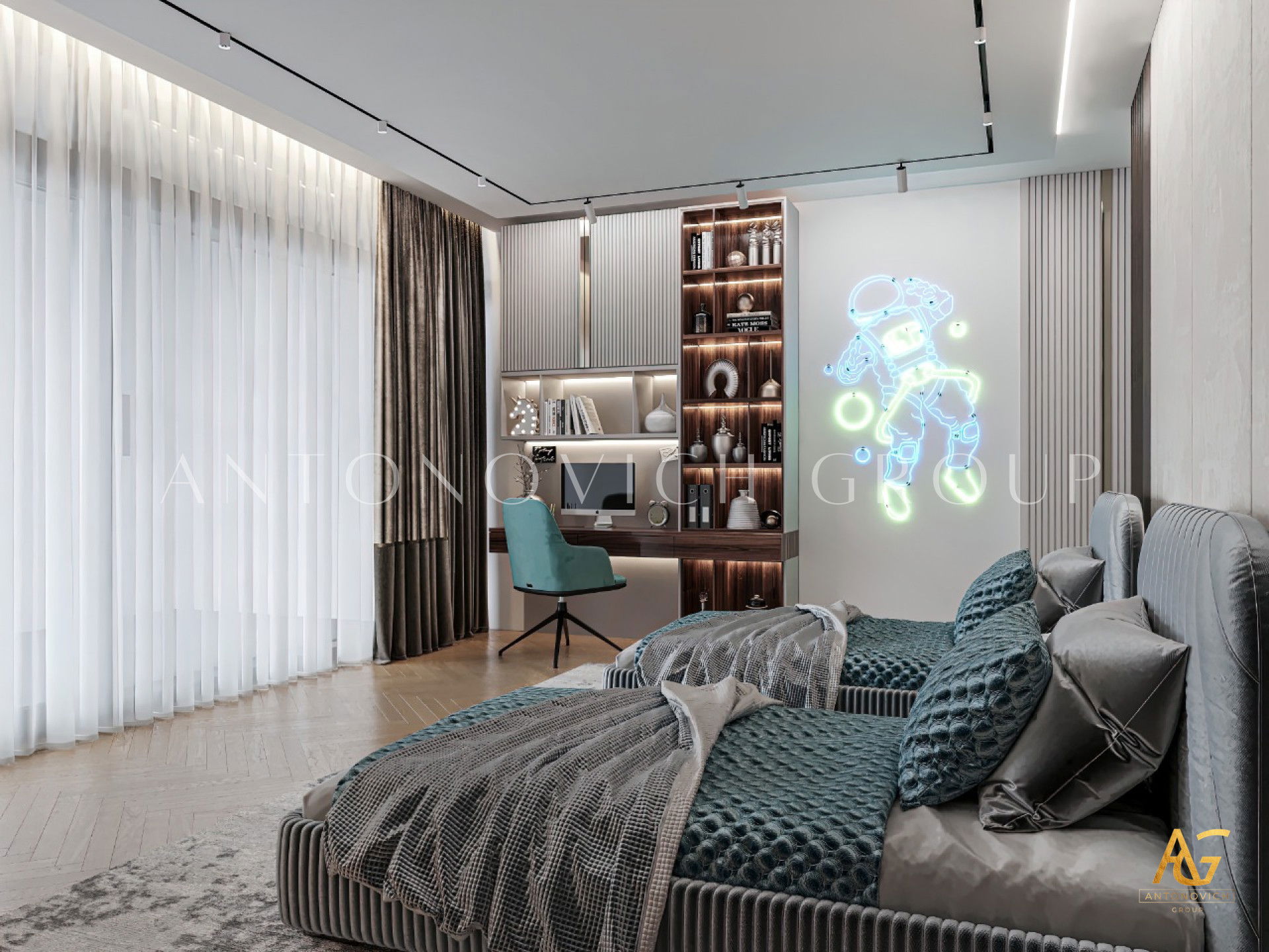 Luxury Antonovich Design has strengthened the new face of luxury bedroom interiors by complementing elegance with a collection of metallic decorations and accessories, employing a fantastic fusion of colorful tones. Luxury Antonovich Design is well-known as a trendsetter in the field of architecture and interior designers, thanks to its in-house, creative, and adventurous team, which never stops learning new things in the field of design in order to incorporate it into every prestigious project that the company manages. A luxury bedroom interiors that follow a methodical space planning approach will always reflect the beauty of art and elegance. Most importantly, Luxury Antonovich Design creates unique designs that will stand the test of time featuring the personality and lifestyle of the kids.