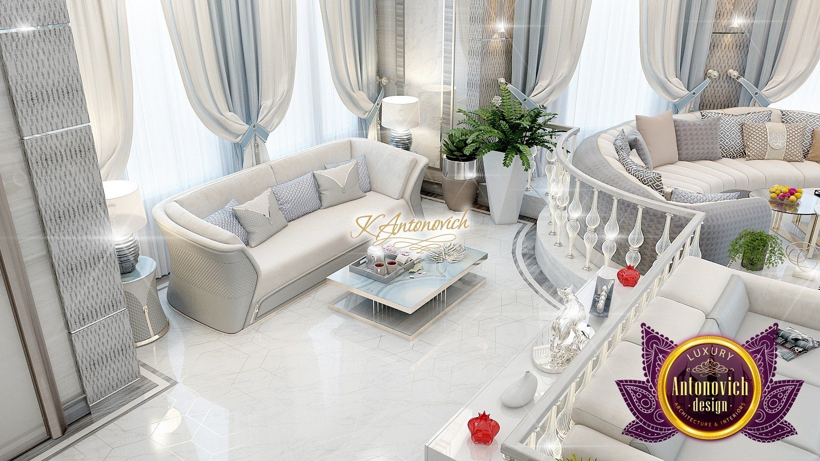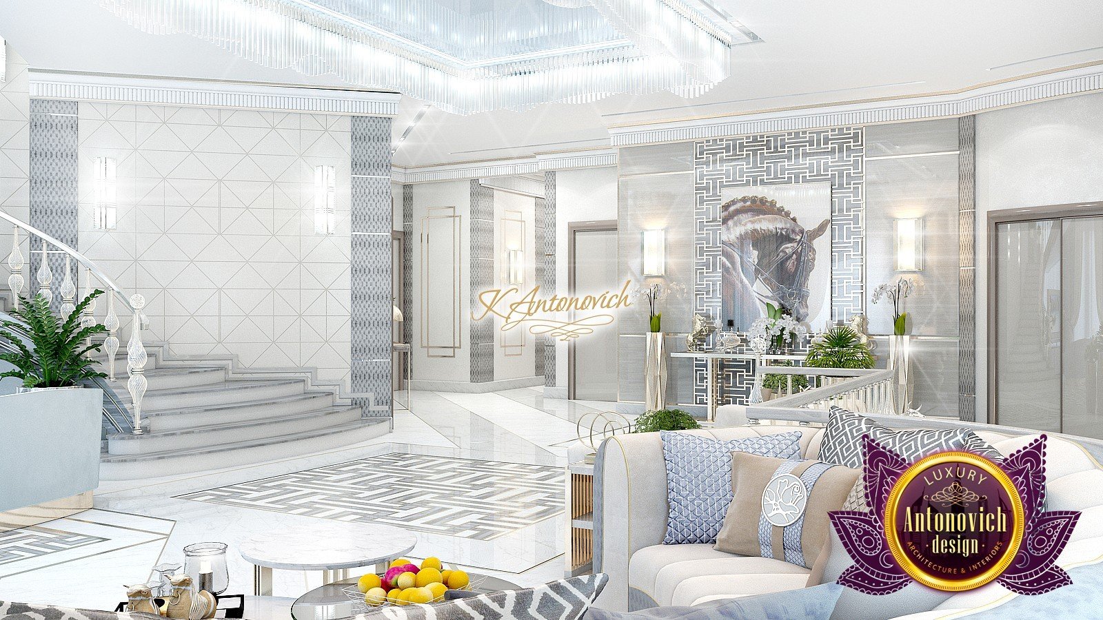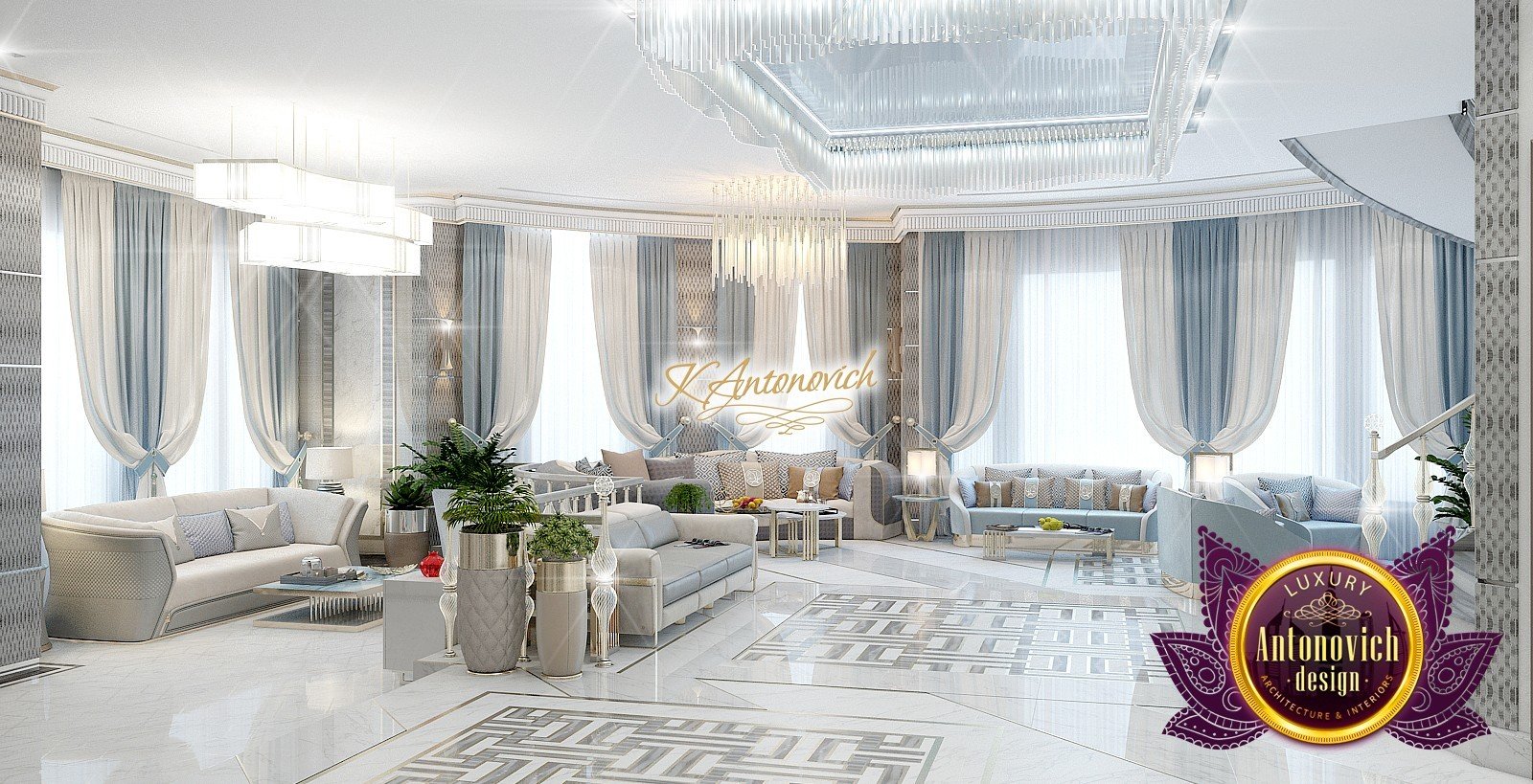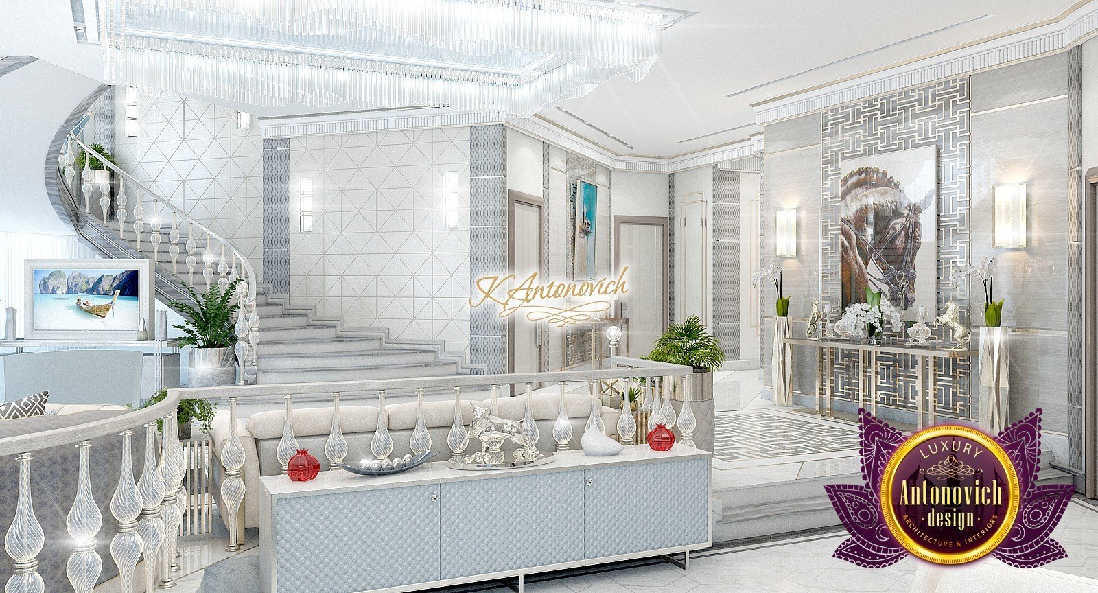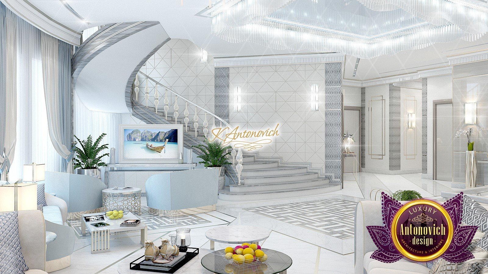 The interiors itself are not similar to any type of designs you will encounter. The Crystal Chandeliers. the marbled floors, The symmetrical and furnished staircase, and the relaxing color palette is one that will surely satisfy you and delight you in awe. The marbled floors are not just plain but it is decorated with artistic patterns. The stairs are polished and designed with gold details. The white paint makes the massive room look more huge. huge dome windows lets more lighting in making the house feel warm and cozy all the time.