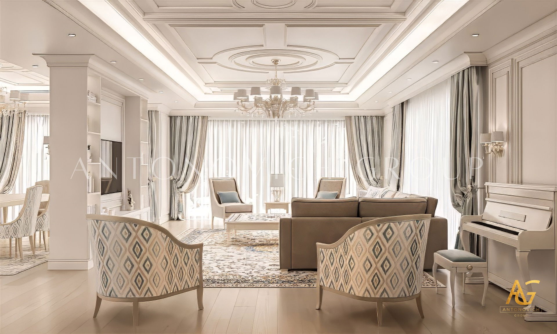 The wonderful interior design will be elevated by the addition of modernism. Luxury Antonovich Design also creates bespoke furniture, lighting, and carpets, all of which are in high demand for installation and arrangement in any luxury apartment interior design.