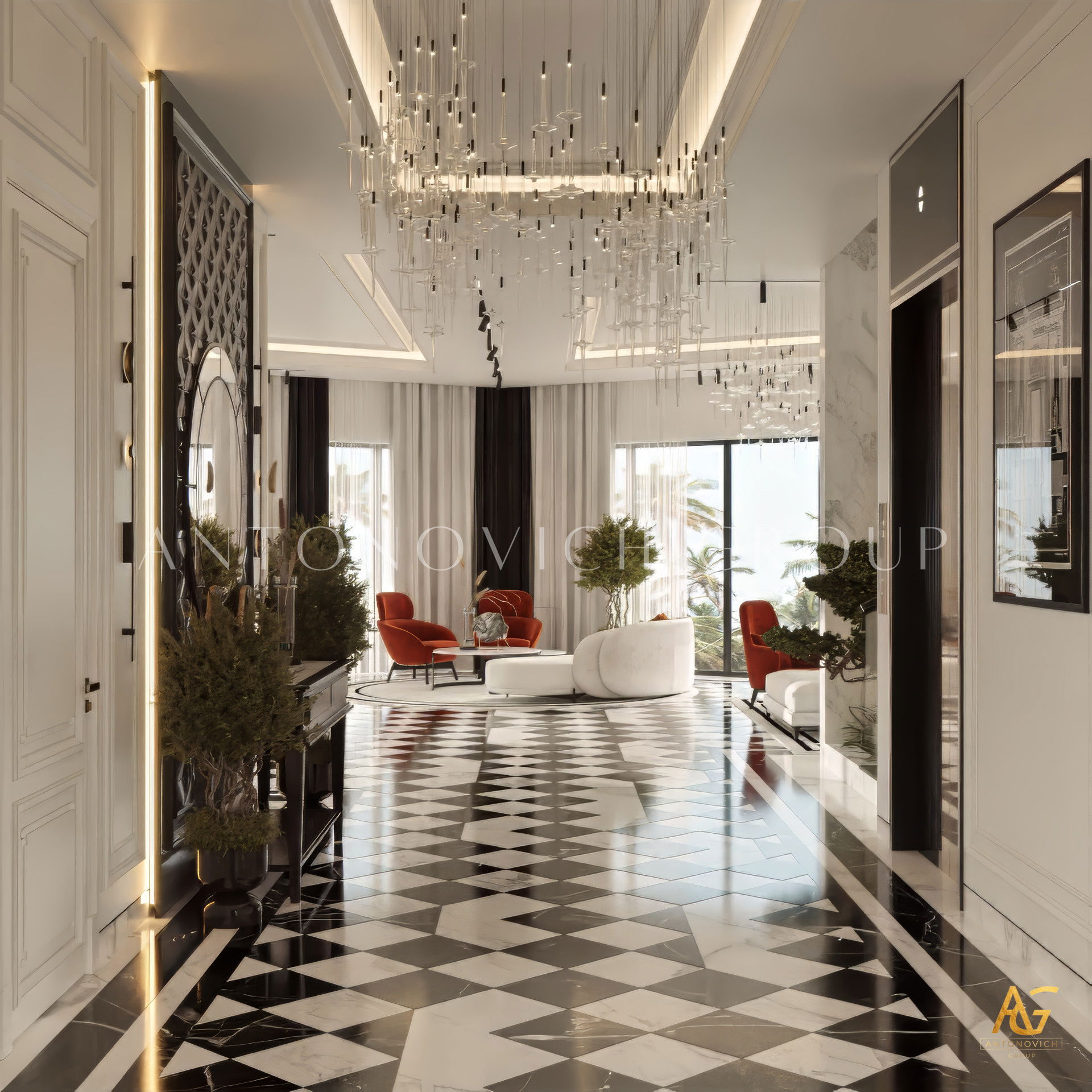 Every gorgeous entrance interior design by Antonovich Group begins with a deep understanding of balance, proportion, and aesthetic harmony. The team focuses on creating a grand yet inviting ambiance, where architectural elements and interior décor blend seamlessly. Whether it’s a classic luxury villa, a modern mansion, or a contemporary penthouse, Antonovich Group designs entrances that evoke admiration and awe.