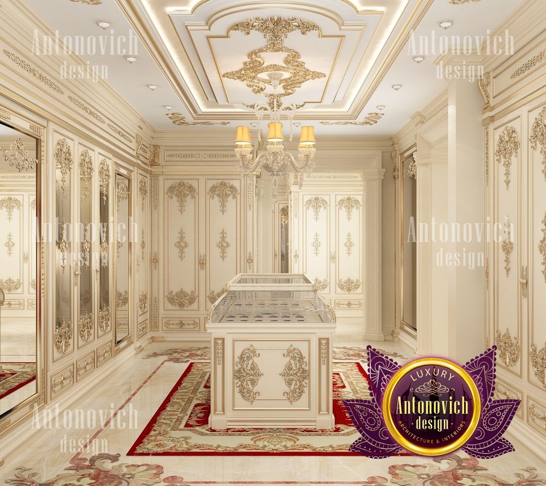 If youre looking for a luxury walk-in closet in Dubai, Luxury Antonovich Design can assist you in creating an attractive interior design. The company wants you to feel completely at ease in your walk-in closet by providing a stunning interior design. The focus of this premium interior design is on works of gold. A pattern of luxury designs can be seen across the room, and luxury furnishings that can only be seen in this luxury interior design can be found on the doors. In the complete luxury interior design, the closet accentuates the gorgeous usage of red and gold.