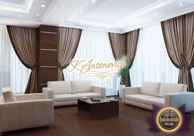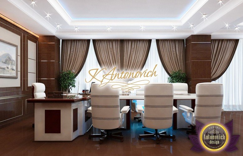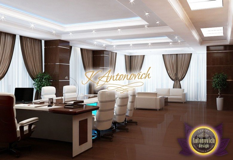In this newest creation by Luxury Antonovich Design; the company has created a huge and luxury interior design that is finished with wood and white. The sofa and tables were placed strategically and the choice of the furniture is very luxurious with its details that are one of a kind. The beautiful decor is very evident in the completion of the office room. The brown curtain and furniture add to the beauty of the aristocrat interior design. If you are looking for great ideas for your next office interior design creation, then heres an inspiration for you.