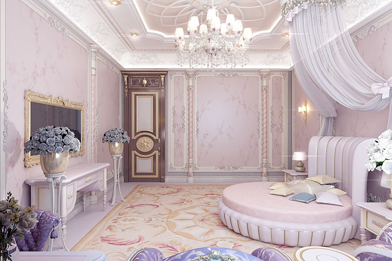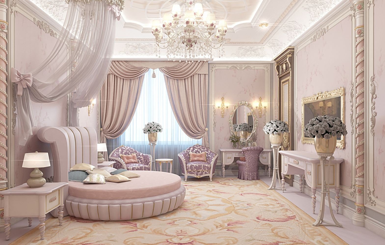 Our designers of Luxury Antonovich Design do not follow the stereotypes in design and do not decorate the whole room in one tone depending on the gender of the child. Monotony bothers, and does not look very stylish. We prefer to choose light, gentle tones, having diluted them with bright color accents in a decor and textiles. Childrens room for a girl is an air and easy space. A delicate purple color is perfect for wall decoration; it will not only visually increase the space, but will also give your child the opportunity to choose the color combinations of decorative elements.