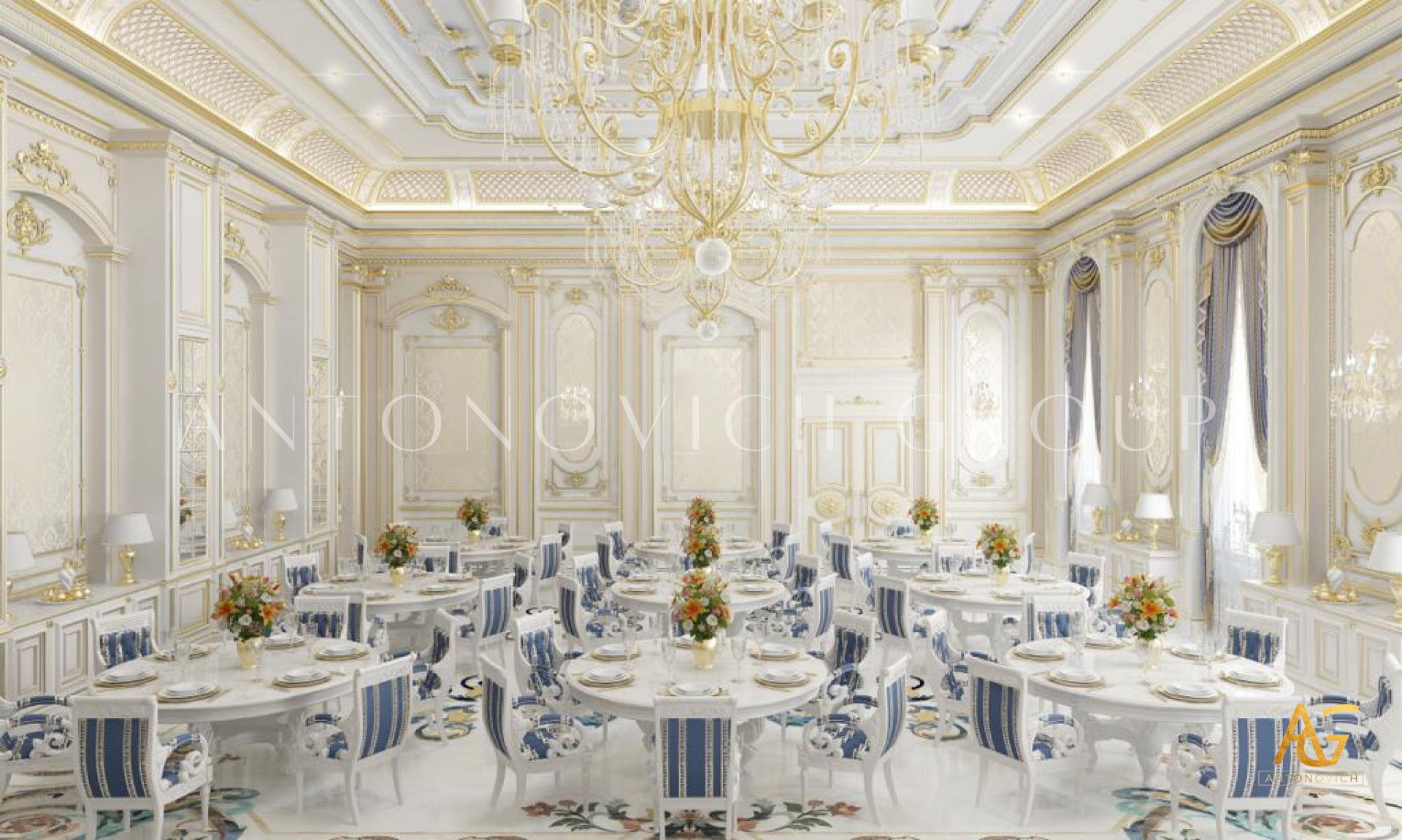 Luxury Antonovich Design has used a number of lovely pieces of furniture to turn this flat into an attractive space. Its not simple to create a trendy Saudi Arabia interior design. A stunning layout needs much research and the assistance of a professional. Luxury Antonovich Design, a top interior design company Dubai in Saudi Arabia, can assist you in creating the interior design of your fantasy elegant Saudi Arabia interior design. The lovely lighting complements the wonderful walls. Beautiful lights and luxurious chandeliers hang above it, completing this area.