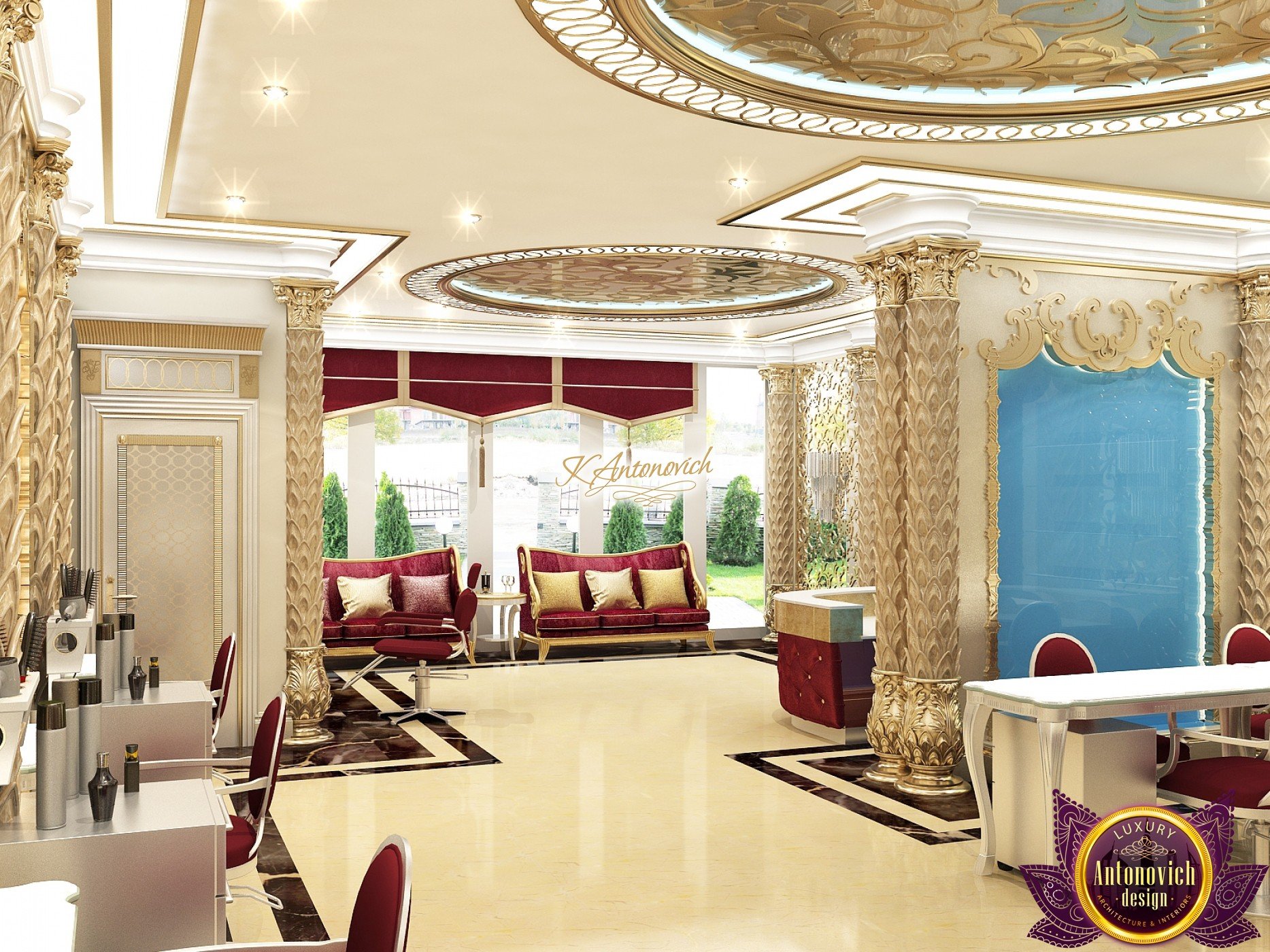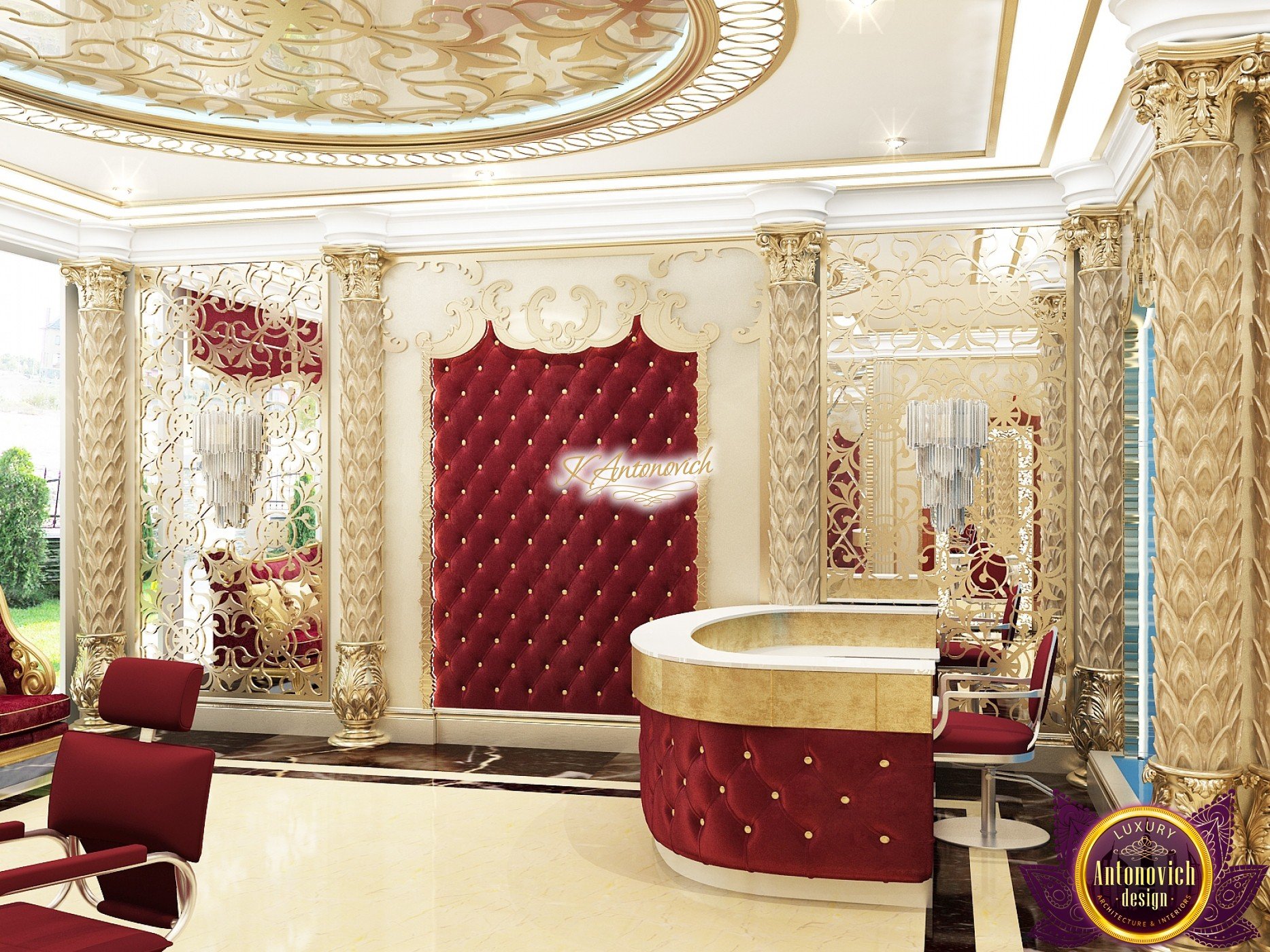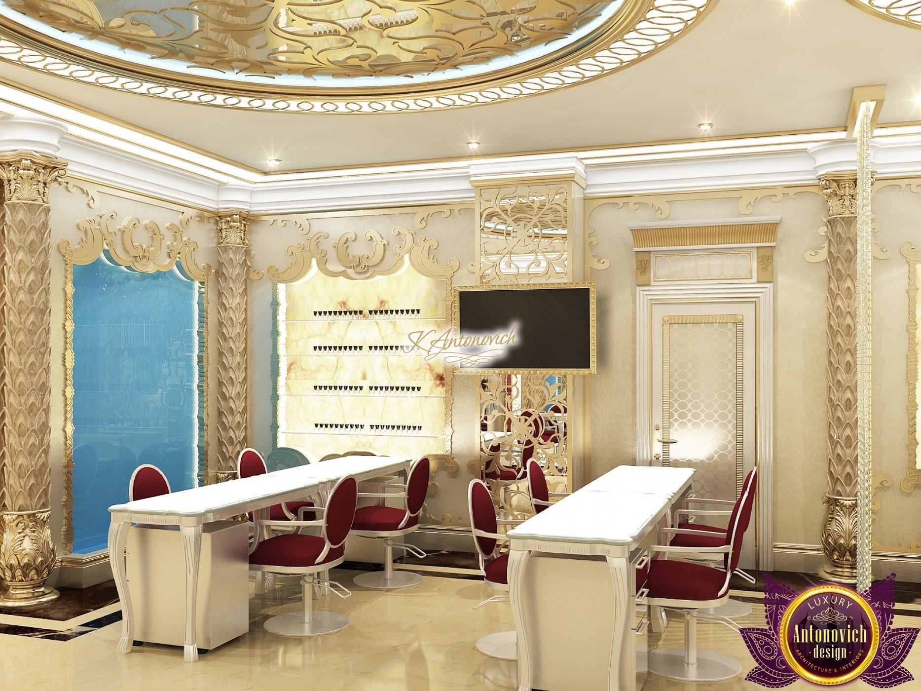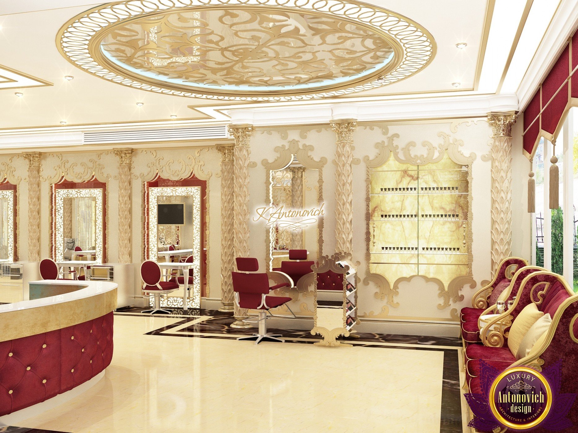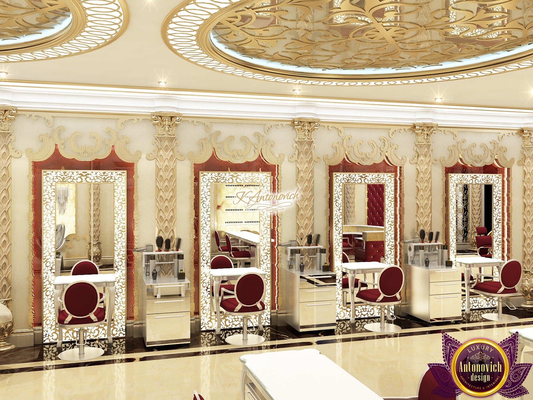The interior design of a beauty salon by Luxury Antonovich Design is created according to certain rules. The attractive aesthetics of the setting must be balanced by practicality, and the functionality is adjacent to the original idea. The interior of the modern temple of beauty made by our designers complies with all the principles of fashion-design, the desires for positive improvements and beyond the miraculous transformation, carry a special energy that adjusts to a positive result. The interior of a modern salon in luxurious classic style corresponds, possesses a special atmosphere, which tunes to a positive result.