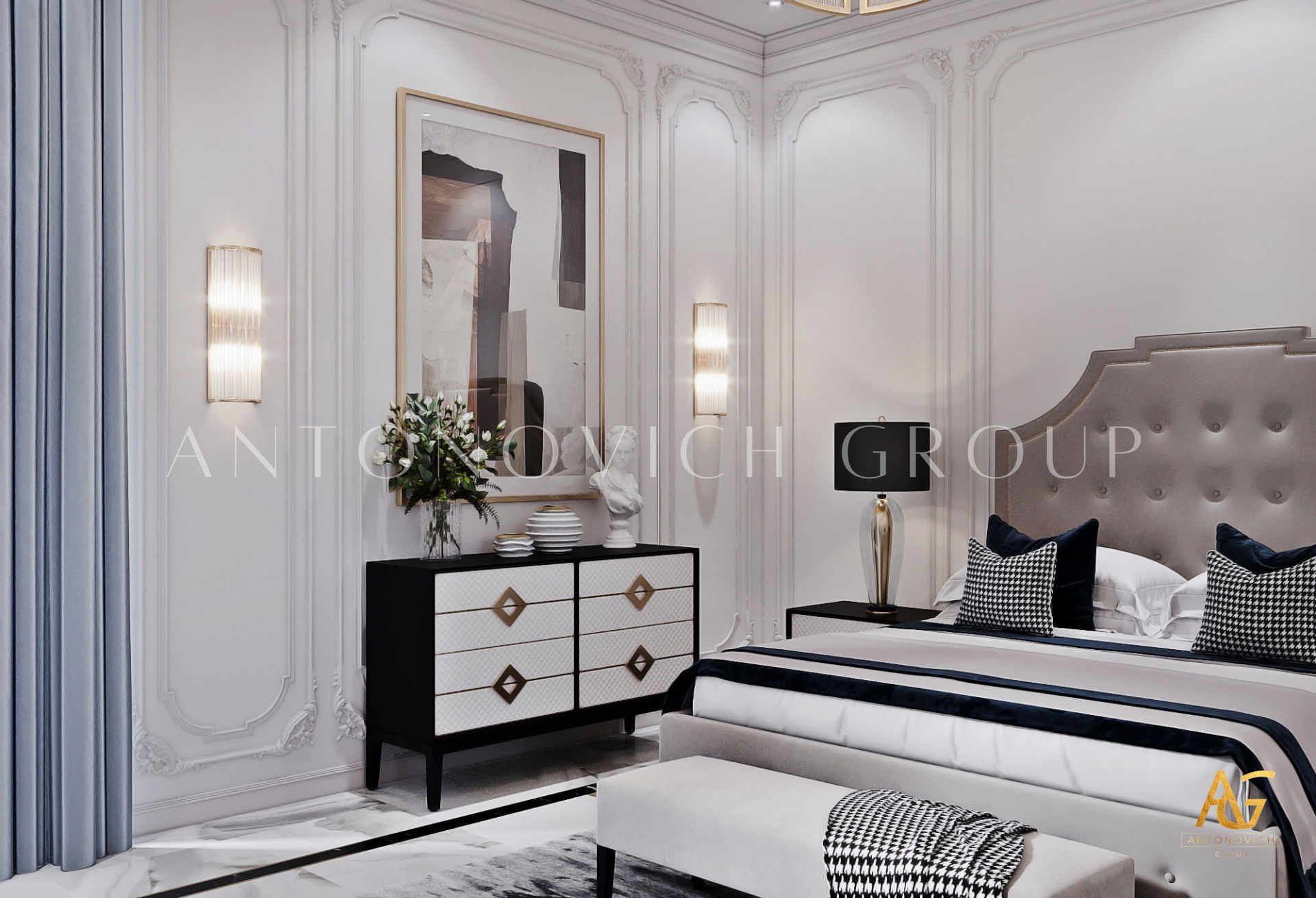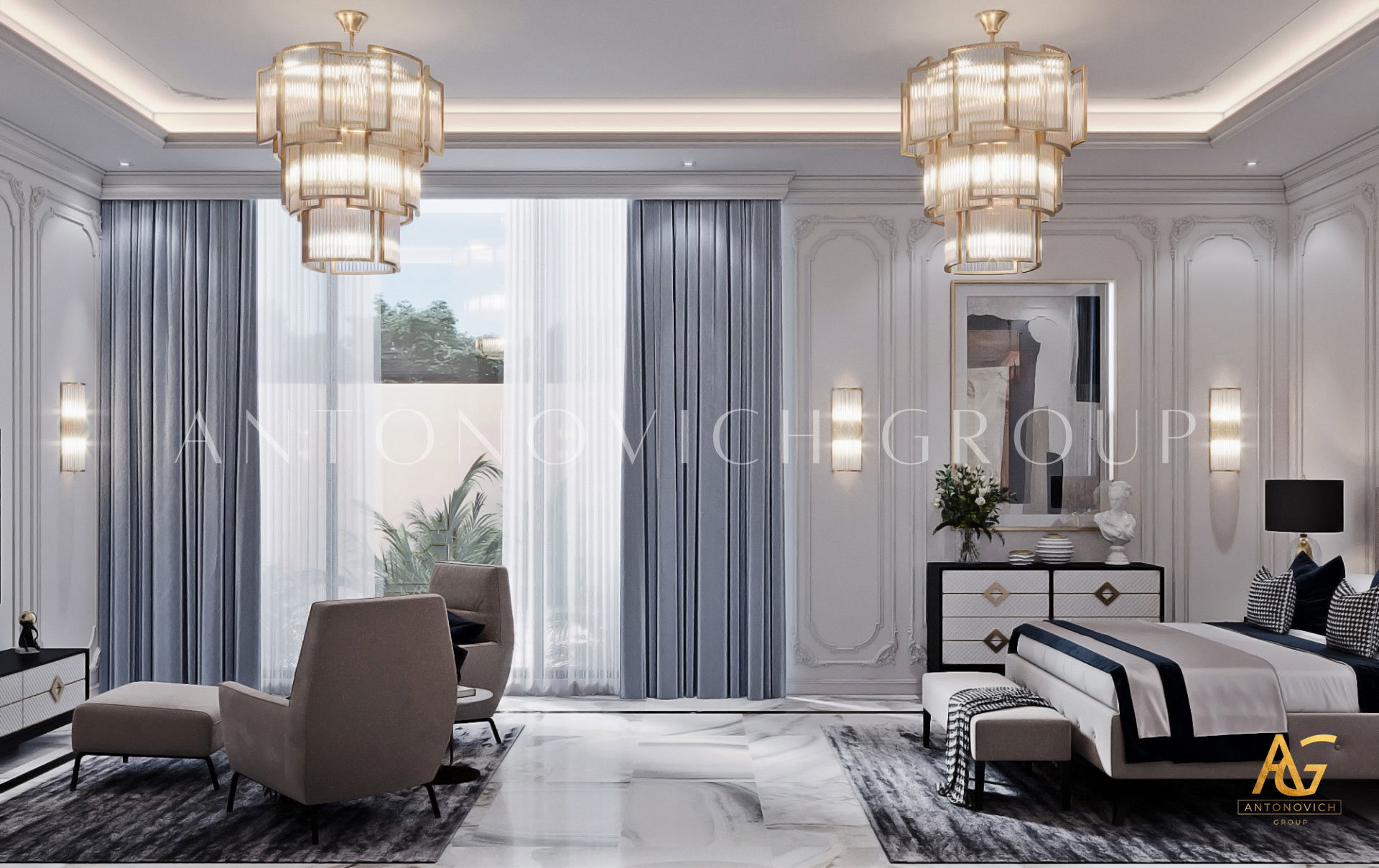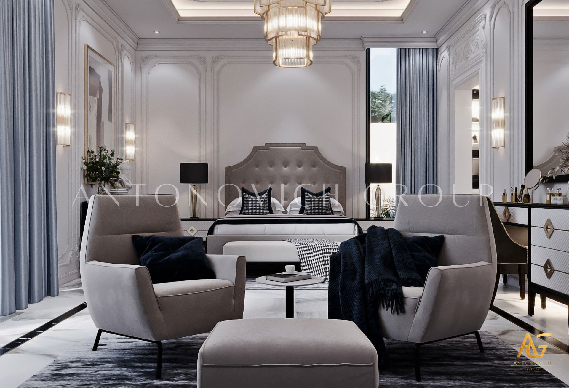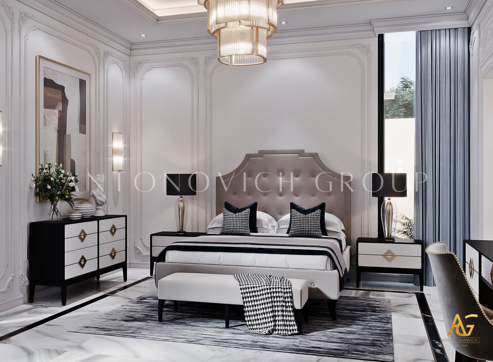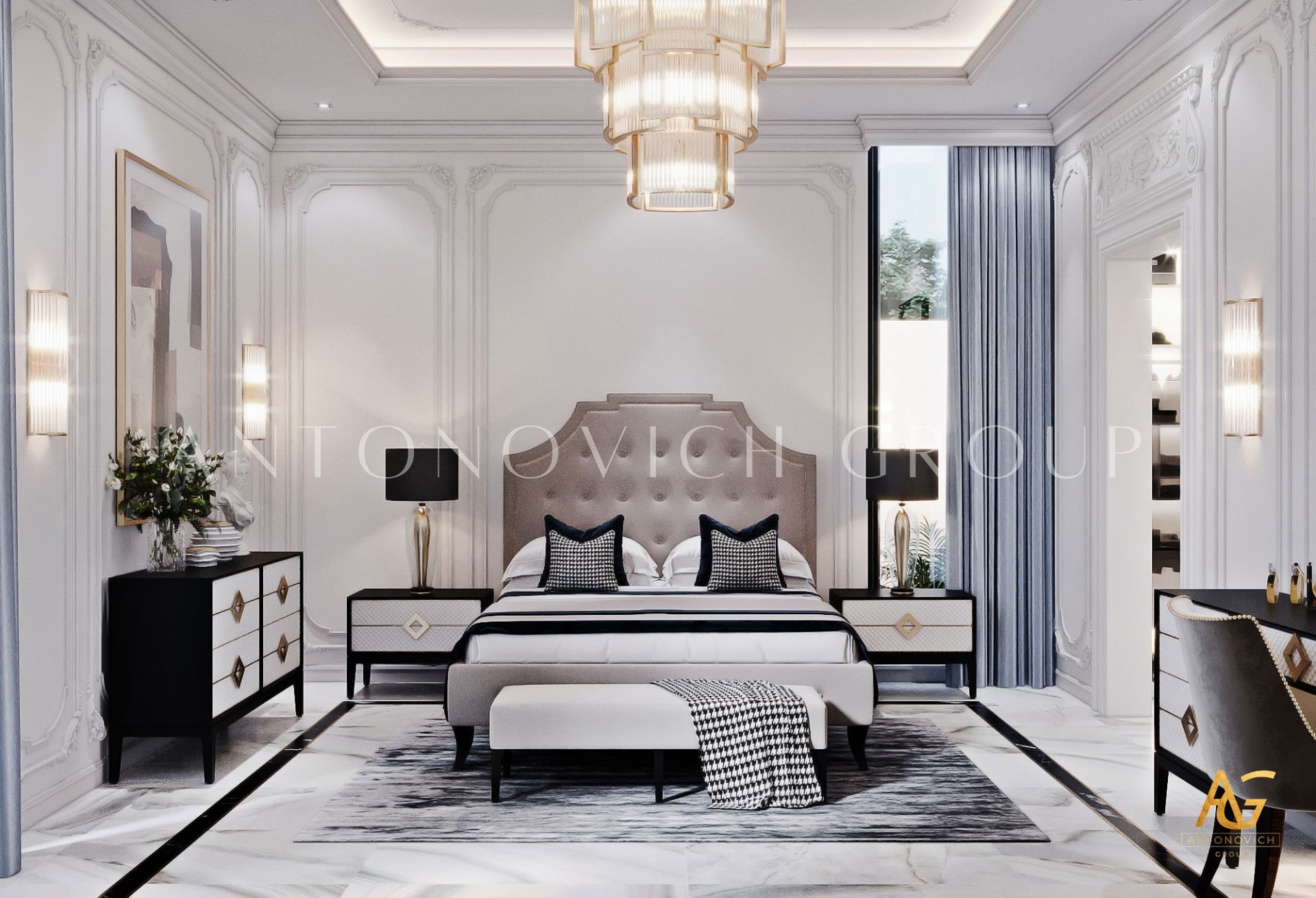 Its a terrific accent wall for any contemporary villa interior design, adding personality to the space. Furthermore, the flooring is unique. If you want to keep your contemporary homes interior décor conventional and unobtrusive, this is a great place to start. This design is fantastic in every way. Take, for example, the one-piece headboard and nightstands. The beautiful wood finish and the upholstered accent piece above the bed are also fantastic. The headboard and wood piece complements the cream comforter on the bed well. The light reflections from the wide window and mirrors boost the quantity of light in the room, lighting the entire space for your modern villa interior design.