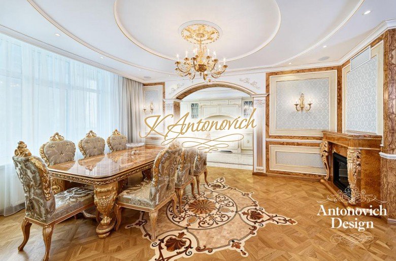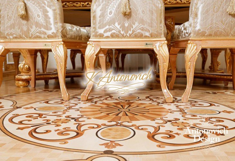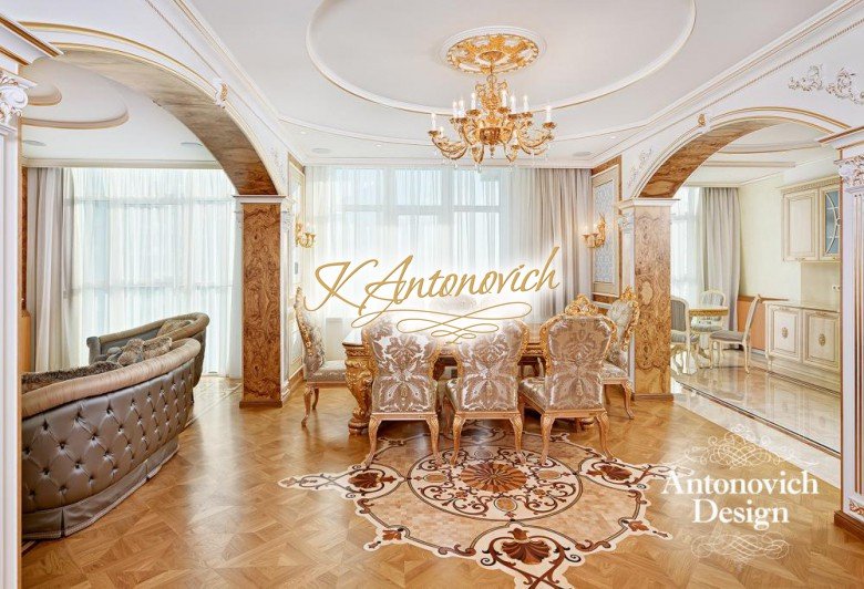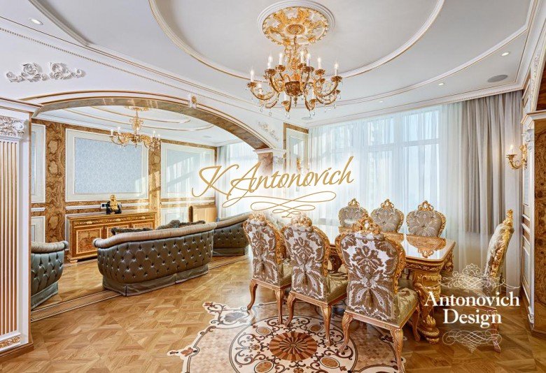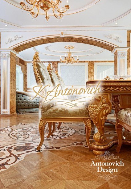 Vintage with a touch of gold. This beautiful luxury apartment design is a dream of many. The luxury spiral details on the floor are immaculate. The hallways design feels like you are entering a museum. Luxury furniture such as chairs and tables are magnificently created. Everything about this stunning luxury apartment is beyond your imagination. Living here is like living in a luxury fairytale. Everything is a luxury interior.